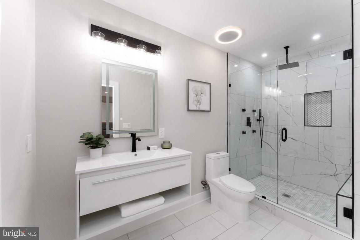 A modernized bungalow offering elegance and functionality from every angle. This 3300+ sq ft home in Woodbridge has 4 bedrooms and 4.5 baths over 3 finished floors. The beauty of this home is that you have options for formal settings to casual family hangouts due to the smart layout which maintained its classic charm while still appealing for contemporary living. The wide front porch is perfect for rocking chairs or a swing bench. Once you enter, you are greeted by the formal living room with a wood-burning fireplace and the sophisticated dining room with coffered ceilings. Continue on to the white-on-white chic kitchen with a huge island and state of the art SS appliances including a gas cooktop . The kitchen is open to the family room with space for more dining or opt to head out to grilling area on the spacious deck. Upstairs you have 3 light-filled bedrooms, 3 full baths, and a large laundry room with storage space. One dedicated bathroom per bedroom! Each bathroom has unique tiled finishes from floor to ceiling in the shower zones and touch sensor vanity mirrors. The master ensuite is luxurious with its spa bathroom and an enormous walk-in closet. The basement has its own side entrance, the fourth bedroom and its own full bathroom so this can be an excellent independent space. Wood floors on all three levels. Modern and stylish finishes throughout. Parking for 3 cars in the rear. Act quickly to make this exquisite home your own!