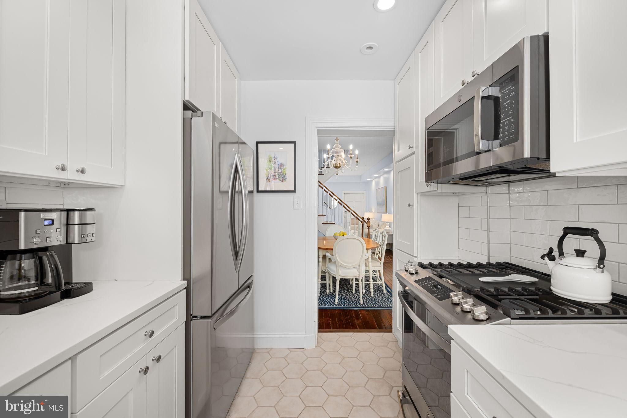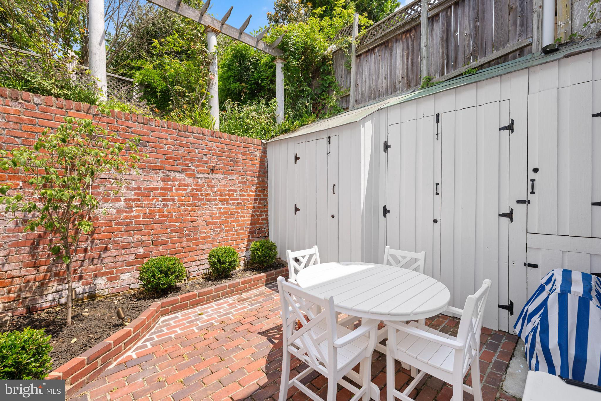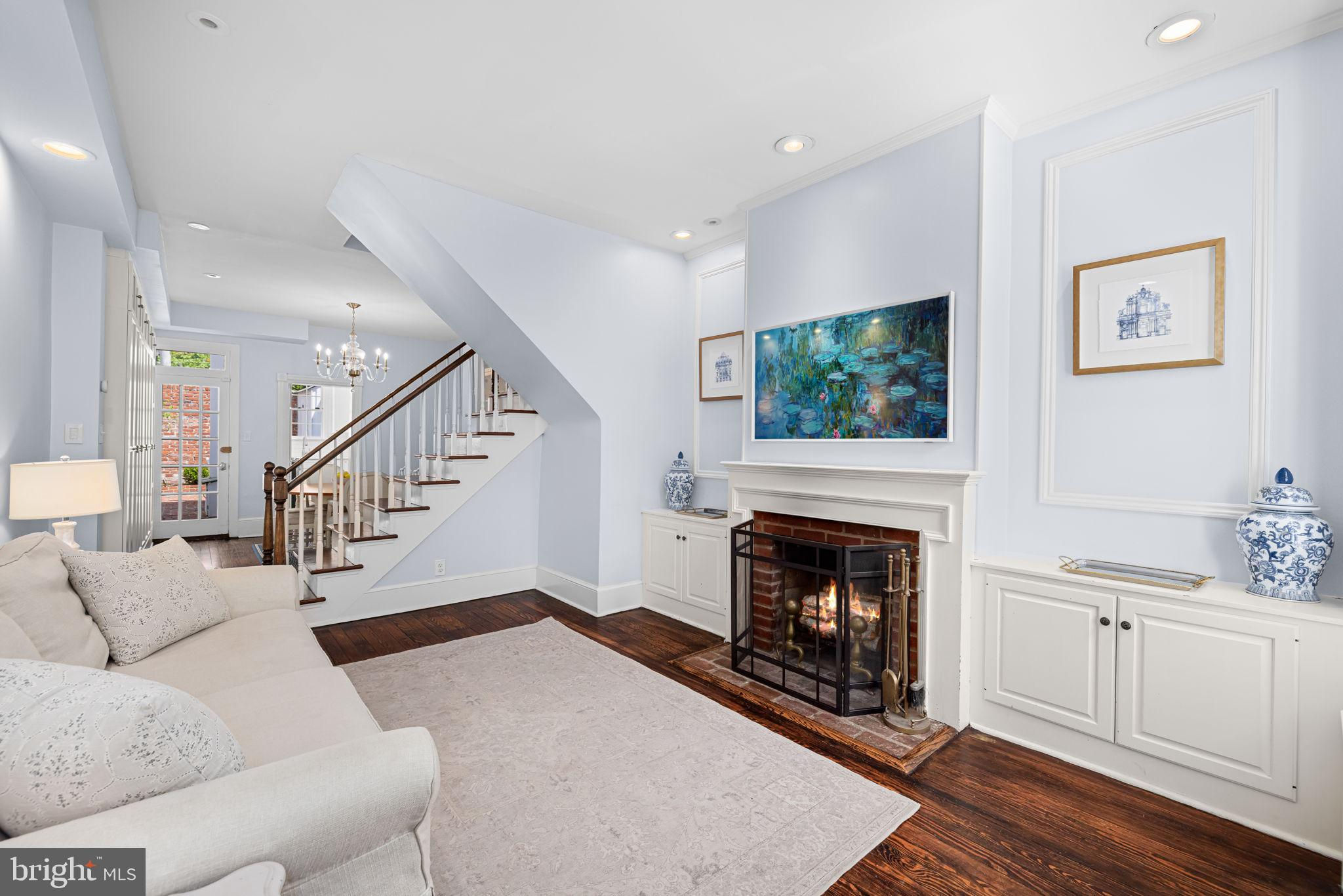 Tucked away on one of Georgetown’s most picturesque and historic cobblestone streets, this enchanting two-bedroom, two-bathroom residence seamlessly blends timeless charm with thoughtful, modern updates. With southern exposure, original hardwood floors, and beautifully curated designer interiors, every detail of this home has been carefully considered. The inviting front living room features soaring ceilings and a classic wood-burning fireplace, creating a warm and welcoming atmosphere. Beyond, the formal dining room offers expansive custom built-in cabinetry and a cleverly designed “Harry Potter” closet tucked beneath the stairs. The renovated kitchen boasts white quartz countertops, all-new stainless steel appliances, and a clean, elegant aesthetic that perfectly complements the home’s character. Upstairs, the sunlit primary suite features dual California Closets, while the second bedroom also includes a custom California Closet and Lutron electric shades for modern convenience. The hall bathroom shines with natural light from a skylight and has been updated with marble, new fixtures, and a modern vanity. The en suite bathroom features a timeless marble vanity and a high-capacity, top-of-the-line stackable washer and dryer. Significant system upgrades include a brand-new combination boiler and tankless hot water heater, full PVC re-plumbing, and a dual climate setup with central A/C, radiant heat, and Nest smart thermostats for year-round comfort. Outdoors, a private brick patio with professional landscape lighting and an outdoor TV console offers the perfect backdrop for relaxed evenings or weekend entertaining. A rare private breezeway from the sidewalk provides direct rear access to the patio—ideal for discreet trash bin storage or convenient entry, a highly coveted feature in Georgetown. Freshly painted inside and out, this move-in ready Georgetown gem is ideally located just steps from neighborhood shops, acclaimed restaurants, and only two blocks from Georgetown University—making it a rare find in one of DC’s most iconic neighborhoods.