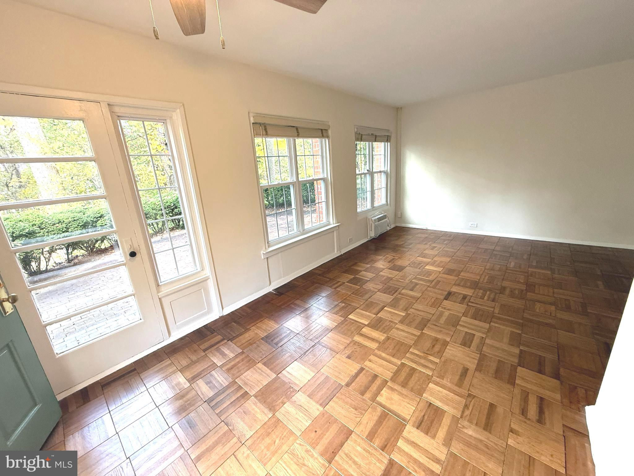 Probably Parkfairfax's largest brick patio facing parkland. Patio level with replacement, double paned windows, newer Ikea kitchen cabinets with butcher block countertops. Freshly painted, tons of closet space, strolling distance to Shirlington's shops, restaurants, inside beltway, non-stop bus service to Pentagon. 3 pools, 7 tennis courts, basketball, & volley ball courts. 5 minute stool to Shirlington's restaurants, bars, movie and live theatre, Harris Teeter grocery, library, post office and dog park. Laundry and extra storage unit at end of building about 40 steps away.
