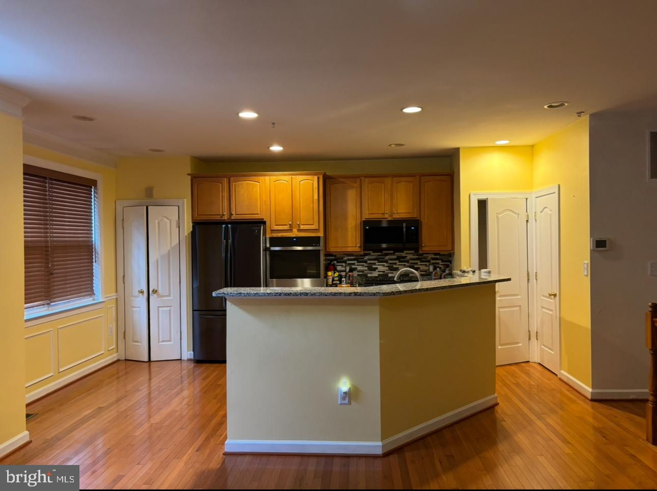 End row 4-story townhouse has an open floor plan on the main level w/new black stainless steel appliances, beautiful hardwood floors, 2 half-bathrooms and a working gas fireplace below a 65in flatscreen TV. The Third level contains 2 nice size bedrooms with a full bath. The top floor contains the master suite, with soaking tub, double vanity, walk-in-closet and mounted flat screen TV. The townhouse is located in Carriages at Russett, a 613 acre community within the Maryland City, in a park-like setting complemented by 12 miles of walking trails and a 70-acre lake nature preserve. Russett also contains playgrounds, a tot lot, four swimming pools and a pool house, a community center as well as tennis, basketball and beach volleyball courts. PLEASE USE SHOE COVERS AVAILABLE UPON ENTRANCE Please submit application via RentSpree ======> https://apply.link/Ab6aqc8 Applications will be accepted via Rentspree ONLY.