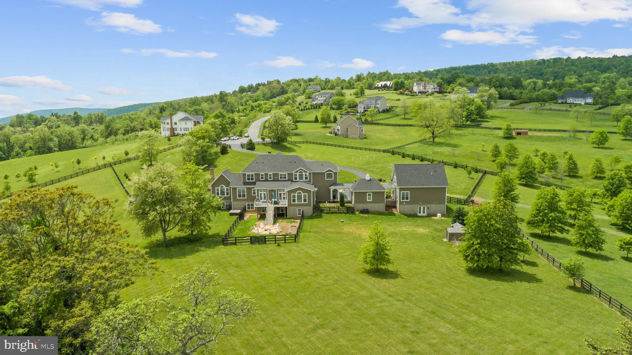 Spectacular Mountain Views from this 9600+ square foot Main home alongside a three-level, 2400+ square foot Guest House, this estate offers a total of 9 bedrooms, 9 full baths, and 2 half-baths, setting the stage for a true testament to luxury living. Mature landscaping and private culture-de-sac With mature landscaping and private culture-de-sac this home was crafted for those with discerning taste. This magnificent residence is a statement of exceptional craftsmanship and elegance, offering breathtaking panoramic vista views that greet you at every turn. The expansive Main house spans three levels and features six ensuite bedrooms, including one on the main level, exuding lavishness and comfort. Meanwhile, the thoughtfully designed guest home provides an additional three ensuite bedrooms, catering to the utmost privacy and luxury for guests, with a first-floor primary suite adding to its allure. Every inch of this estate is a showcase of craftsmanship beyond compare. Hand-scraped Hickory hardwood floors, soaring 10-foot ceilings, majestic 8-foot doors, exquisite wood moldings, and four magnificent floor-to-ceiling stone fireplaces (3 Gas and 1 wood burning) create an ambiance of unparalleled luxury. With mountain views from EVERY window and natural light flooding every inch of the interior. Entertainment is elevated to new heights in this residence, with main-level opulence offering formal dining, living, a gourmet kitchen, a family room, a great room (currently used as an office) a hall gallery, and a coffee bar—all seamlessly blending to provide the ultimate in entertainment spaces. The gourmet kitchen is a chef's dream, equipped with top-tier stainless steel appliances, CLASSIC custom maple glazed cabinets, and opulent granite countertops, while the sunlit morning room offers a serene backdrop for starting the day. On the second floor you'll discover four exceptionally spacious ensuite bedrooms, each adorned with walk-in closets. The sumptuous Primary suite is a tranquil oasis, complete with a sitting room, spa-like Primary bath, and a vaulted ceiling adorned with a designer chandelier, offering the ultimate retreat for the discerning homeowner. The lower level with its vast entertainment haven, features a game room, exercise room, bonus den, and a stadium-style movie theater, perfect for hosting gatherings or unwinding in luxury. Outside, the sprawling backyard offers a firepit and hot tub, with potential for a pool or additional outdoor sanctuaries. For horse enthusiasts, the property boasts a custom horse run-in barn, tack room, wash bay, and charming chicken coop, all enclosed within 4-board oak fencing and meticulously groomed pastures. An abundance of outdoor storage spaces include a custom storage barn with loft space for storage and two additional storage sheds located behind the guest house. With a state-of-the-art whole estate generator providing year-round peace of mind, this secluded retreat in Loudoun County's esteemed horse country offers effortless access to upscale amenities and is a haven for those seeking an idyllic lifestyle.