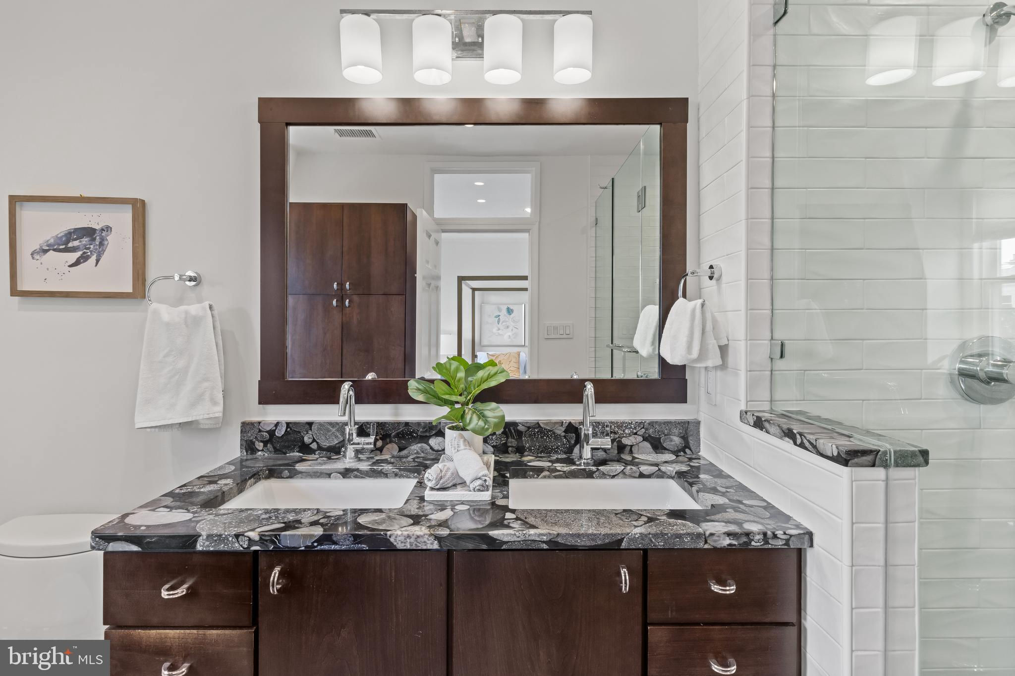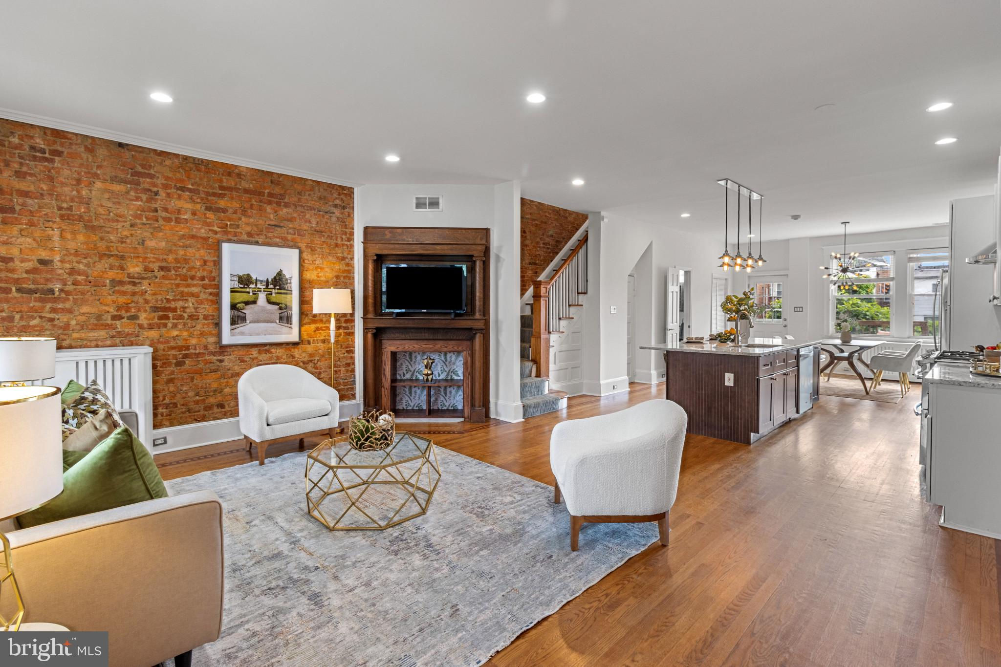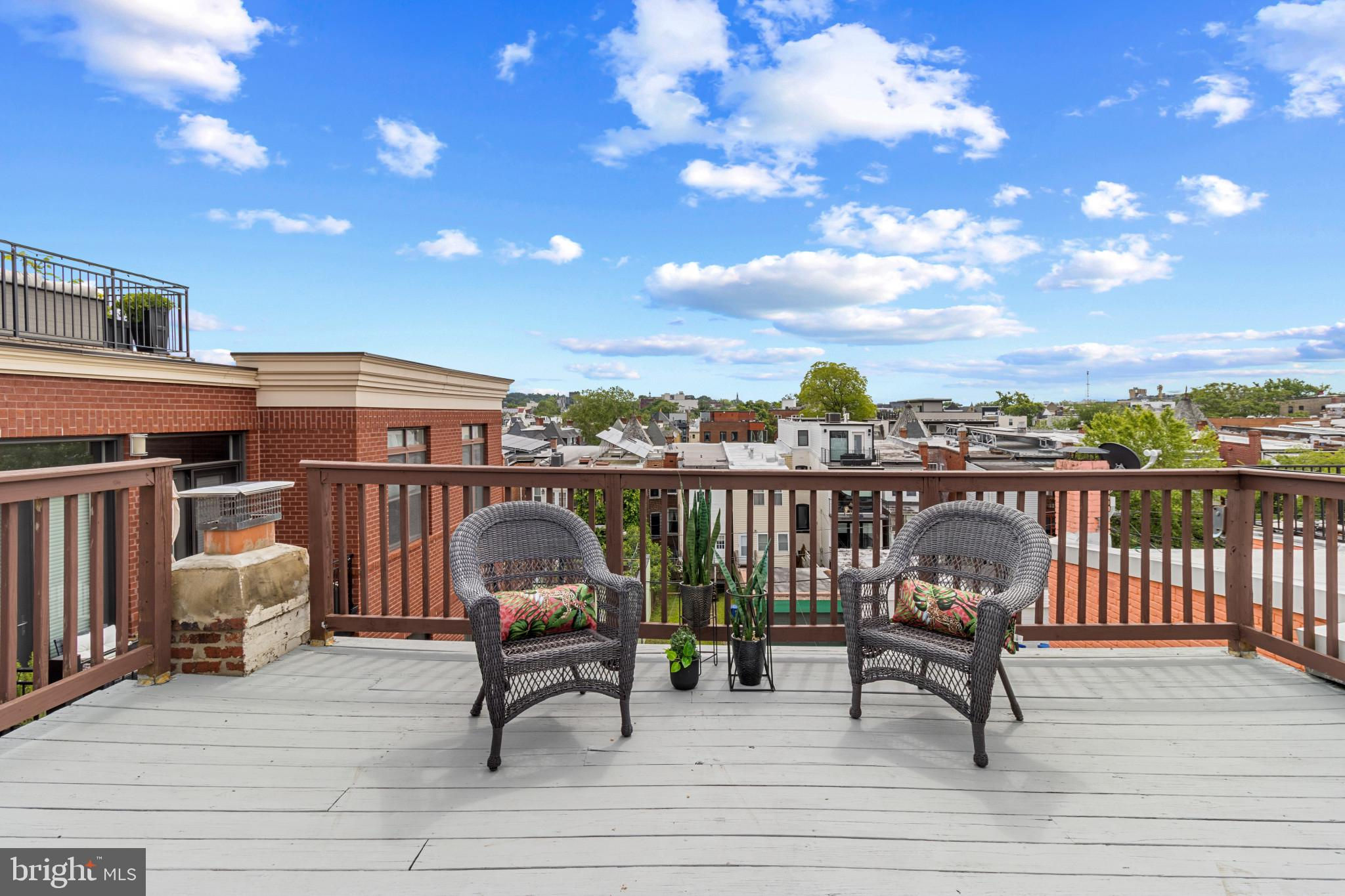 OPEN SUNDAY, NOVEMBER 2nd 1 PM to 3 PM. Fantastic opportunity to live in a grand, end row house in Columbia Heights with a deep lot, generous room sizes, high ceilings, hardwood floors, exposed brick and modern upgrades throughout. Beautifully renovated 5BR/3.5BA on four spacious levels includes a separate in-law suite with front and rear entrances. Top floor primary bedroom features beautiful ensuite bath, a sitting area, custom walk-in closet, W/D and an amazing roof terrace with sweeping roof top views. New new boiler and exhaust chimney new liner and cap in 2025, new central a/c in 2023, new hot water heater in 2024, new mini-split for lower level unit in 2020. Deep yard, rear deck and secure parking for two cars. Convenient Columbia Heights location just steps to Giant Food, Columbia Heights METRO and DC USA Mall featuring some of your favorite retailers and food places.