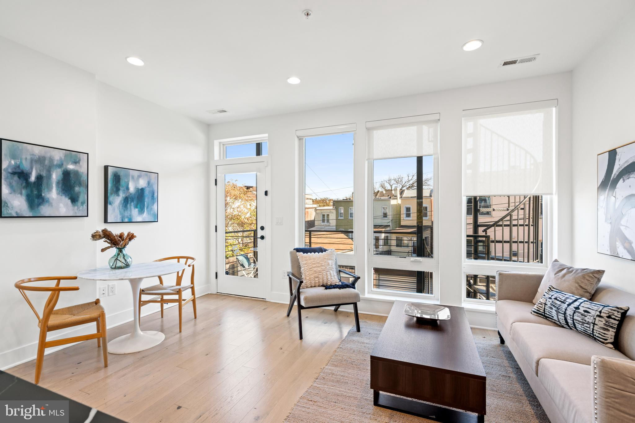 Welcome to modern luxury in Columbia Heights! Located on a peaceful one-way street adorned with beautiful trees, you'll find a tranquil sanctuary that provides a welcome escape from the vibrant pace of city living. Built from the ground up in 2019 by award-winning builder, Lock7 Development, this inviting two story residence boasts a modern open-concept floor plan with generous rooms and oversized windows, allowing for an abundance of natural light. With approximately 1,900 square feet of spacious living, this home provides plenty of room for comfortable living. Step inside and be greeted by wide plank hardwood floors, recessed lighting, stunning light fixtures and designer hardware throughout. The sleek and state-of-the-art kitchen is a chef's dream, featuring a gracious center island with waterfall granite countertop and stainless steel appliances. The well-designed kitchen maximizes efficiency and workflow. The spacious and well-lit living/dining room provides the perfect setting for hosting gatherings and social events. Additionally, the family room offers private deck access and stunning city views. This exceptional property boasts a total of three balconies and a private rooftop deck, offering breathtaking city views and creating a truly one-of-a-kind living experience. The primary bedroom is an oasis, with sliding glass doors leading to a private balcony, soaring vaulted ceilings, a walk-in closet, and an elegant ensuite marble bathroom complete with dual sinks and a sizable shower. The upper level also features a second bedroom with its own balcony, a den/guest room, another elegant full bathroom, and a conveniently located washer/dryer. An automatic garage door opens to the secure one-car parking space. This residence is perfectly situated near an abundance of grocery stores, retail shops, and dining options. Enjoy the vibrant nightlife in the 11th Street Corridor, 14th Street, and close by Adams Morgan. Commuting is a breeze with the Columbia Heights and Petworth Metro Stations. For nature lovers, take advantage of the proximity to multiple parks, including Meridian Hill Park, Walter Pierce Park, and Rock Creek Park. Take advantage of this extraordinary chance to become the proud owner of a delightful condo nestled in the vibrant heart of Columbia Heights. Don't let this opportunity pass you by! Now approved for VA financing!