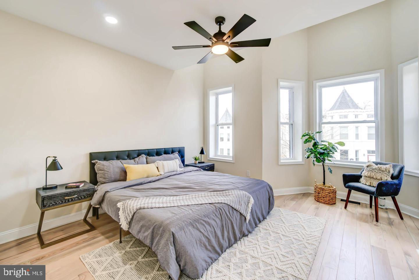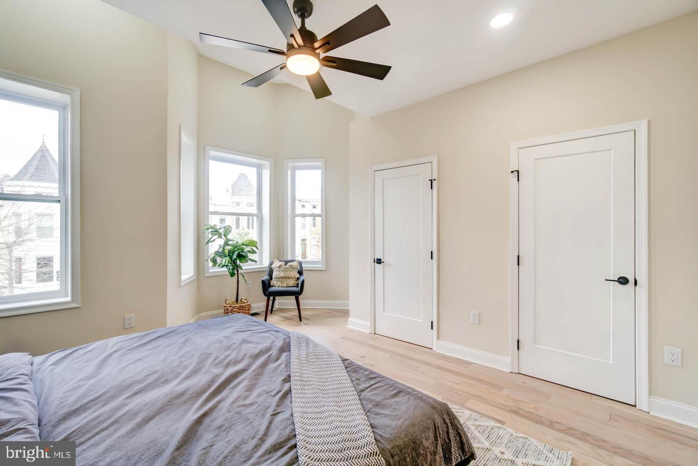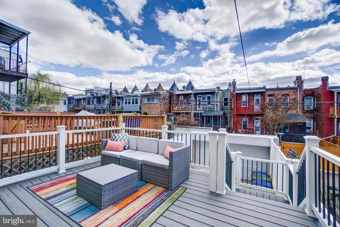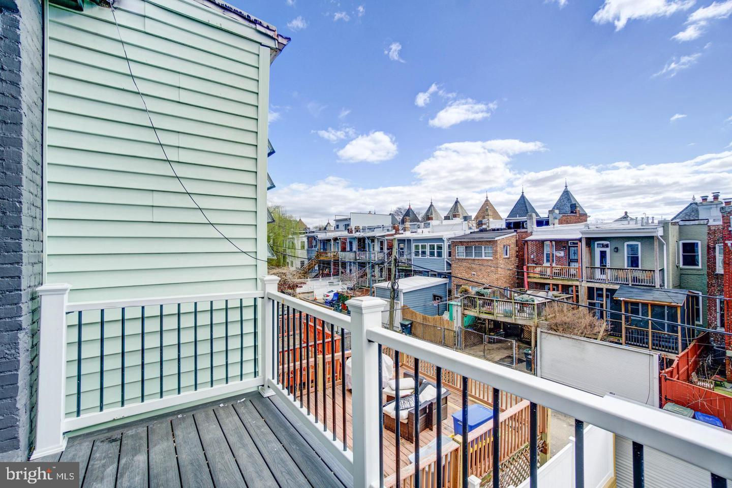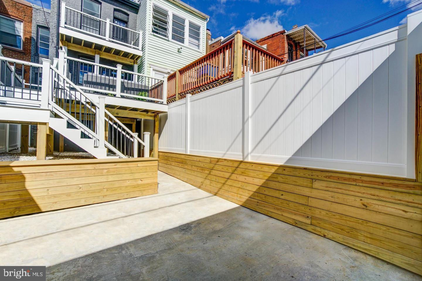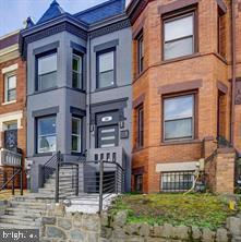 This striking 5 bedroom and 3.5 bath Federal row home has been renovated with quality updates while maintaining the historic character of a home built in 1909. New oak engineered hardwood flooring, new windows, 10’ ceilings on the main level, living room fireplace, bay windows, and an upper level skylight convey a pleasing blend of quality craftsmanship with modern design. Enter the home and you will be struck by the light-filled spaciousness of the living and dining room open floor plan leading you back to an L shaped gourmet kitchen. The kitchen features ample white shaker cabinetry, soft close drawers, stainless-steel appliances, gas range cooking, quartz countertops, mosaic tile backsplash and a pantry (also plumbed for a washer/dryer). Off the kitchen is an expansive Trex deck, perfect for grilling, relaxing and entertaining. The upper-level primary bedroom features a bay window and high vaulted ceilings. There are two closets and the ensuite bath has a double vanity, ceramic tiled flooring, and a frameless shower. Two additional bedrooms share a full bath, and one has access to an upper back balcony. The lower level provides an option for a separate living space with a large living room, a wet bar, two large bedrooms, a full bath, and laundry. There are two lower-level walk-out entrances accessible through the front and back. Perfect for leasing as a separate unit or as an in-law suite! 36 T St NW is a quiet tree-lined street that holds the appeal of community, within Washington, DC only one mile from the Capitol. Walkable to shops, grocery stores, parks, restaurants and public transportation with easy access to NoMa–Gallaudet U Station and Shaw Metro Stations. Off-street parking for two with remote roll-up garage door. What’s not to love!