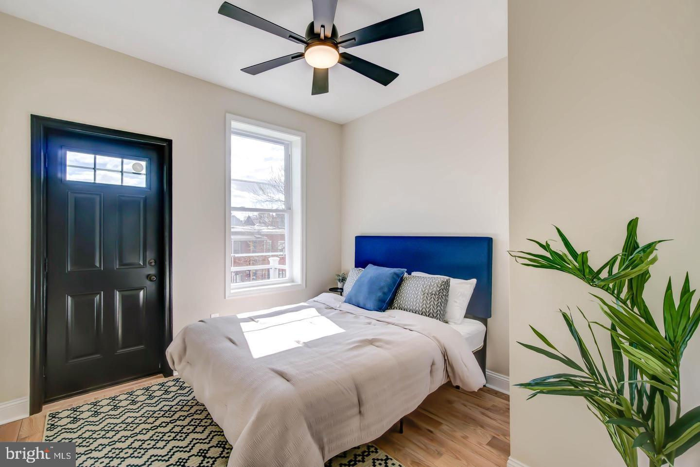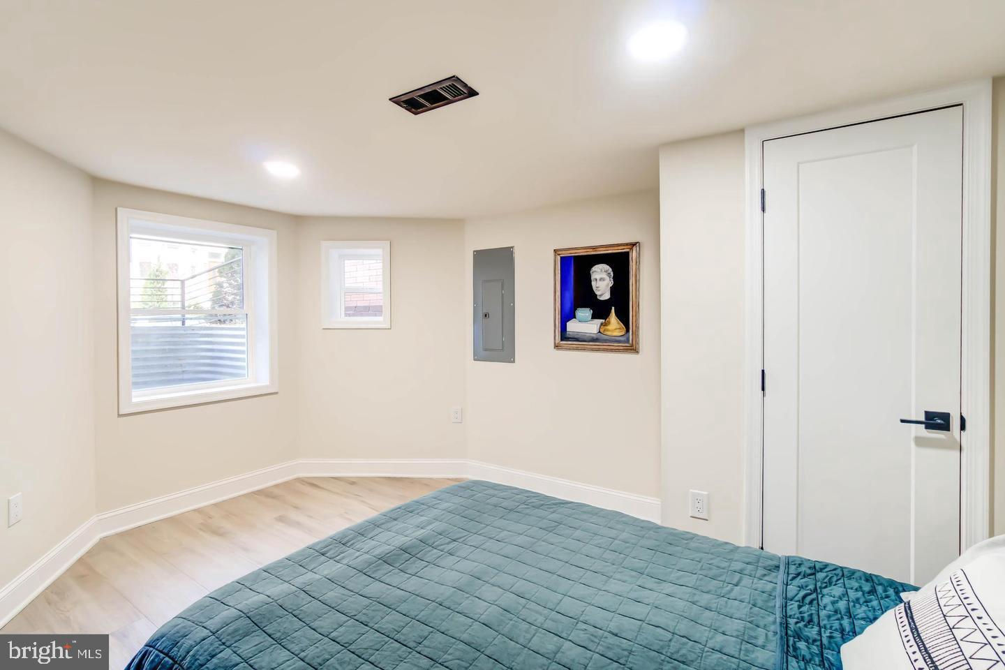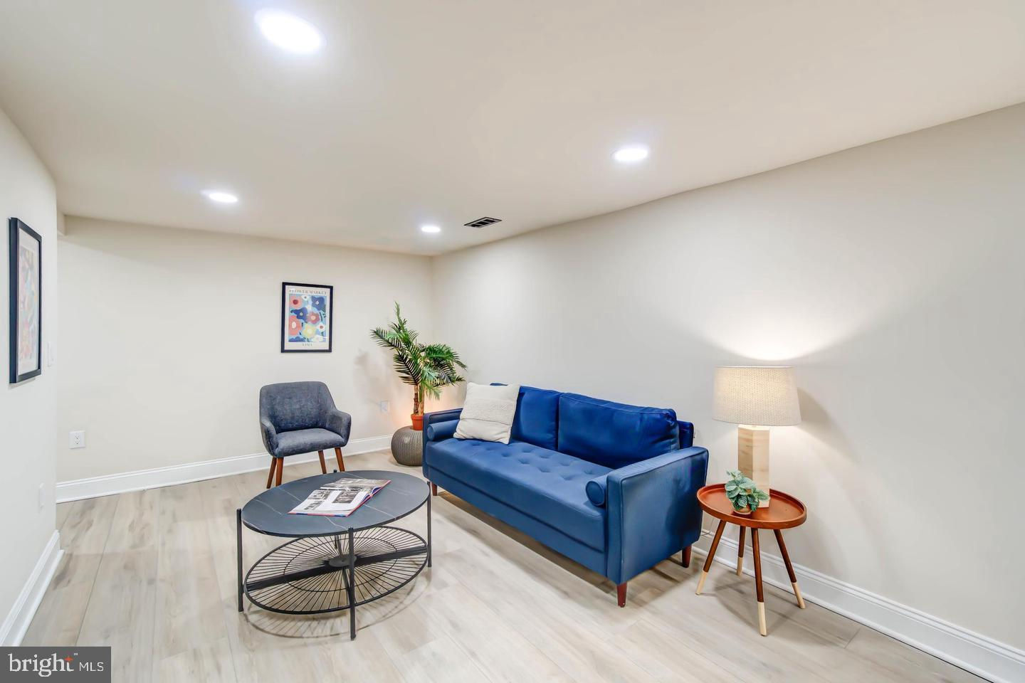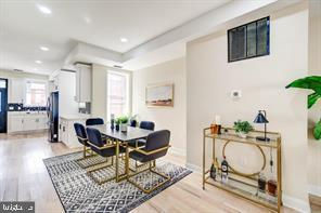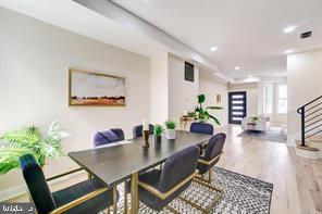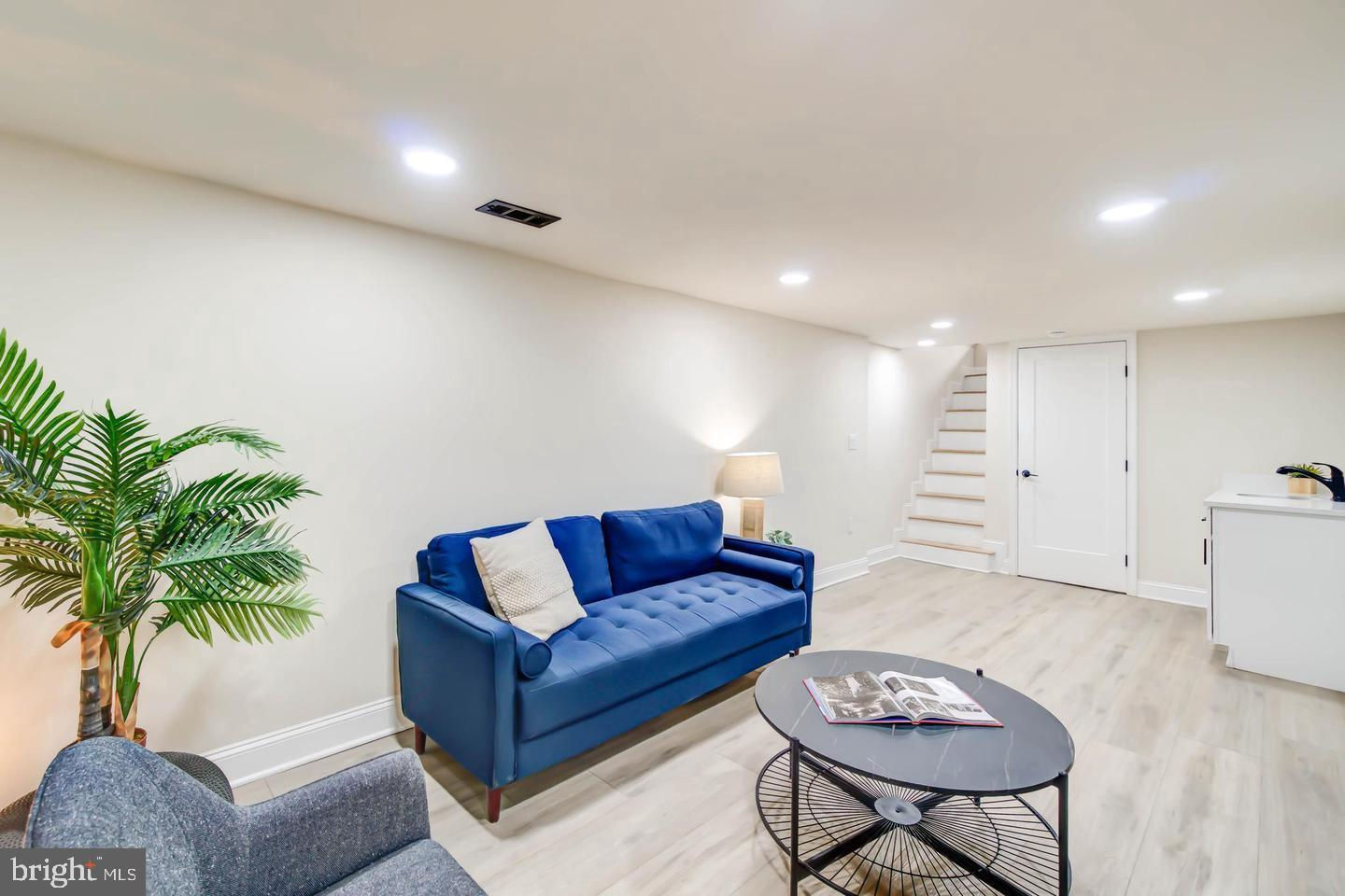 This striking 5 bedroom and 3.5 bath Federal row home has been renovated with quality updates while maintaining the historic character of a home built in 1909. New oak engineered hardwood flooring, new windows, 10’ ceilings on the main level, living room fireplace, bay windows, and an upper level skylight convey a pleasing blend of quality craftsmanship with modern design. Enter the home and you will be struck by the light-filled spaciousness of the living and dining room open floor plan leading you back to an L shaped gourmet kitchen. The kitchen features ample white shaker cabinetry, soft close drawers, stainless-steel appliances, gas range cooking, quartz countertops, mosaic tile backsplash and a pantry (also plumbed for a washer/dryer). Off the kitchen is an expansive Trex deck, perfect for grilling, relaxing and entertaining. The upper-level primary bedroom features a bay window and high vaulted ceilings. There are two closets and the ensuite bath has a double vanity, ceramic tiled flooring, and a frameless shower. Two additional bedrooms share a full bath, and one has access to an upper back balcony. The lower level provides an option for a separate living space with a large living room, a wet bar, two large bedrooms, a full bath, and laundry. There are two lower-level walk-out entrances accessible through the front and back. Perfect for leasing as a separate unit or as an in-law suite! 36 T St NW is a quiet tree-lined street that holds the appeal of community, within Washington, DC only one mile from the Capitol. Walkable to shops, grocery stores, parks, restaurants and public transportation with easy access to NoMa–Gallaudet U Station and Shaw Metro Stations. Off-street parking for two with remote roll-up garage door. What’s not to love!