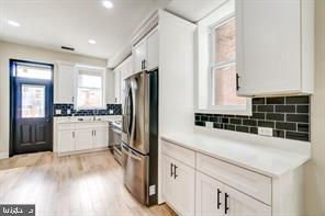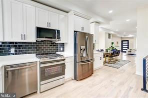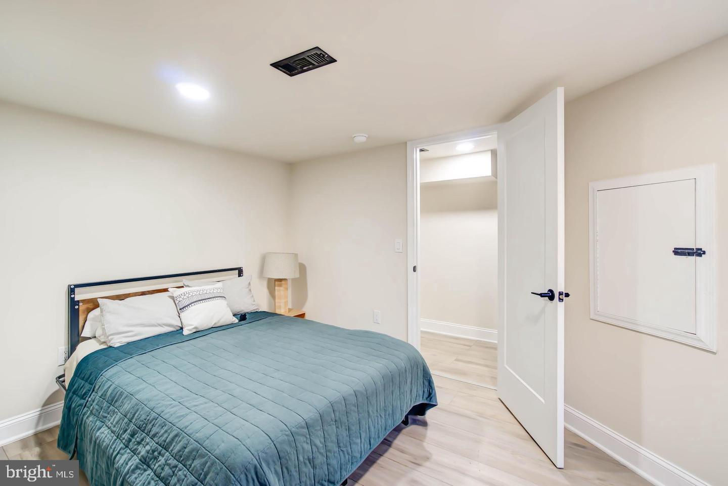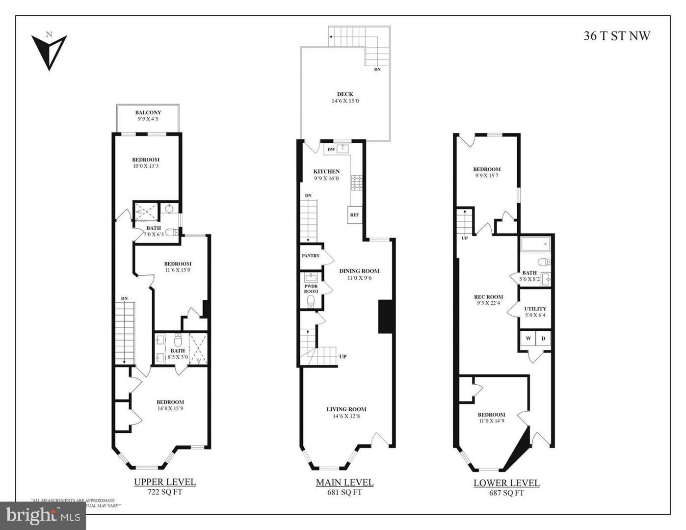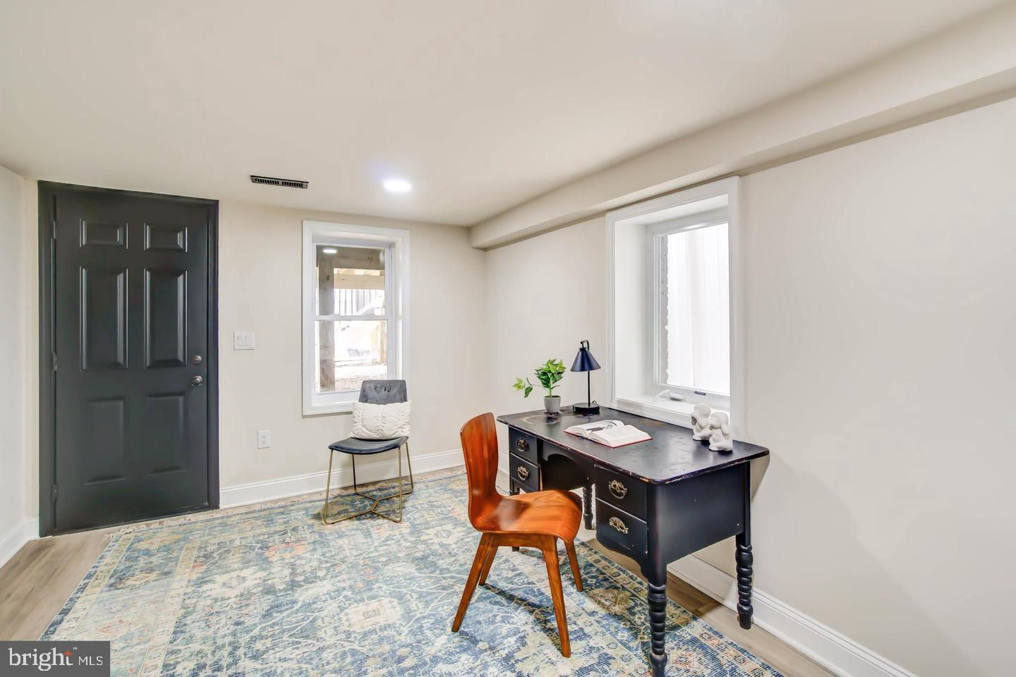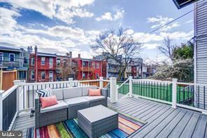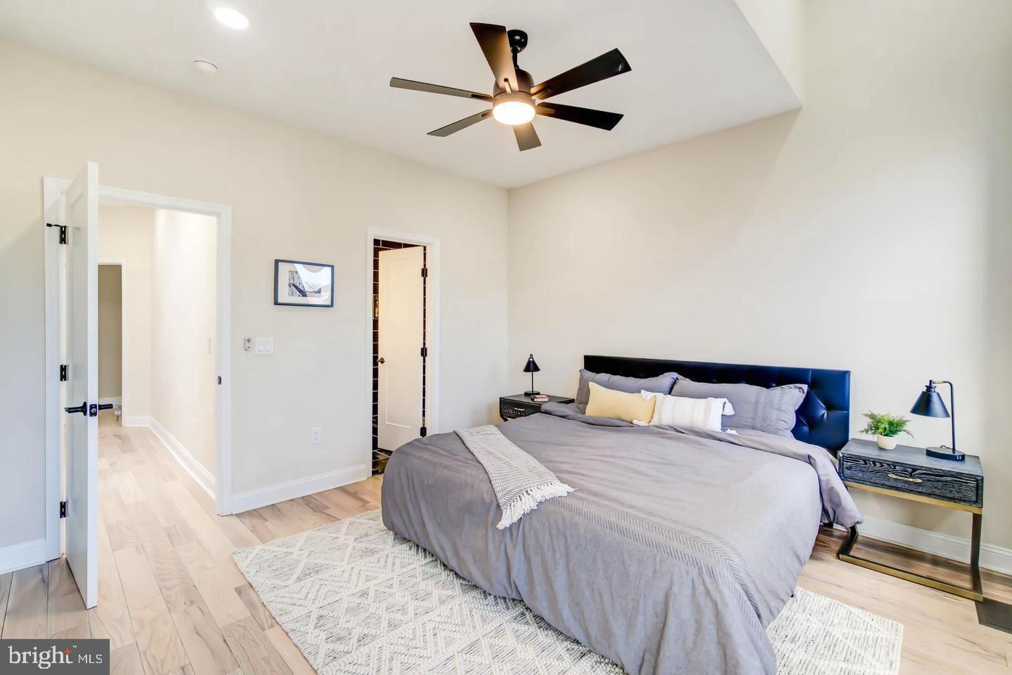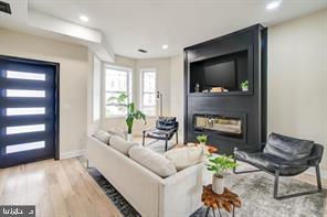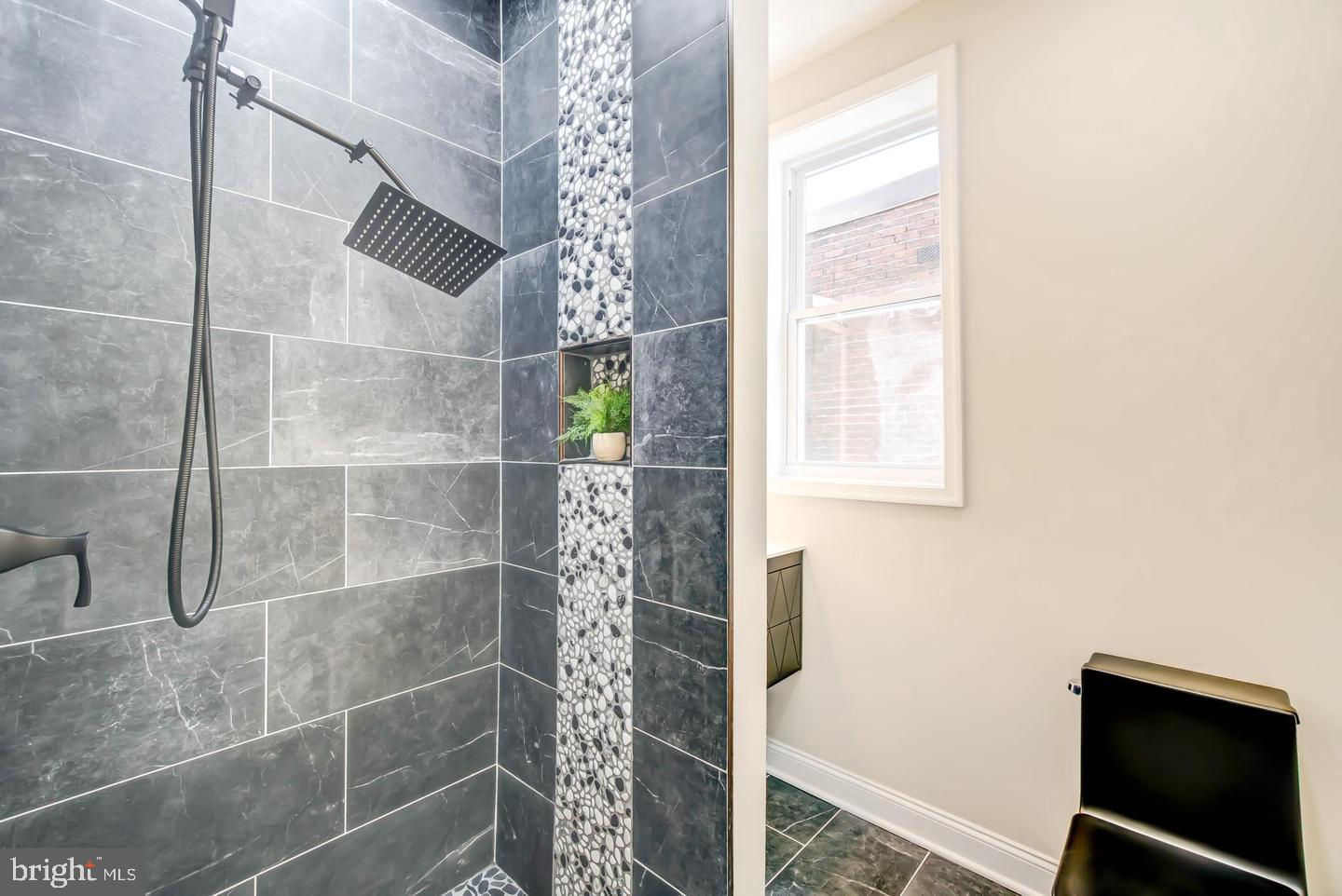 This striking 5 bedroom and 3.5 bath Federal row home has been renovated with quality updates while maintaining the historic character of a home built in 1909. New oak engineered hardwood flooring, new windows, 10’ ceilings on the main level, living room fireplace, bay windows, and an upper level skylight convey a pleasing blend of quality craftsmanship with modern design. Enter the home and you will be struck by the light-filled spaciousness of the living and dining room open floor plan leading you back to an L shaped gourmet kitchen. The kitchen features ample white shaker cabinetry, soft close drawers, stainless-steel appliances, gas range cooking, quartz countertops, mosaic tile backsplash and a pantry (also plumbed for a washer/dryer). Off the kitchen is an expansive Trex deck, perfect for grilling, relaxing and entertaining. The upper-level primary bedroom features a bay window and high vaulted ceilings. There are two closets and the ensuite bath has a double vanity, ceramic tiled flooring, and a frameless shower. Two additional bedrooms share a full bath, and one has access to an upper back balcony. The lower level provides an option for a separate living space with a large living room, a wet bar, two large bedrooms, a full bath, and laundry. There are two lower-level walk-out entrances accessible through the front and back. Perfect for leasing as a separate unit or as an in-law suite! 36 T St NW is a quiet tree-lined street that holds the appeal of community, within Washington, DC only one mile from the Capitol. Walkable to shops, grocery stores, parks, restaurants and public transportation with easy access to NoMa–Gallaudet U Station and Shaw Metro Stations. Off-street parking for two with remote roll-up garage door. What’s not to love!