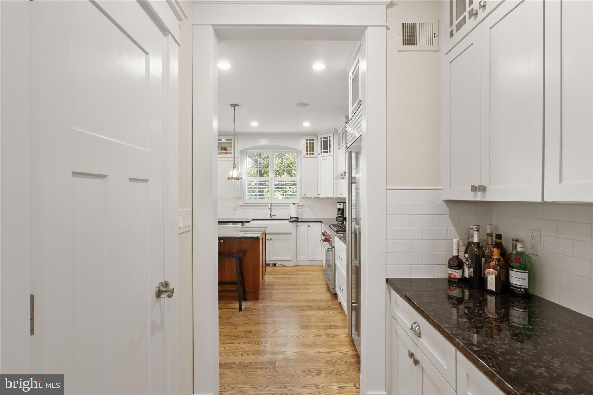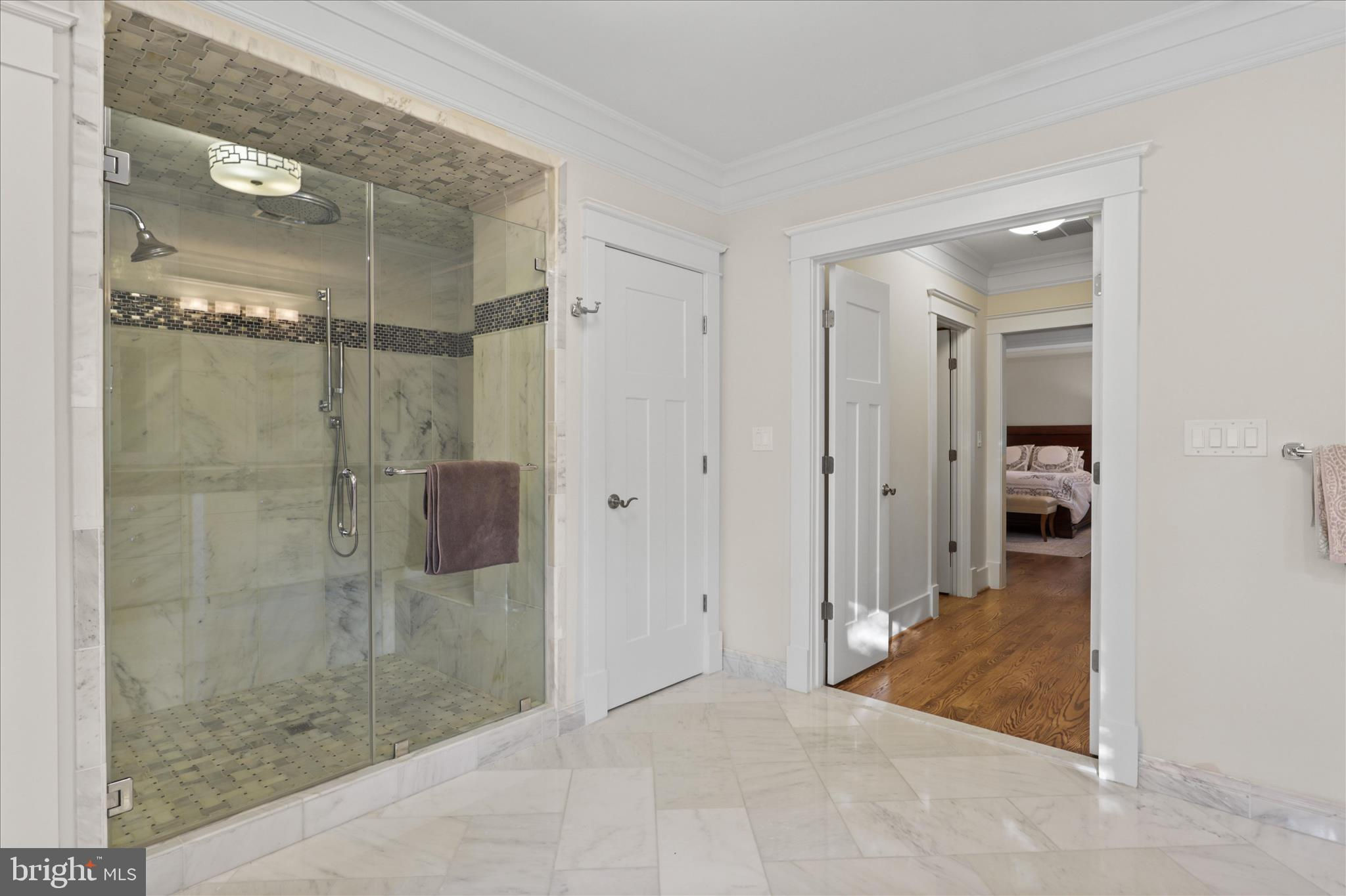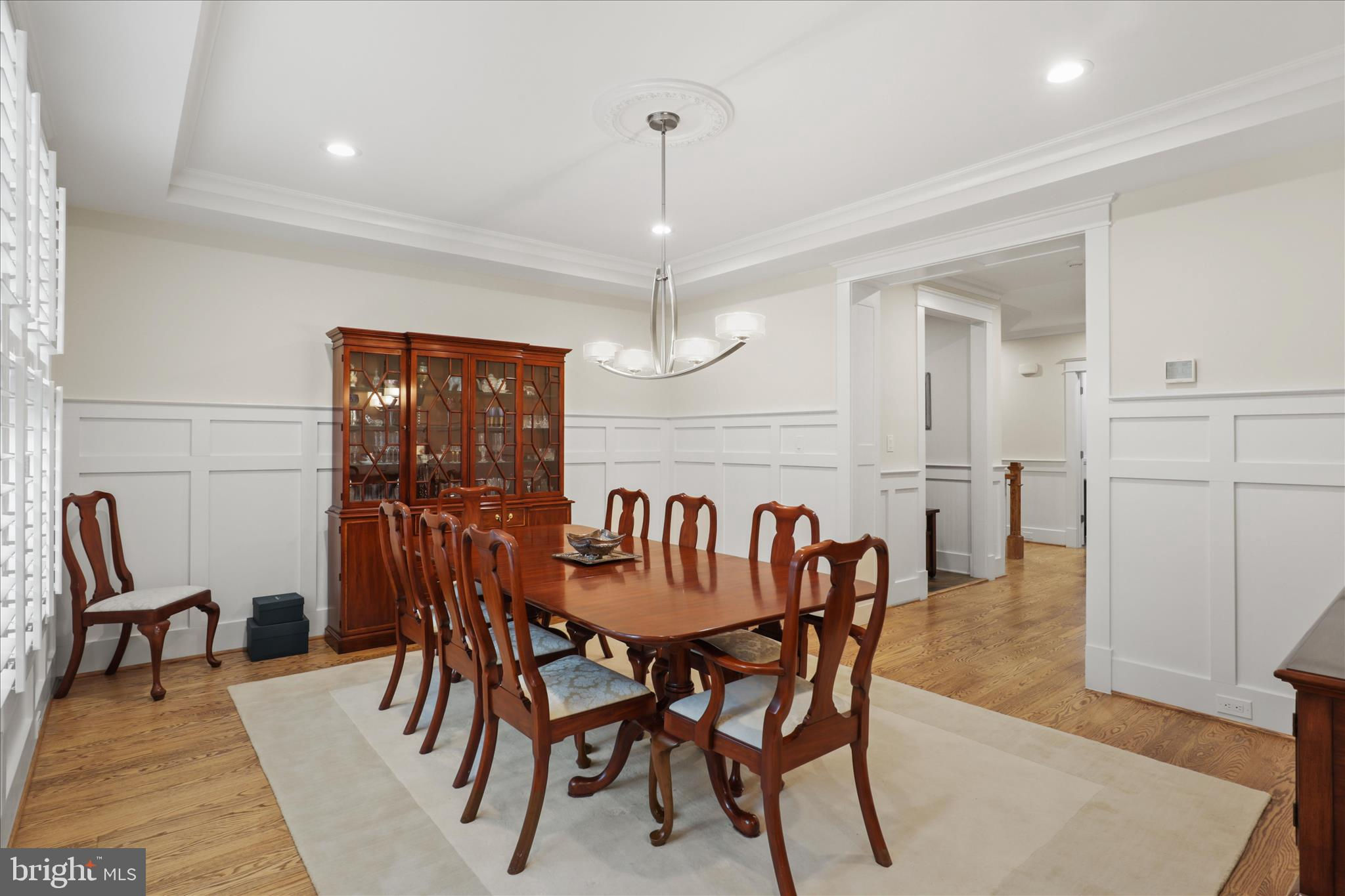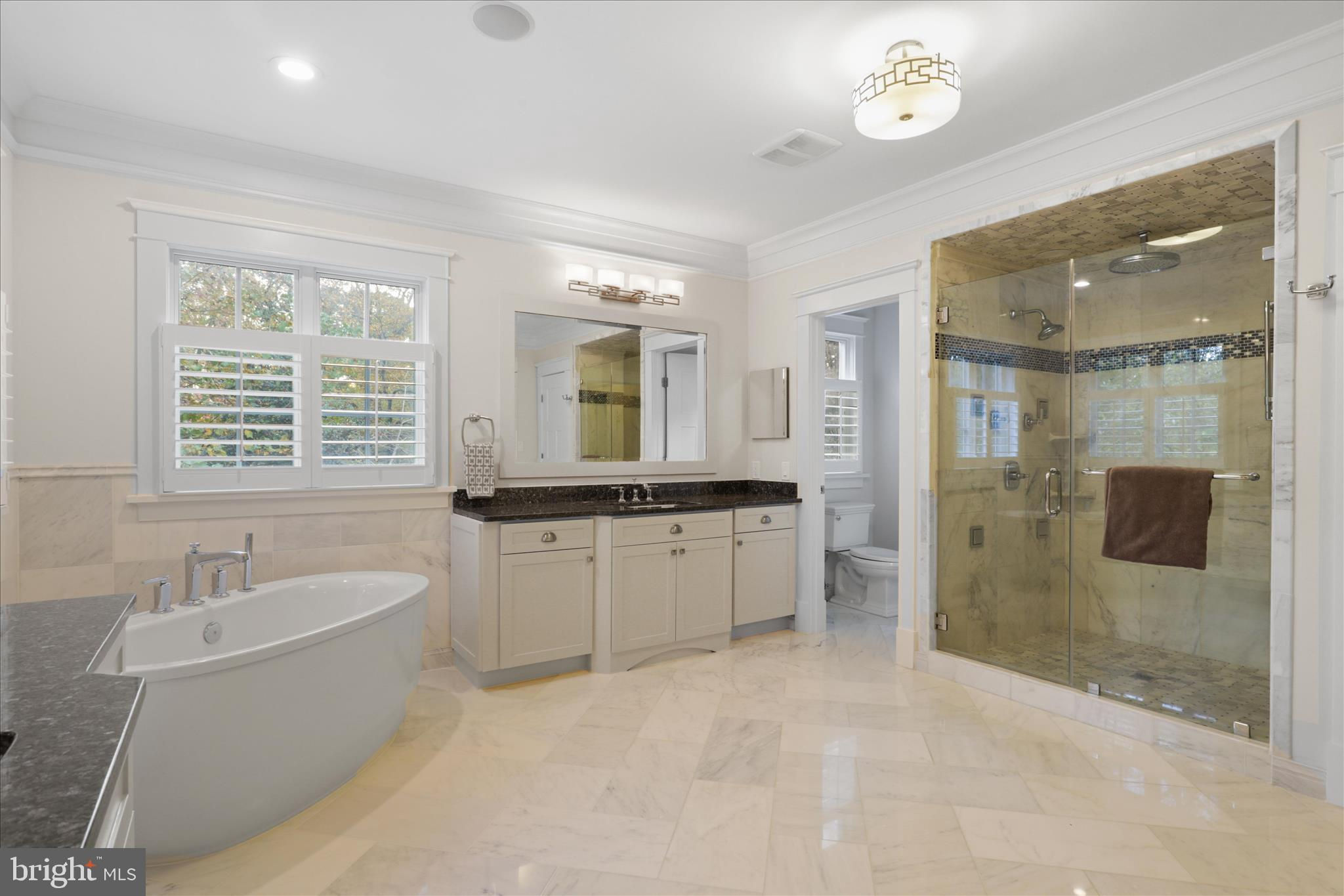 Nestled in the highly sought after neighborhood of Riverwood, this Stone/Hardie Plank Craftsman, 6008 sq. ft living area, 5-bedroom, 4.5-bathroom residence embodies the perfect blend of luxury and comfort. Eligible for Donaldson Run Swim Club, membership. Built in 2012, with a synthetic Slate roof is designed for those who appreciate high-end living and modern conveniences. As you step inside, you are greeted by an inviting foyer that leads to a Living Room, Den & spacious Family Room adorned with crown molding & coffered ceiling, Built-Ins and Fireplace, creating an ambiance of warmth and sophistication. The gourmet kitchen is a chef's dream, featuring Decora white Cabinets, upgraded Granite countertops, and Wolf and Sub-Zero appliances, large walk-in pantry, a butler's pantry, perfect for entertaining. The kitchen's island and table space provide a seamless flow for gatherings, while the formal dining room offers an elegant setting for special occasions. Retreat to the large Primary suite, where luxury meets tranquility. The en-suite Marble bathroom boasts a soaking tub, walk-in shower, and dual vanities, ensuring a spa-like experience. Each additional 4 bedrooms are generously sized, with ample closet space and easy access to beautifully appointed bathrooms. With two Gas fireplaces, cozy evenings are guaranteed. Walk-in Refrigerated Wine Cellar with 1400 bottle storage. Step outside to discover a Rare private oasis on a sprawling .79-acre private wooded lot. The exterior features a large 2 level Trex deck & screened porch and meticulously landscaped grounds that adjoin open space and Windy Run Parkland, providing serene views of the creek and surrounding trees. The property is designed for outdoor enjoyment, with an underground lawn sprinkler system ensuring your yard remains lush and inviting. Convenience is paramount, with an attached garage accommodating two vehicles and additional driveway. The home is strategically located near public transportation, making commuting a breeze. This residence not only offers luxurious living but also embodies sustainability with energy-efficient construction and appliances. Experience the exclusive lifestyle that this remarkable property provides, where every detail has been thoughtfully curated.