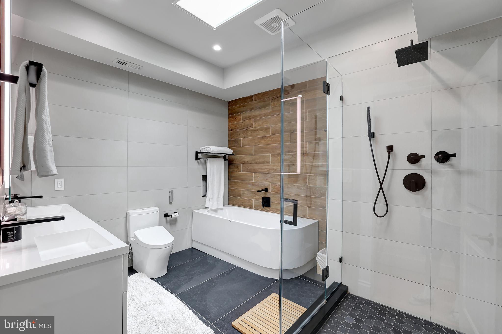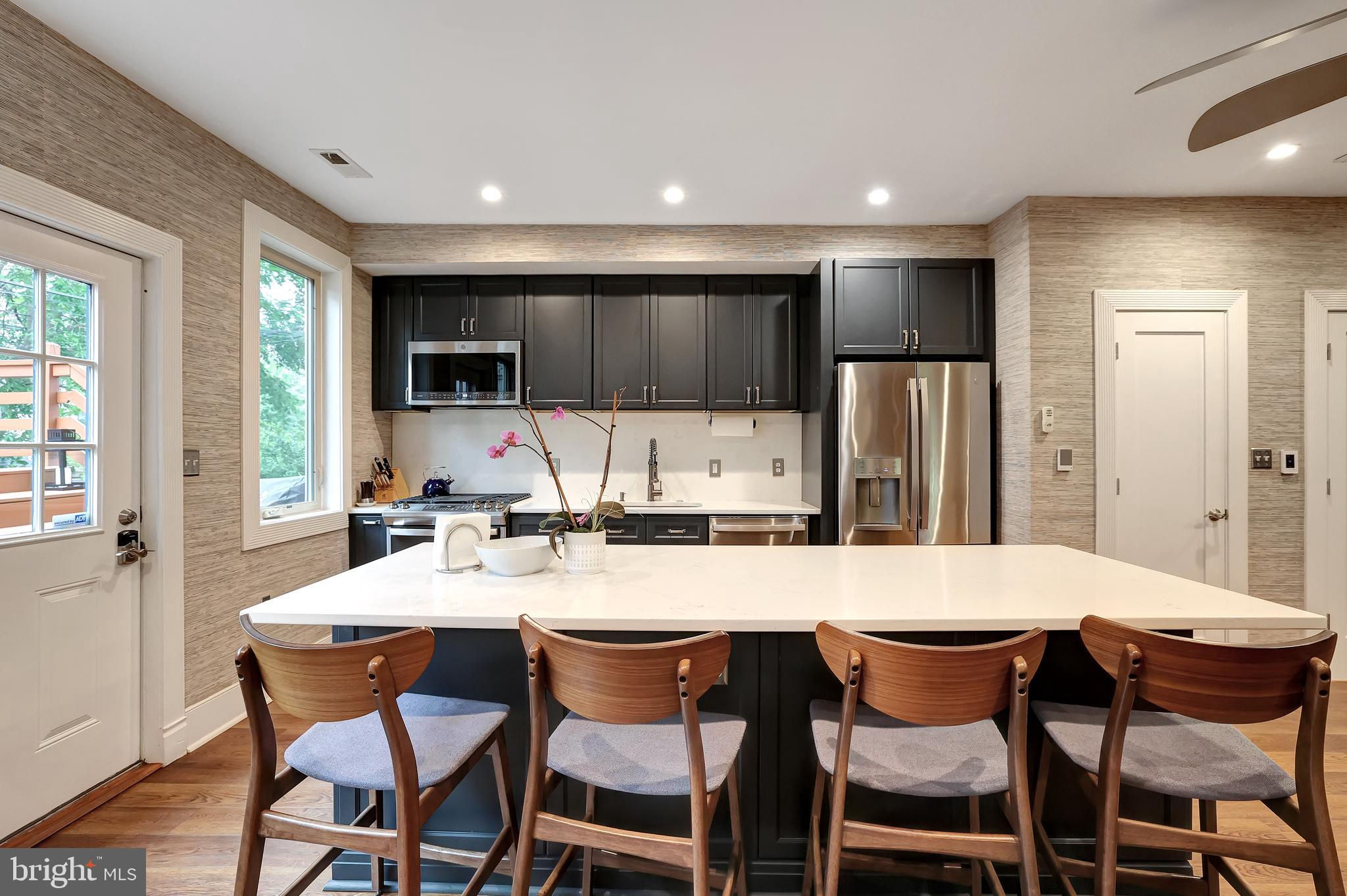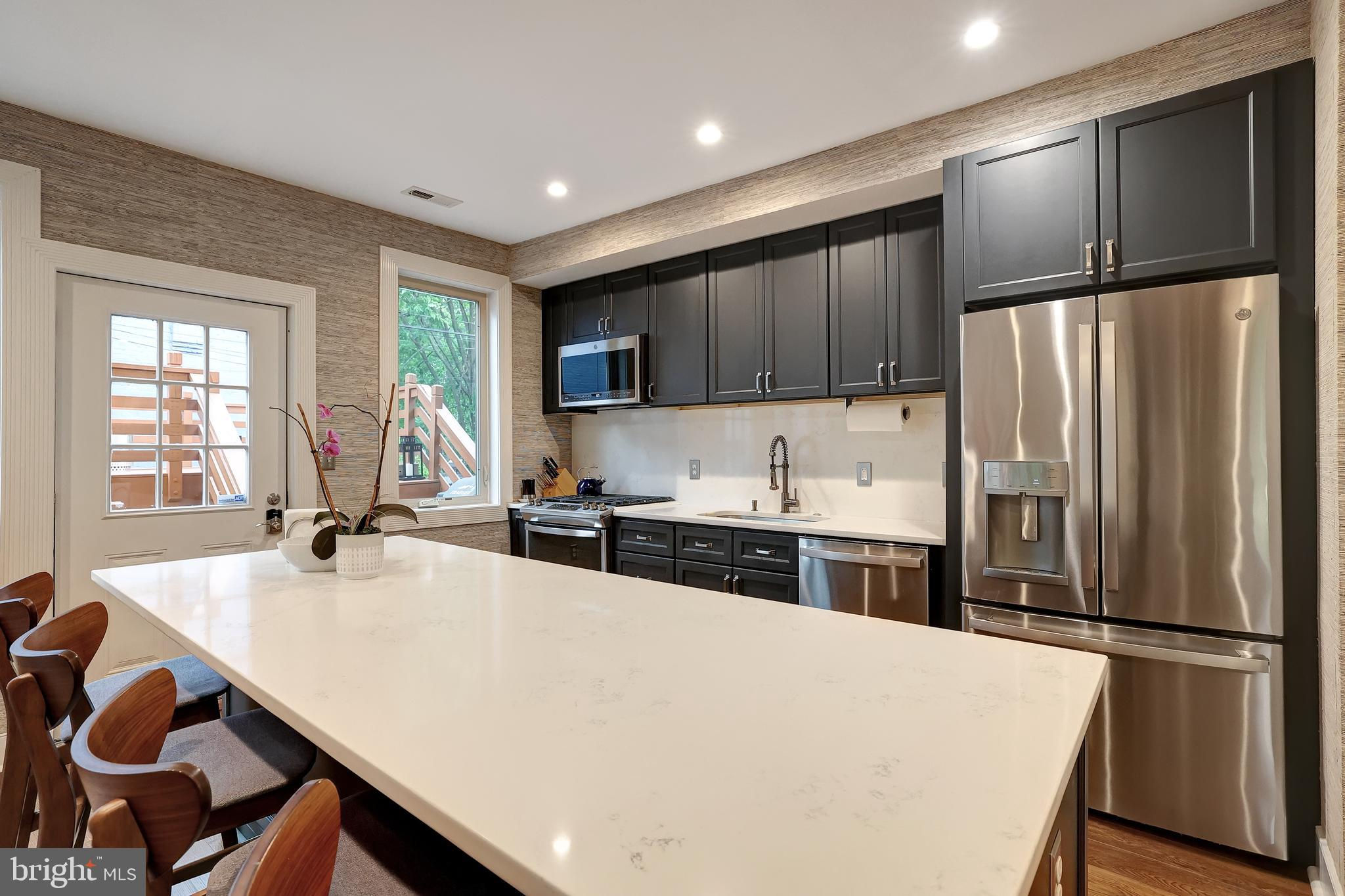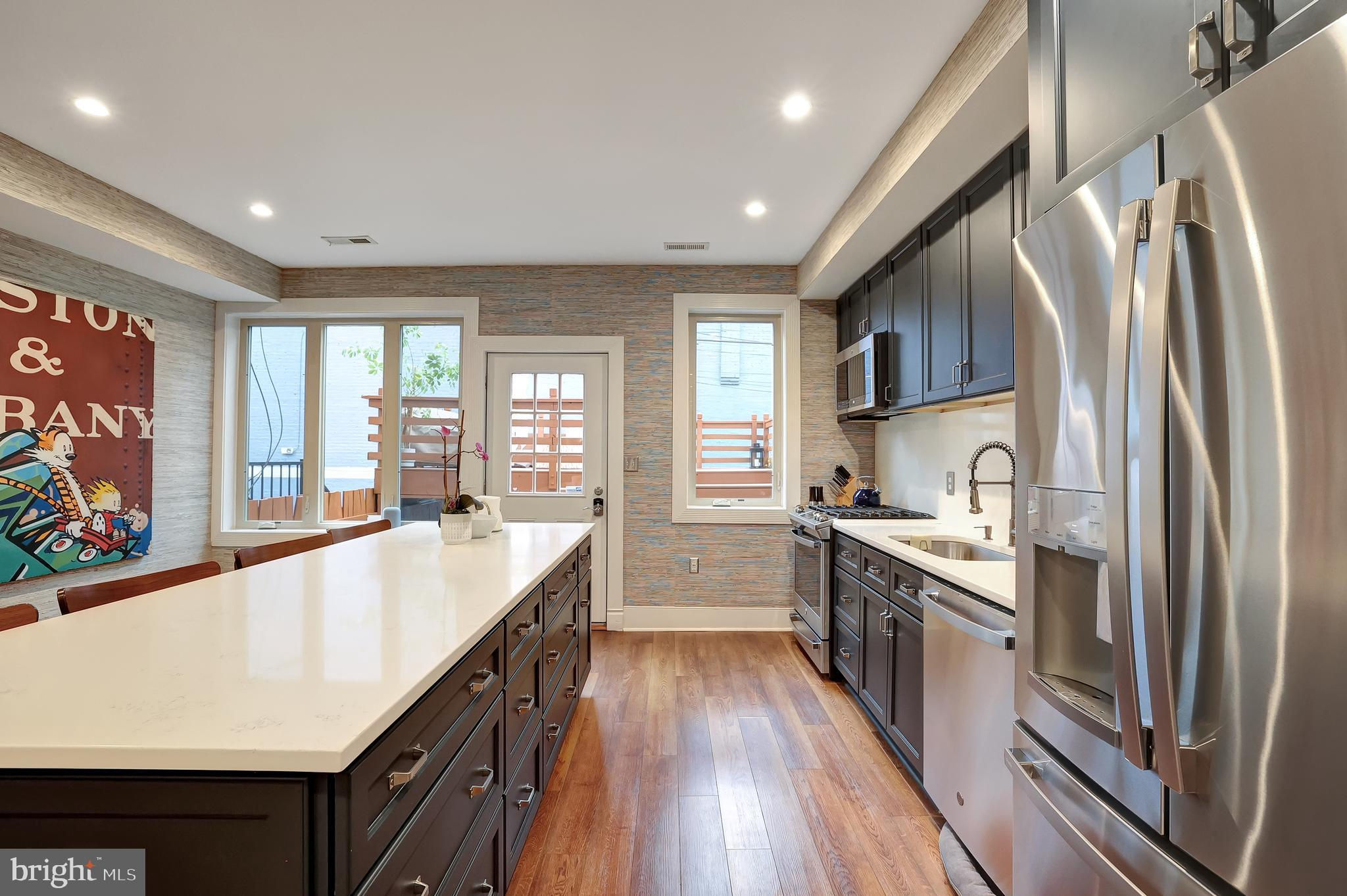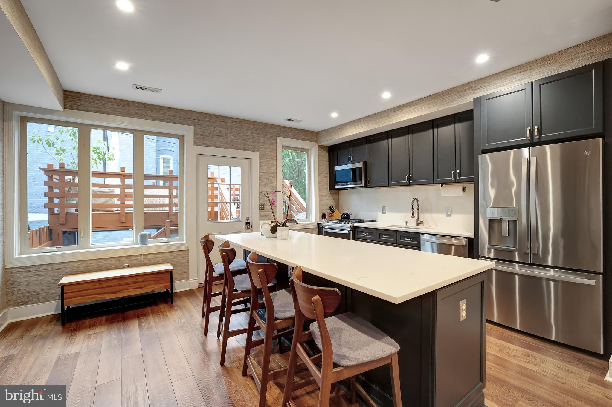 IT’S 3604 THE WIN! It’s the stunning finishes. It’s the eye-popping upgrades. It’s the quality renovation. It’s so much! At every turn, this beautiful row home at 3604 11th St. NW clinches the high score. Stepping up from the residential, one-way street, past the quaint front garden, you’ll be tempted to have a seat on the handsomely painted porch, complete with ceiling fan to make leisurely summer evenings sublime. But don’t stop – you’ve got so much to explore! Entering at the main level, you’ll find a floor completely reimagined in 2020. From the living room with pass-through gas fireplace, move into a truly stunning kitchen. This overflowing space is decked out in Carrara Marmi quartz, topping the counters and central island. The Versa Shaker cabinets are the perfect blend of sensible and sleek. And that gorgeous butcher-block bar may have just winked at you…. While the finishes are warm, the Lifeproof LVP floors along this main level truly bring the heat – the radiant heat. Can’t stand the heat? Then get out of the kitchen and onto the adjacent back deck. This inviting outdoor space is perfect for outdoor entertaining or a low-key dinner al fresco. The second floor, with separate laundry room, features two ensuite bedrooms. The entire third floor is a primary suite in a league of its own. The sleeping area includes a balcony and Elfa walk-in closet. At the front of this suite is a home office that could serve any number of needs. The primary bathroom, however, completely redone in 2022, is incomparable. The Madeli floating vanity is lovely, but that 72-inch Madeli Slique Sanctuary mirror is mesmerizing. You’ll have trouble choosing between the deep spa tub or the Kohler thermostatic shower. And the Toto Neorest toilet will likely tickle your fancy in ways you can’t yet even imagine. Rounding out the tour of this heavenly home, with its soaring ceilings, the sub level offers another full bath, second washer and dryer, storage, and an open footprint to create whatever you like, be it guest suite, gym, home theater, or something else entirely. Just behind, below the large deck, you’ll find garage parking with automatic door and a built-in Tesla EV charger. This winning property has everything! It’s all the better for being in a winning location. While there’s easy access to two Metro stations, it's the vaunted venues starting just a block south that will get your attention. It’s The Coupe, Cinco Soles, and Makan, for starters. Then there’s Red Rocks, Queen’s English, El Chucho, and Buddy’s DC. That’s a mere slice of the neighborhood. But any way you cut it, it’s undeniably 3604 the win!