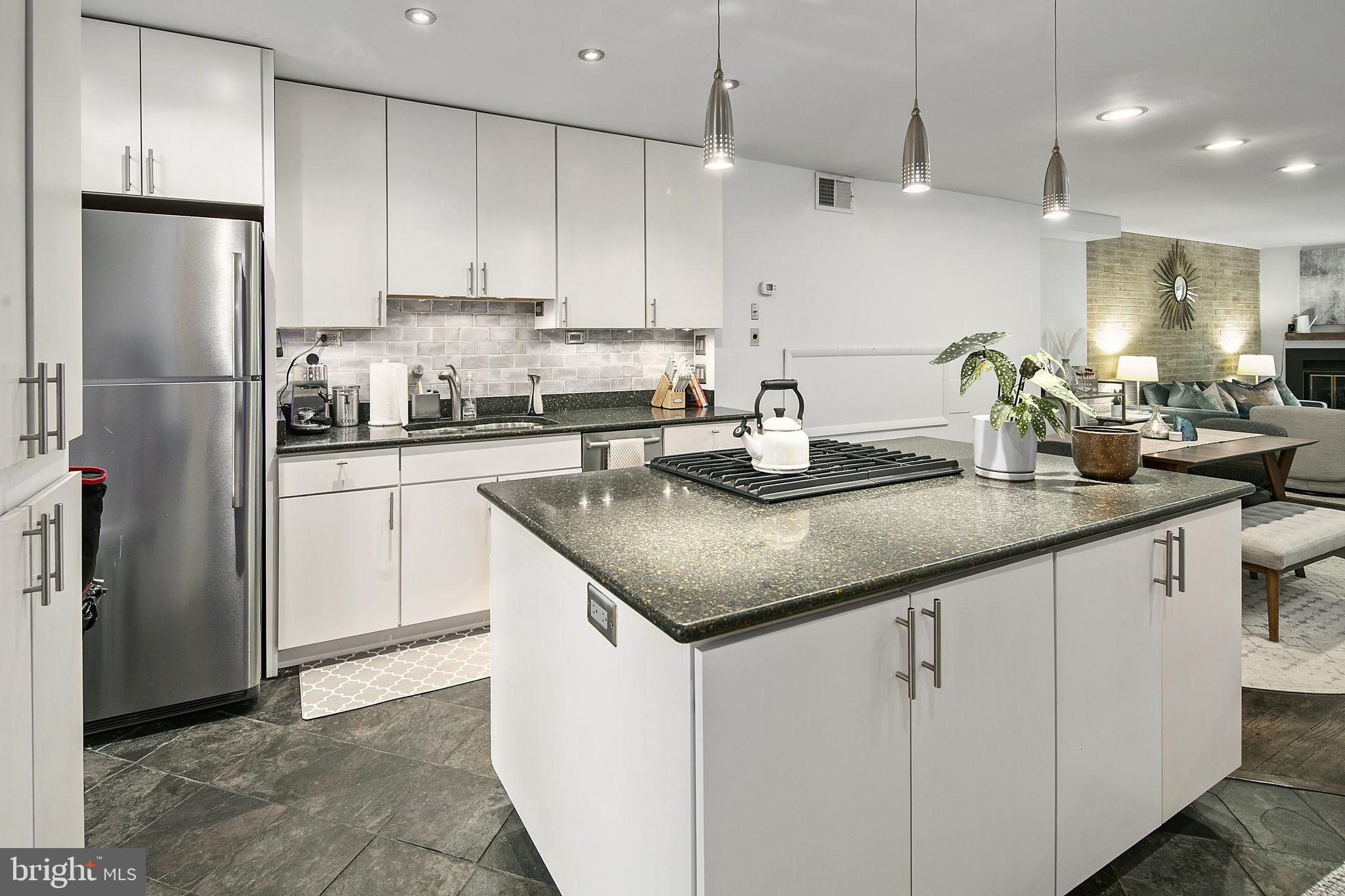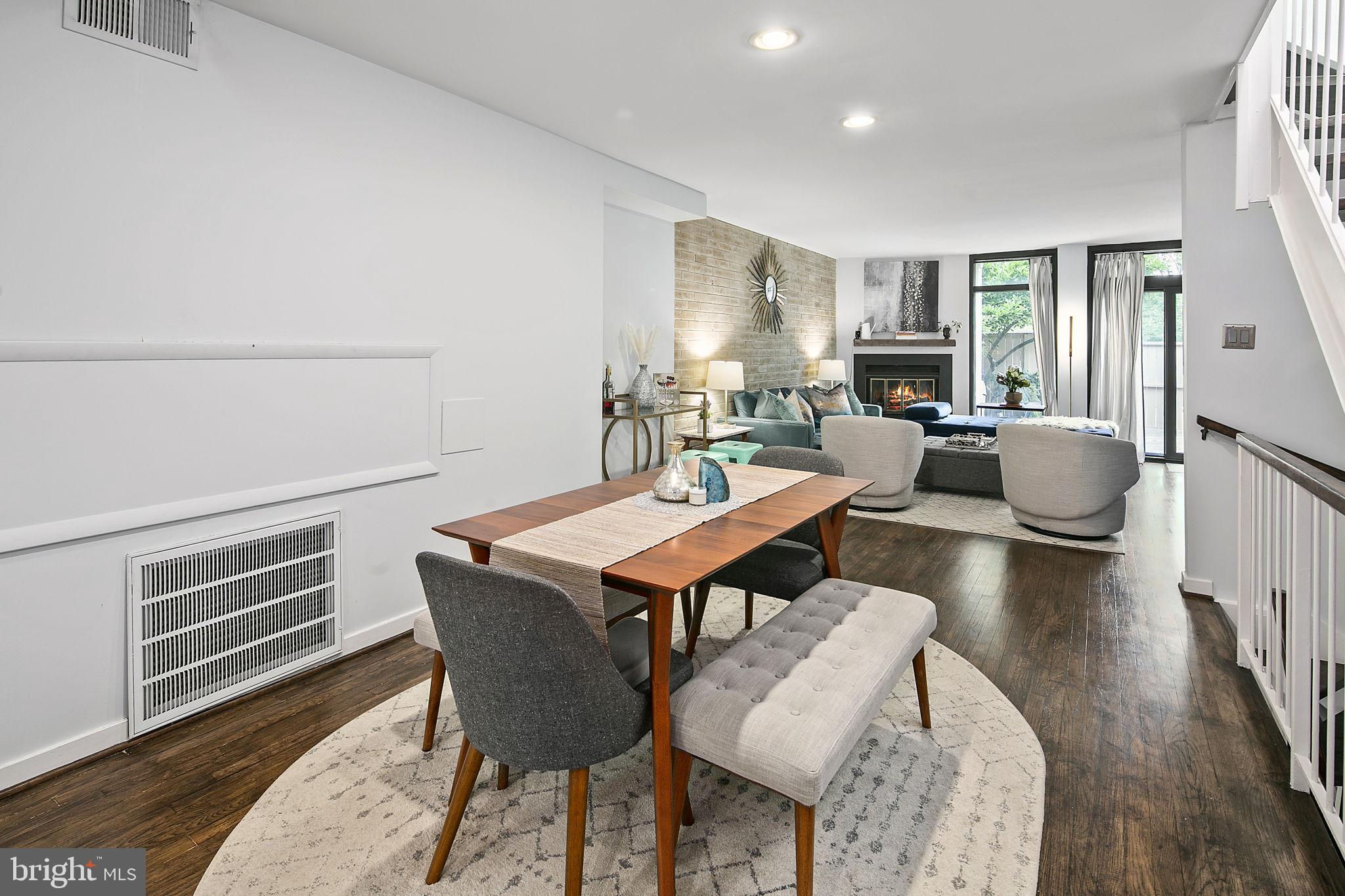 Just mintues from The Wharf, Waterfront Metro, Navy Yard, National's Park and more! Experience 361 N St SW: a reimagined mid century townhome style condo where effortless modern style meets classic charm of D.C's premier Southwest Waterfront neighborhood. This stylish mid-century townhome, located in the coveted Carollsburg Community of Southwest, offers over 2500 sqft spanning 3 levels making this condo feel more like a single family home. Tucked away in a secured and peaceful enclave just off N Street with convenient access to all that living in Southwest Waterfront has to offer. A beautifully landscaped walkway leads up to the private and fenced in front entrance, with a patio and vibrant garden, welcomes you into the main level entrance. Natural light flowing effortlessy through a bright and airy open floor plan including an updated gourmet kitchen equipped with premier stainless steel appliances, granit counter tops; a center island with storage on each side and a cooktop. The adjoining dining room offers ample light and plenty of seating and design options. The spacious living room is anchored by an exposed brick wall and gas fireplace with a large floor to ceiling window and glass door bringing in natural light leading out into the rear garden-—creating the perfect indoor-outdoor connection that defines mid-century design. The rear garden is a true oasis, complete with a brand-new deck, mature landscaping, space for grilling (grill conveys), and areas for sunbathing and al fresco dining. This serene space also provides direct access to the grassy park-like common area and the Carrollsburg’s exceptional amenities. Upstairs, a skylight brings natural light into the hallway, leading to the serene primary suite with an en-suite bath and a distinctive, oversized walk-in closet. A generous guest bedroom with its own full bath completes this level. Both bedrooms enjoy access to private balconies, offering tree-top views. The lower level includes a flexible family room or potential home gym, office, or guest suite—complete with a fully renovated full bathroom (2025). There’s also a large, dedicated laundry offering ample space for storage, crafting or hobby. Two garage parking spaces located just below the unit are included. The comprehensive condo fee covers: heating and cooling (with seasonal maintenance and annual system cleaning); all utilities (electric, gas, water, sewer); trash and snow removal; exterior building and lawn maintenance; roof, decks, balconies, and fence upkeep; on-site management; outdoor pool and fountains; park-like common grounds; common laundry rooms; 24/7 front desk concierge for package delivery; security; master insurance and reserve funds. The location is unbeatable! Just steps from Waterfront Metro, minutes from the Wharf, Navy Yard, National's Park, downtown D.C, word class dining, theaters, shopping and more! Don't miss this amazing and rare opportunity to own a unique homes like this one!