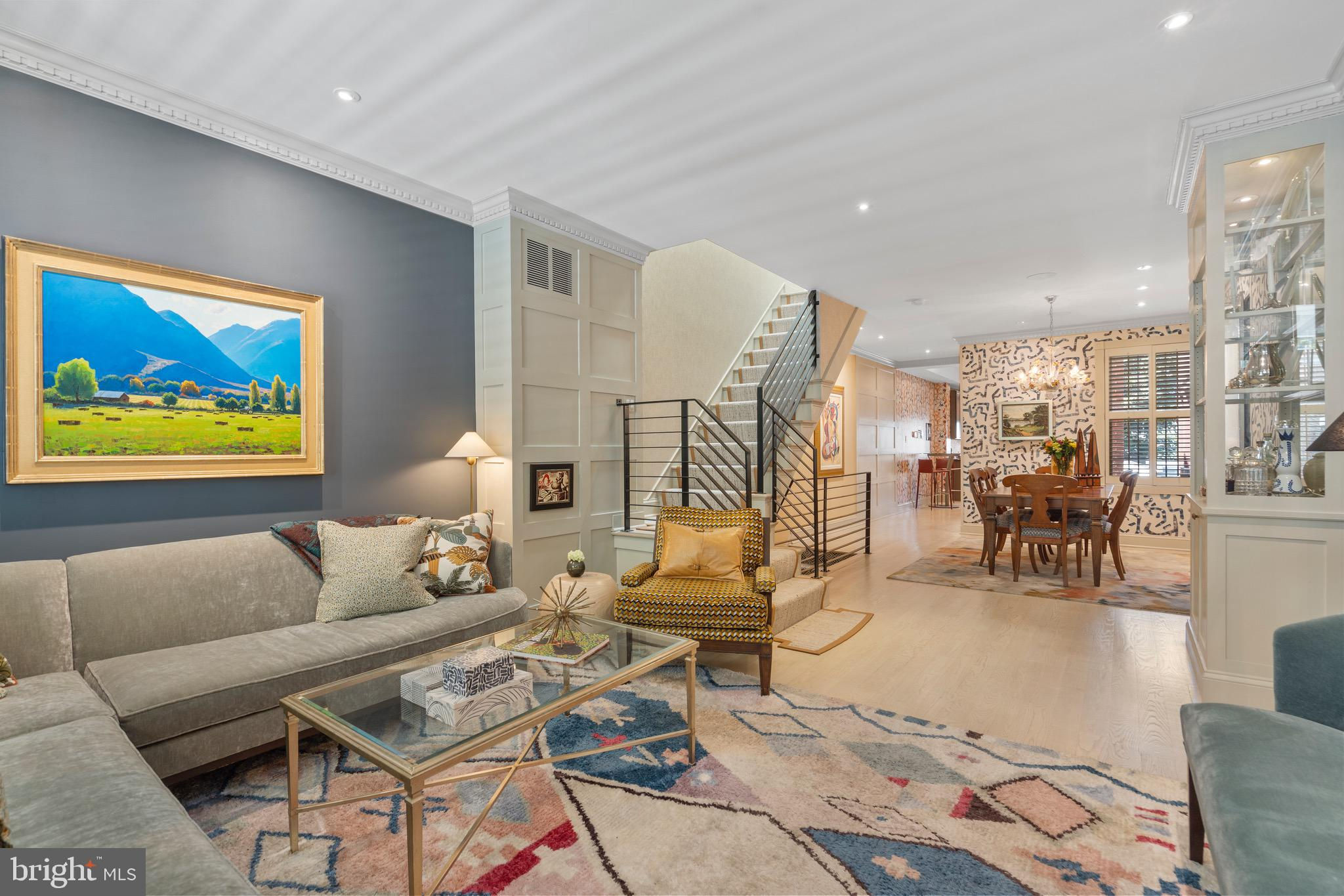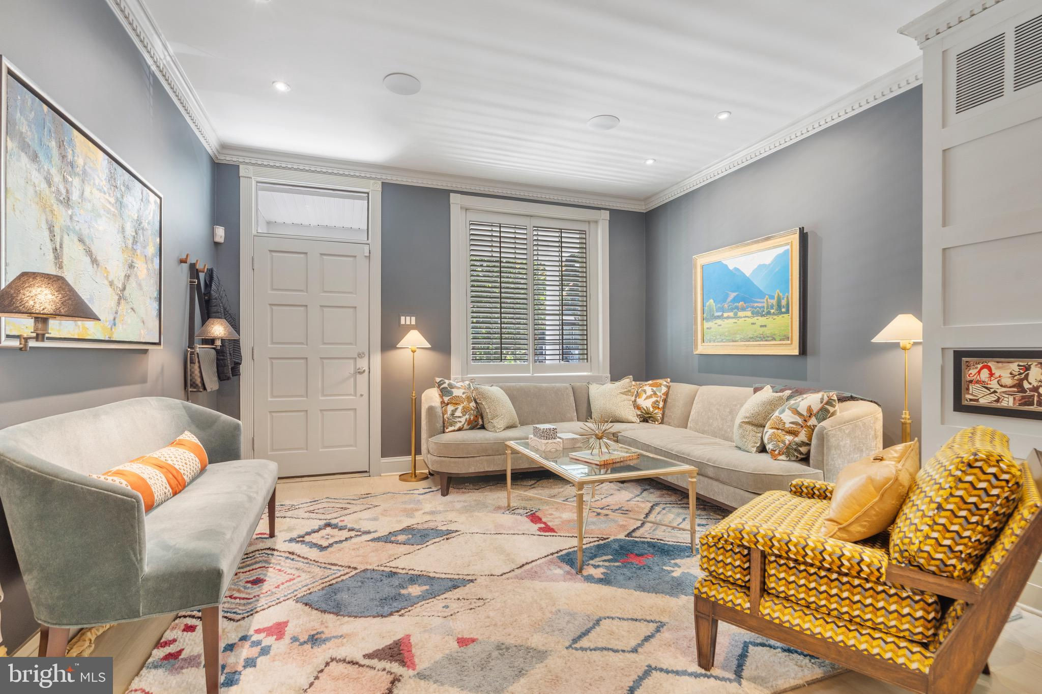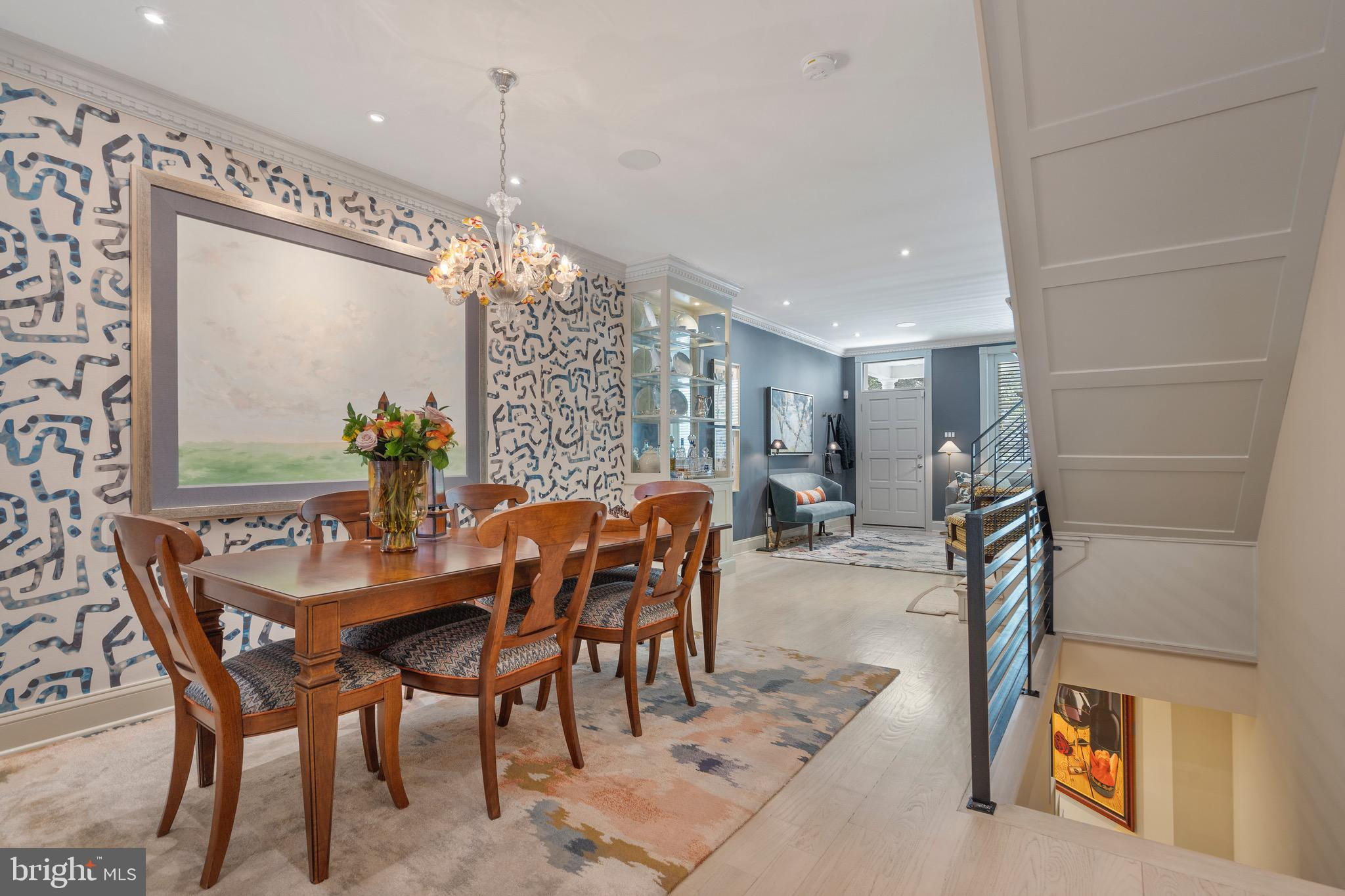 Welcome to this magnificent bespoke row home designed by J.D. Ireland Interior Architecture & Design - one of D.C.'s most sought after design teams. Inside you will discover endless attention to detail and perfect for anyone who appreciates design and functionality as well as high end wall coverings and paint colorations that tell a unique story. Custom furniture pieces are also matched with abstract art complimentary to personality of this home, including the Murano chandelier featured in the dining room. Of course there are crown moldings, shaker walls, and White Oak flooring throughout this elevated home (basement carpet is 100% virgin wool). Primary bedroom offers vaulted ceilings and an en suite spa bathroom with custom closets. The Gourmet kitchen makes perfect for entertaining as you'll find Viking and Sub-Zero appliances. Owners have also installed the intelligent Control 4 Smart home system which controls lighting, sound systems, alarm, and temperature. Outdoor space is connected to the second bedroom as well as rear kitchen doors that lead to meticulously landscaped back yard. The secure garage parking is tandem and parks 2 automobiles. Must see in person!