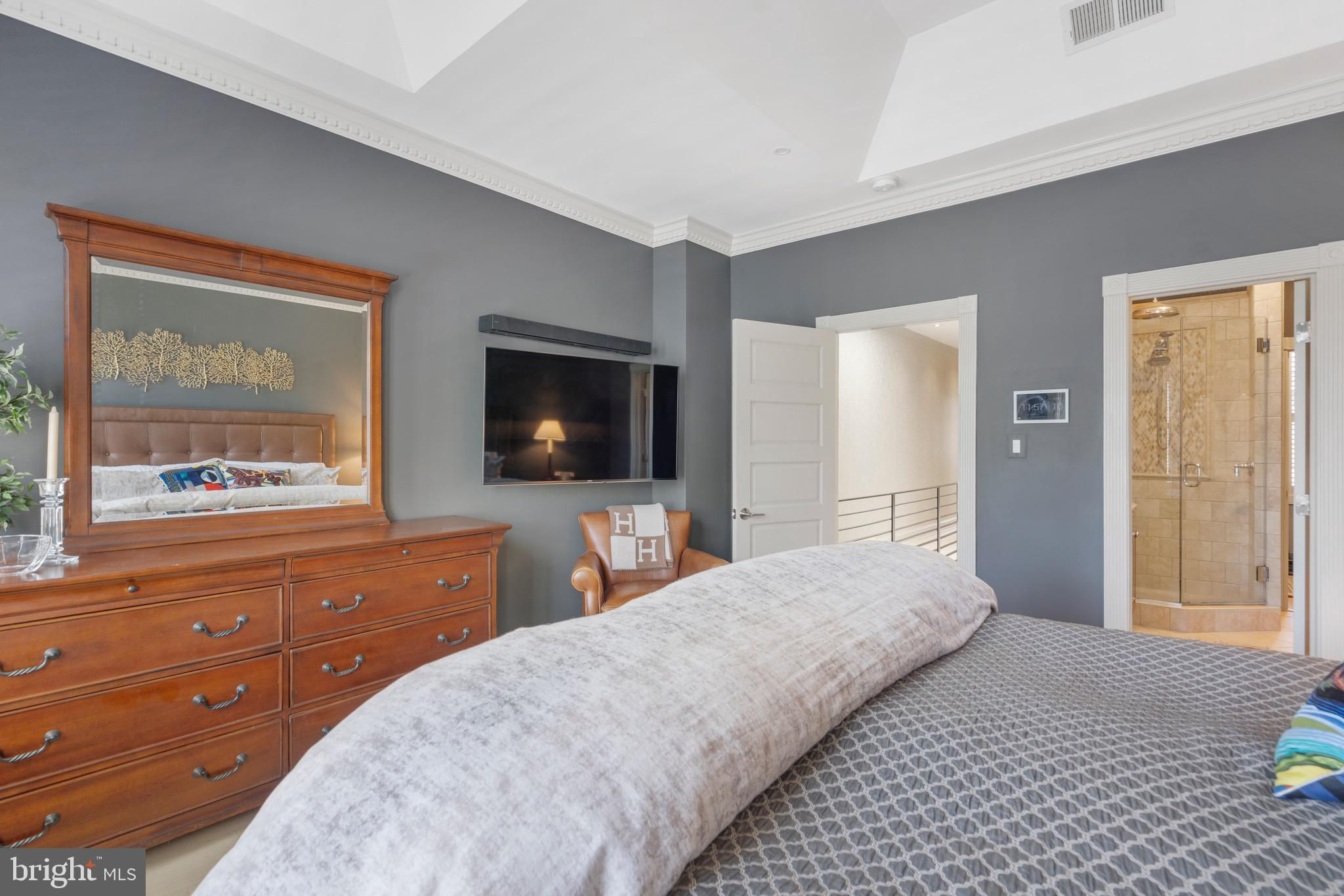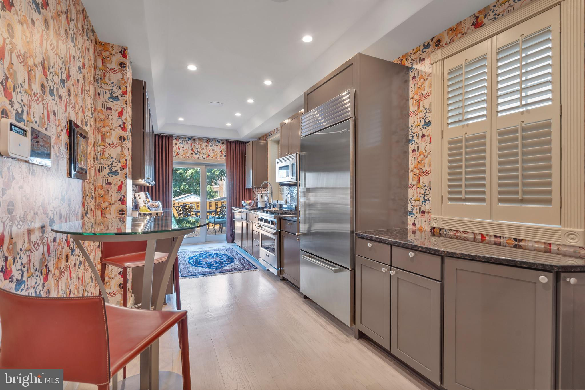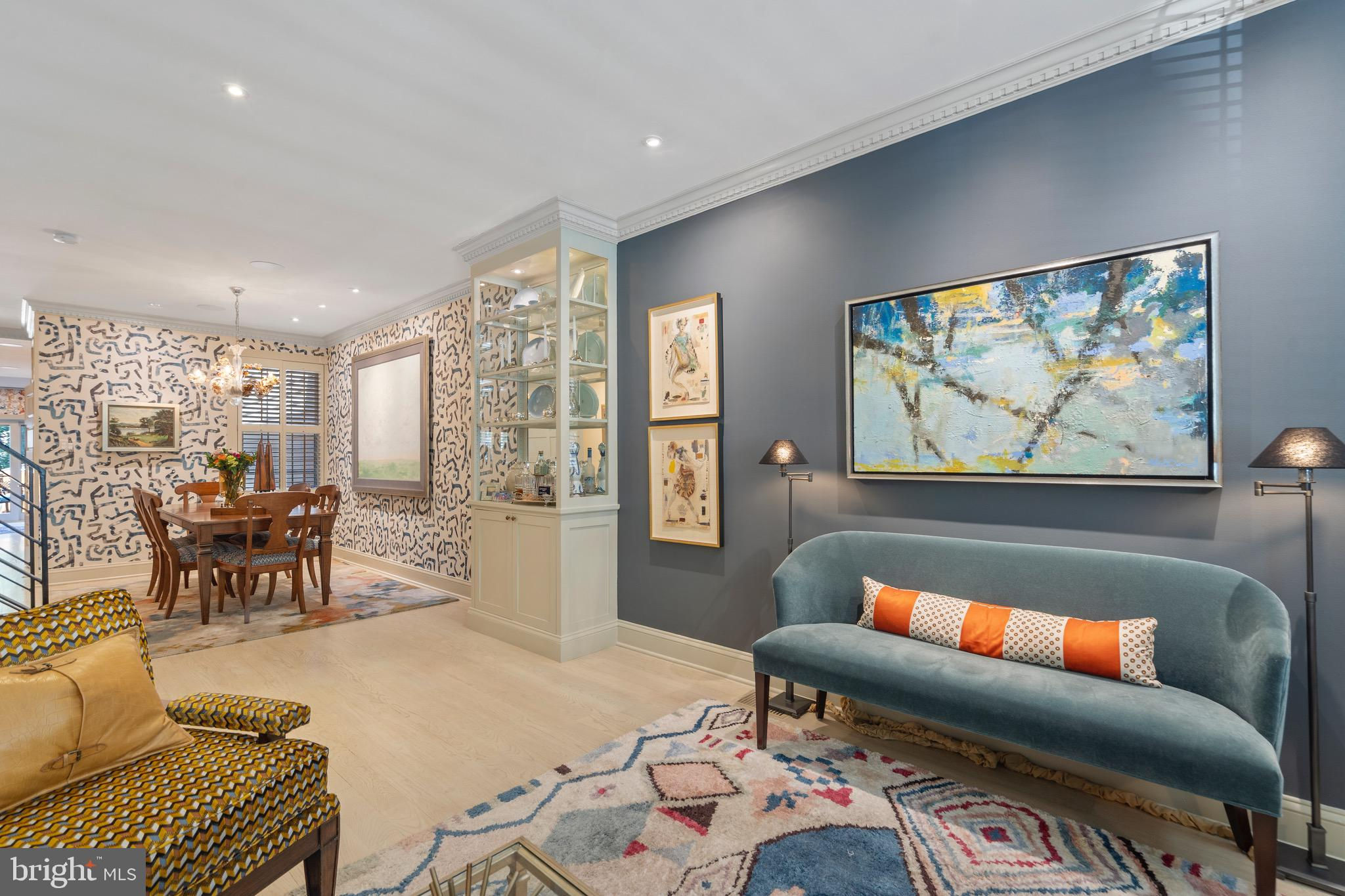 Welcome to this magnificent bespoke row home designed by J.D. Ireland Interior Architecture & Design - one of D.C.'s most sought after design teams. Inside you will discover endless attention to detail and perfect for anyone who appreciates design and functionality as well as high end wall coverings and paint colorations that tell a unique story. Custom furniture pieces are also matched with abstract art complimentary to personality of this home, including the Murano chandelier featured in the dining room. Of course there are crown moldings, shaker walls, and White Oak flooring throughout this elevated home (basement carpet is 100% virgin wool). Primary bedroom offers vaulted ceilings and an en suite spa bathroom with custom closets. The Gourmet kitchen makes perfect for entertaining as you'll find Viking and Sub-Zero appliances. Owners have also installed the intelligent Control 4 Smart home system which controls lighting, sound systems, alarm, and temperature. Outdoor space is connected to the second bedroom as well as rear kitchen doors that lead to meticulously landscaped back yard. The secure garage parking is tandem and parks 2 automobiles. Must see in person!
