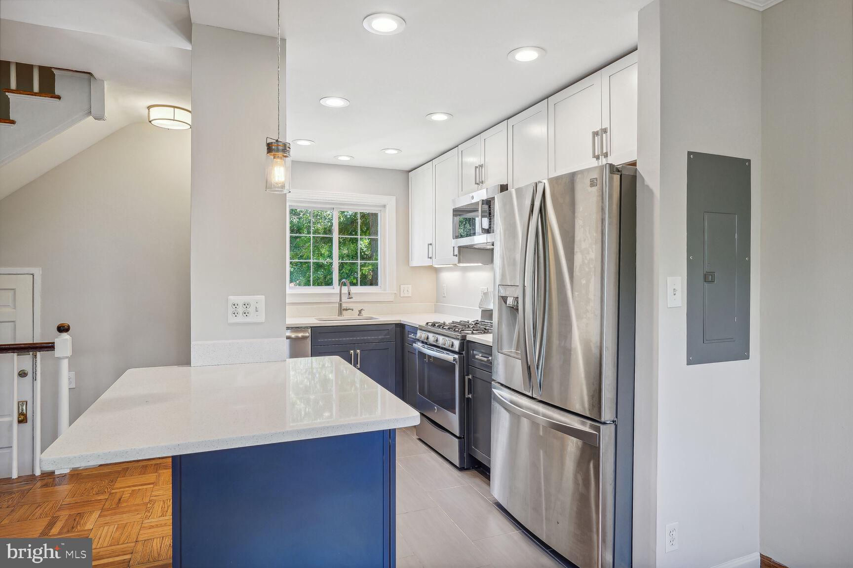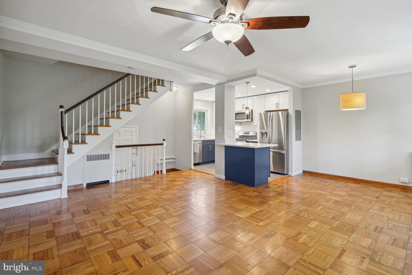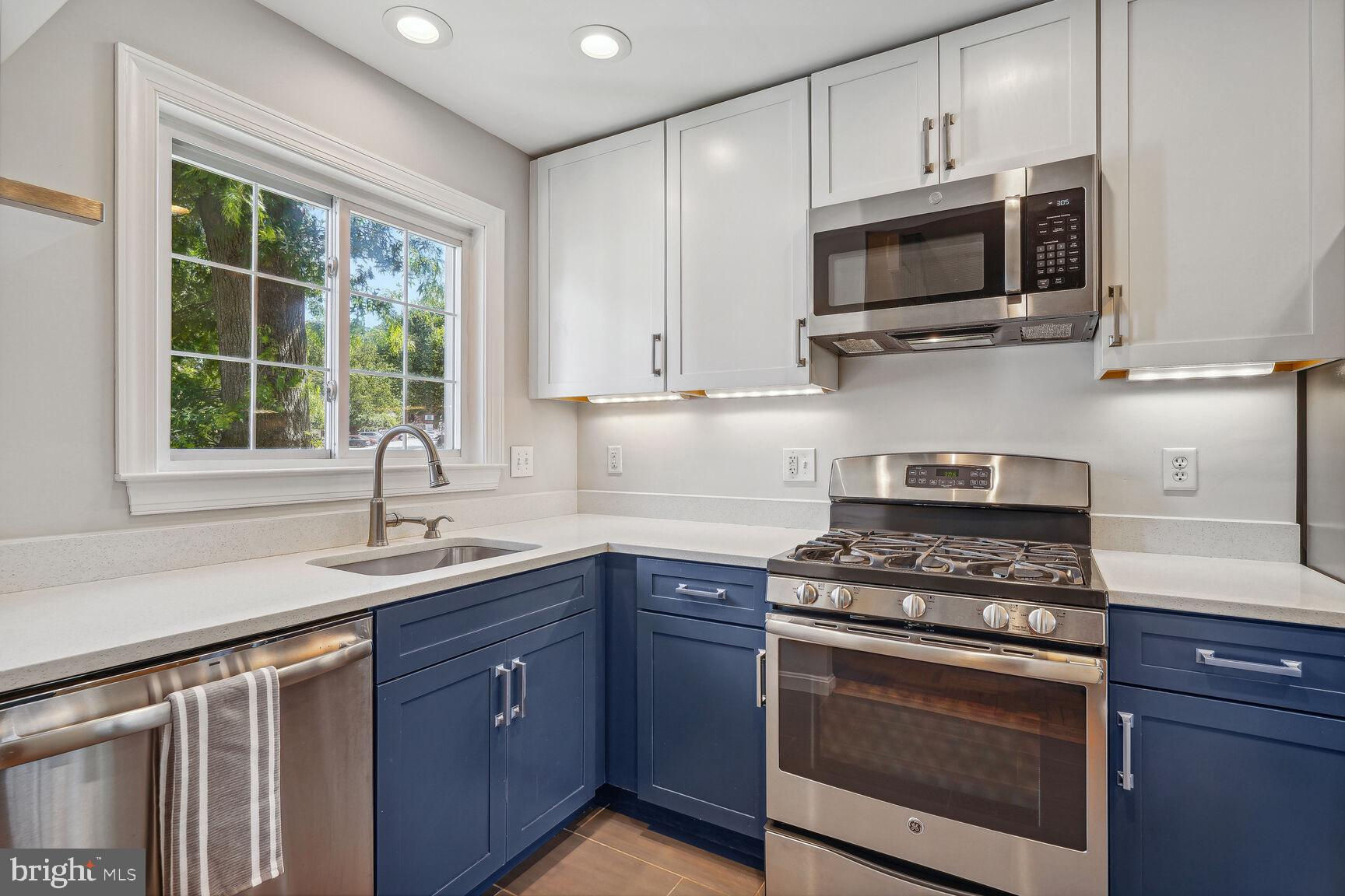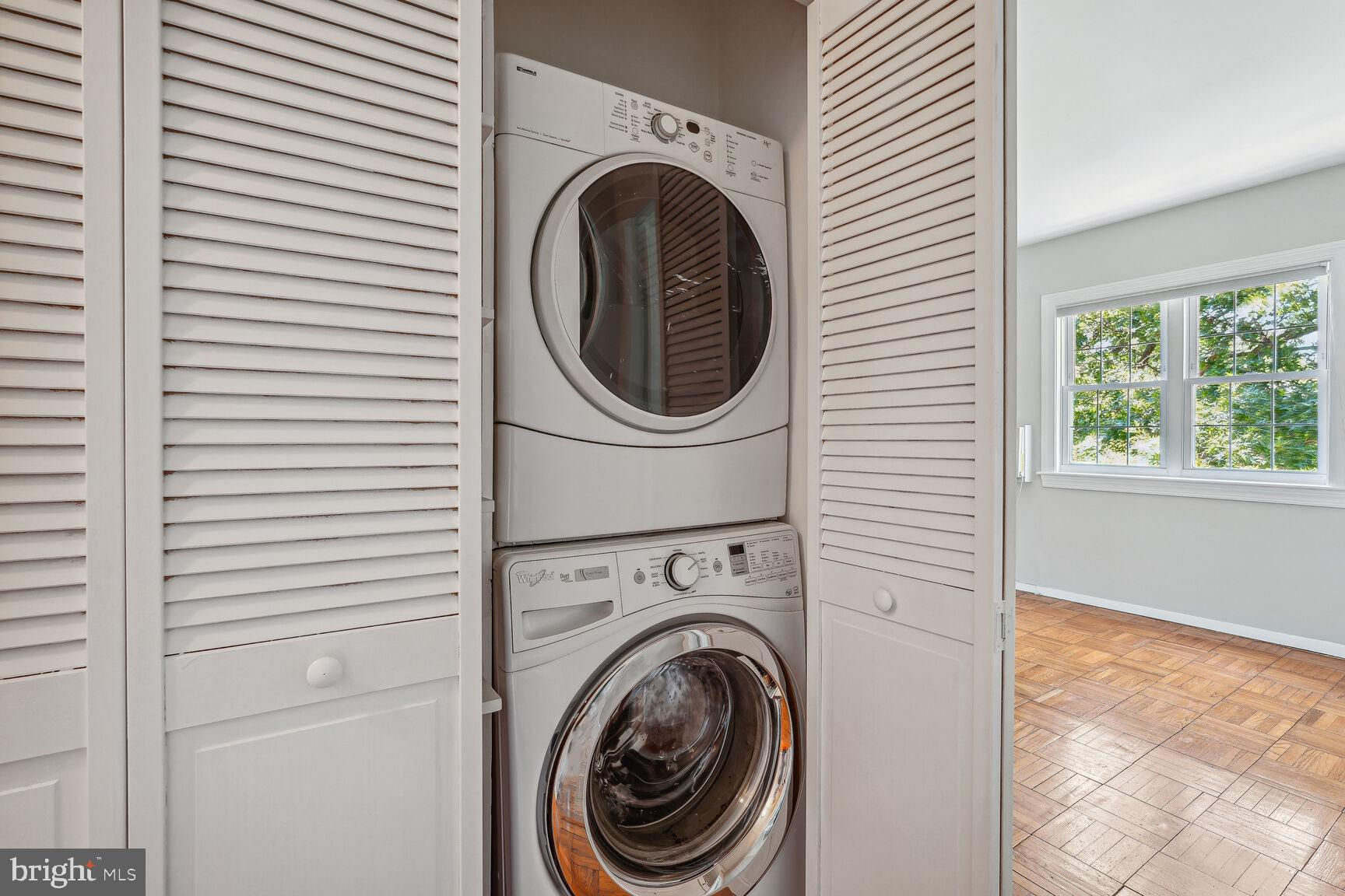 Welcome Home to Parkfairfax! This renovated two level brick townhome condo is sited at the end of a quiet cul-de-sac and ideally located just a short walk from Shirlington's library, movie theater, grocery store, and restaurants - just use the pedestrian footbridge. The thoughtfully designed and renovated kitchen includes stainless steel appliances (gas cooking!), quartz countertops, an island and KraftMaid wood cabinetry with soft close drawers. Upstairs, you will find two bedrooms with beautiful treed views, a full hall bathroom and a stackable washer & dryer with shelving space. The attic level offers lots of storage. The amenity rich association includes community pools, tennis courts, pickleball courts, volleyball courts, a basketball court and a gym/fitness center. This home is sited on one of the best streets in Parkfairfax - a quiet cul-de-sac with ample parking. The nearby bus stop takes you to downtown Alexandria or the Pentagon metro. The home is freshly painted throughout with Benjamin Moore’s Revere Pewter - ready for your arrival!