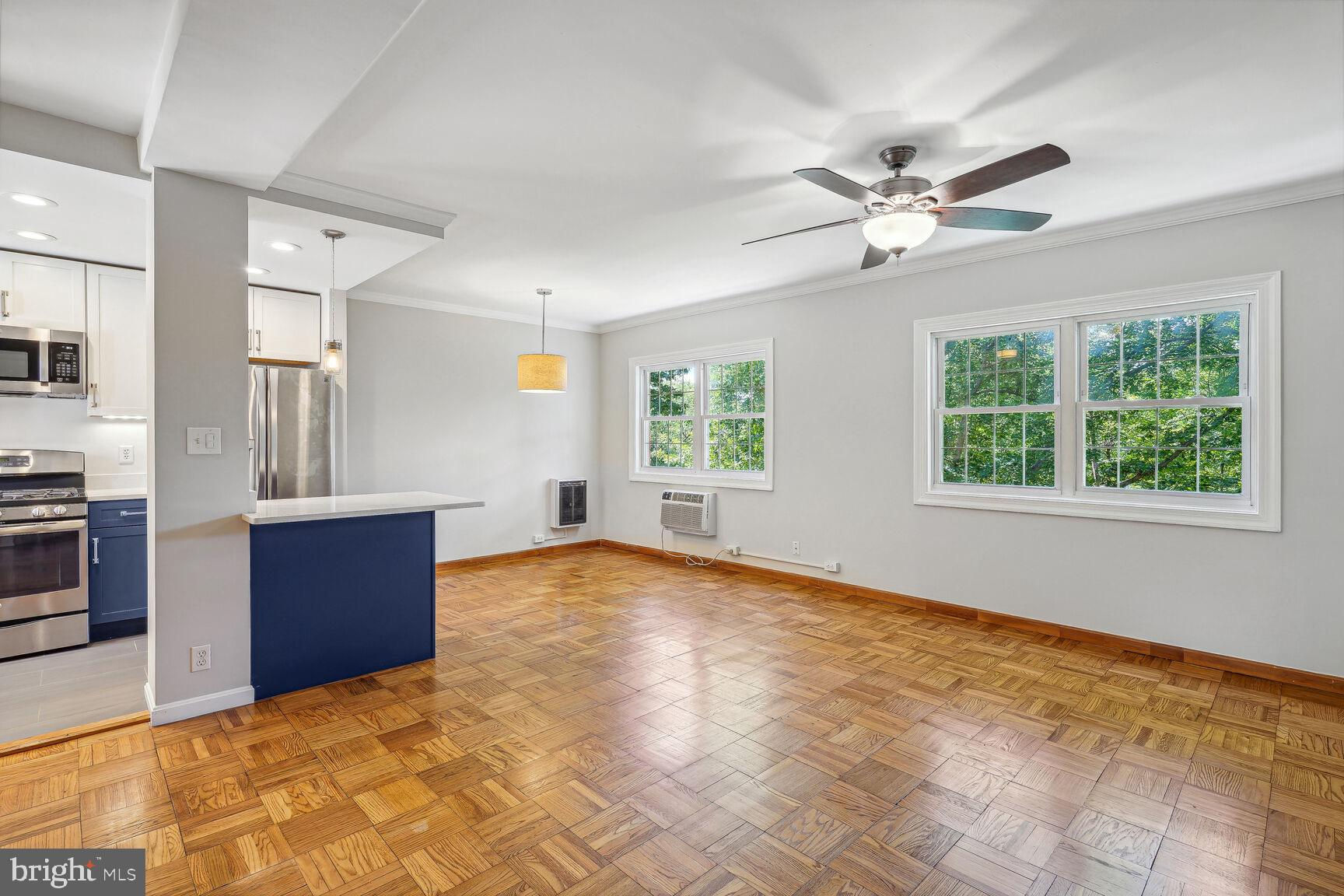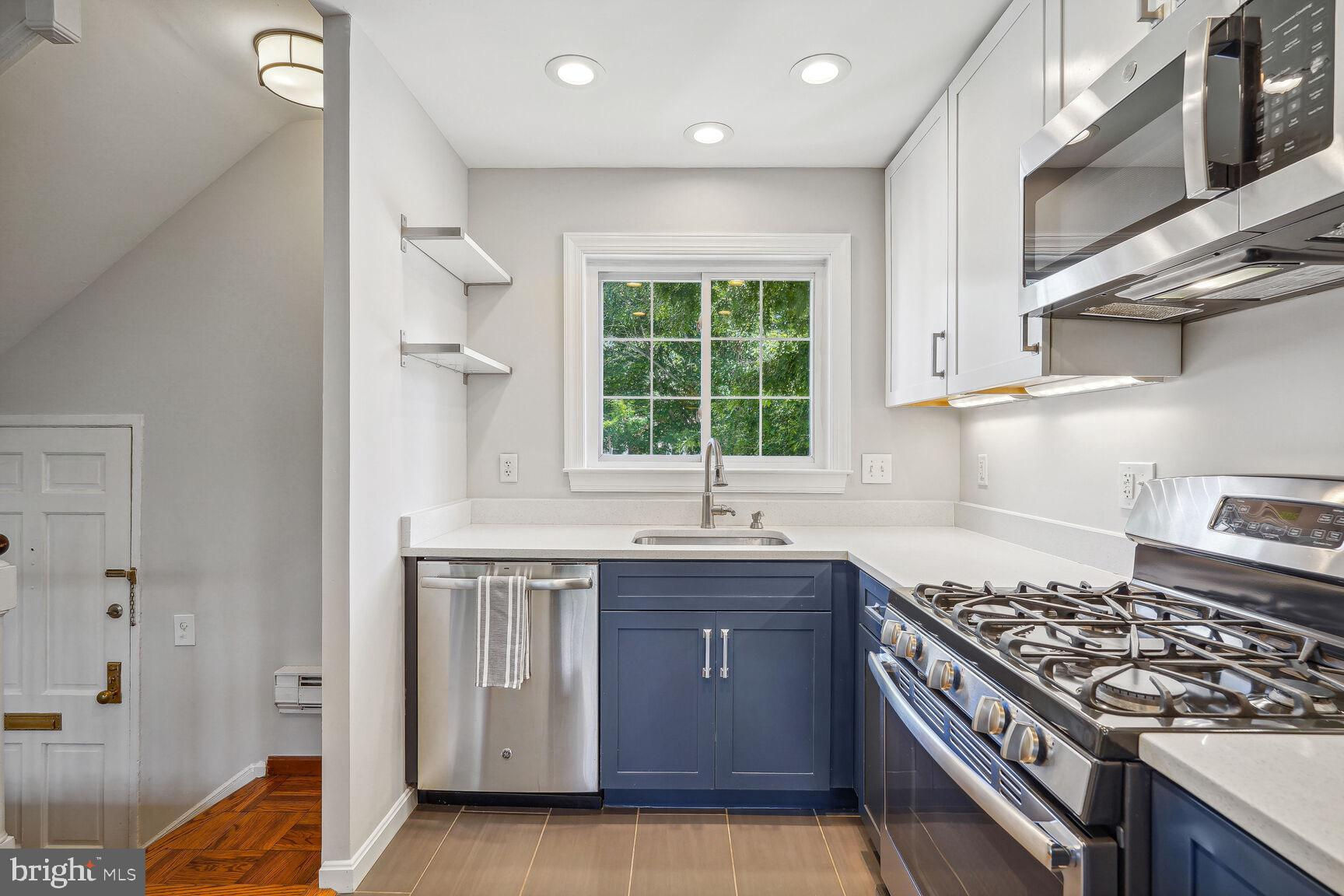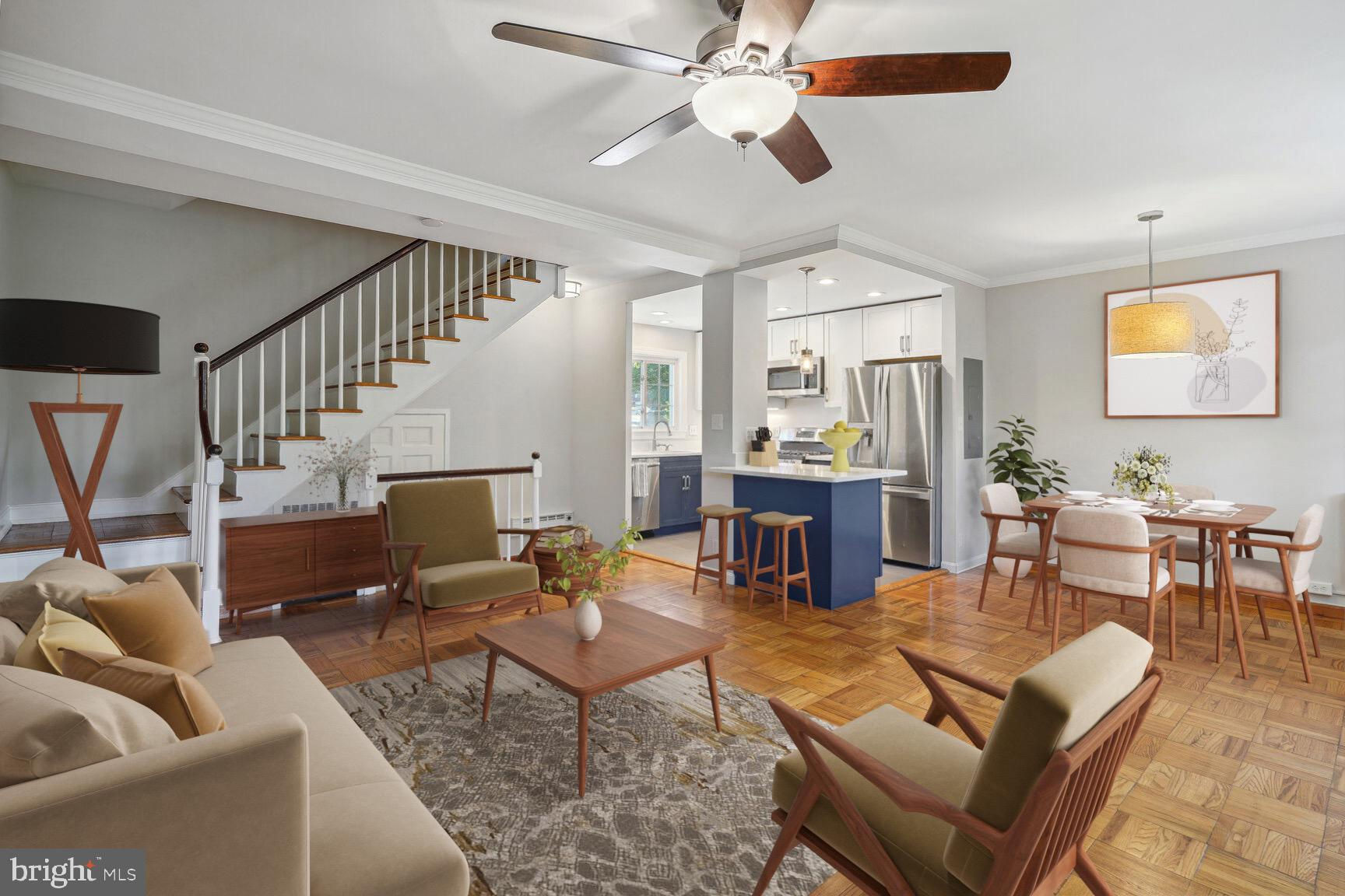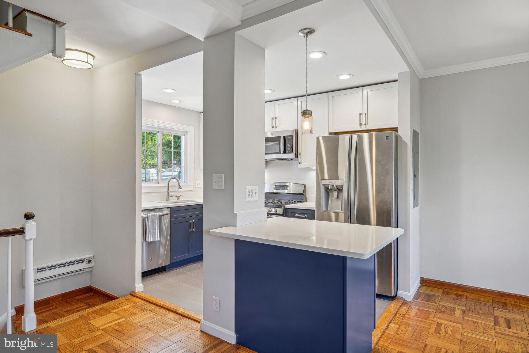 Welcome Home to Parkfairfax! This renovated two level brick townhome condo is sited at the end of a quiet cul-de-sac and ideally located just a short walk from Shirlington's library, movie theater, grocery store, and restaurants - just use the pedestrian footbridge. The thoughtfully designed and renovated kitchen includes stainless steel appliances (gas cooking!), quartz countertops, an island and KraftMaid wood cabinetry with soft close drawers. Upstairs, you will find two bedrooms with beautiful treed views, a full hall bathroom and a stackable washer & dryer with shelving space. The attic level offers lots of storage. The amenity rich association includes community pools, tennis courts, pickleball courts, volleyball courts, a basketball court and a gym/fitness center. This home is sited on one of the best streets in Parkfairfax - a quiet cul-de-sac with ample parking. The nearby bus stop takes you to downtown Alexandria or the Pentagon metro. The home is freshly painted throughout with Benjamin Moore’s Revere Pewter - ready for your arrival!