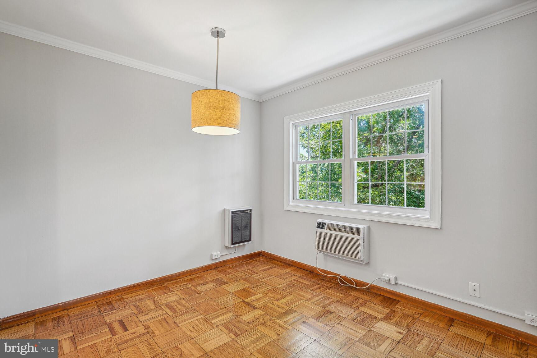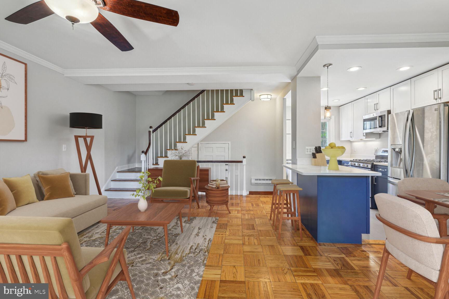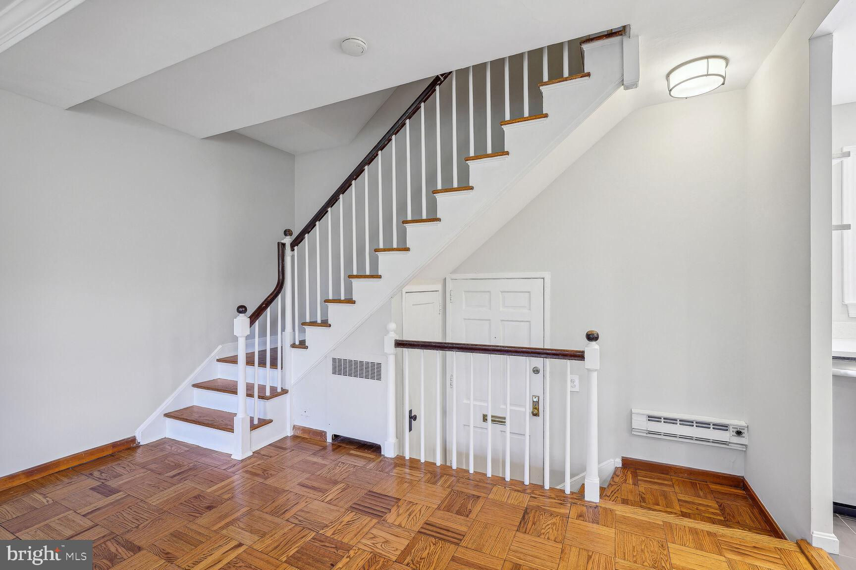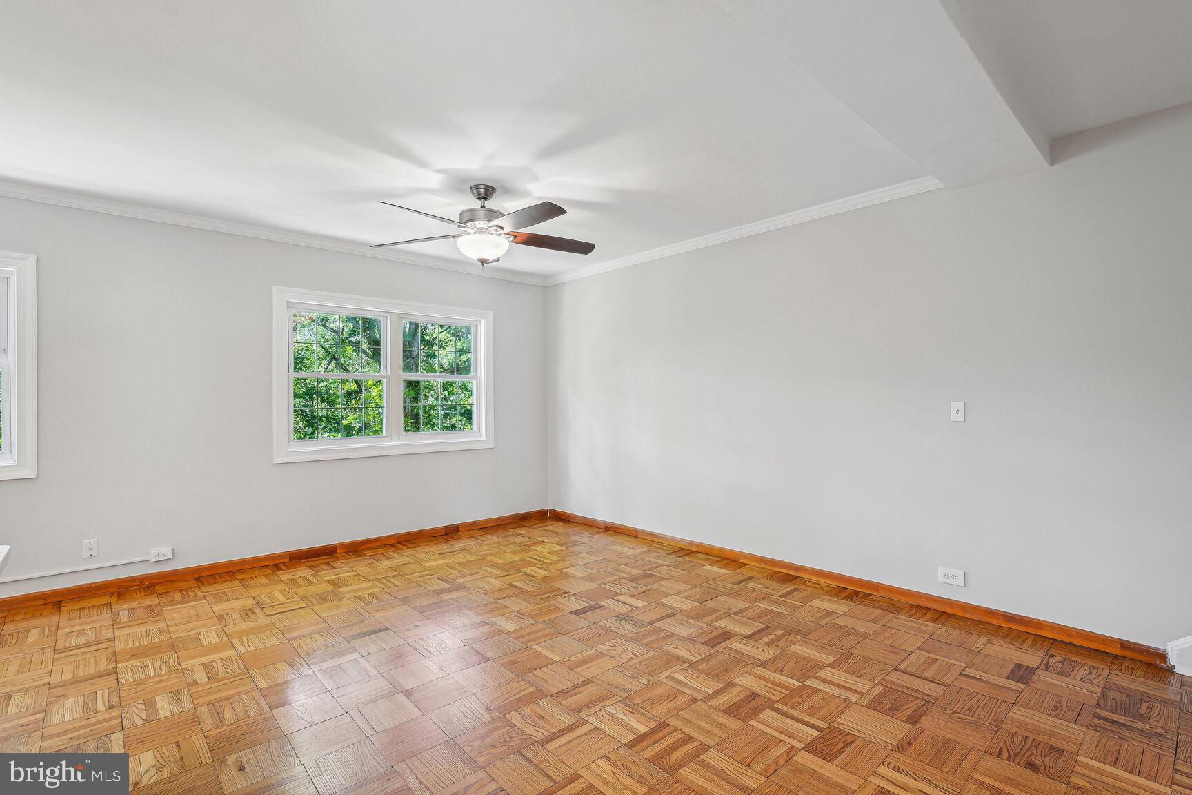 Welcome Home to Parkfairfax! This renovated two level brick townhome condo is sited at the end of a quiet cul-de-sac and ideally located just a short walk from Shirlington's library, movie theater, grocery store, and restaurants - just use the pedestrian footbridge. The thoughtfully designed and renovated kitchen includes stainless steel appliances (gas cooking!), quartz countertops, an island and KraftMaid wood cabinetry with soft close drawers. Upstairs, you will find two bedrooms with beautiful treed views, a full hall bathroom and a stackable washer & dryer with shelving space. The attic level offers lots of storage. The amenity rich association includes community pools, tennis courts, pickleball courts, volleyball courts, a basketball court and a gym/fitness center. This home is sited on one of the best streets in Parkfairfax - a quiet cul-de-sac with ample parking. The nearby bus stop takes you to downtown Alexandria or the Pentagon metro. The home is freshly painted throughout with Benjamin Moore’s Revere Pewter - ready for your arrival!
