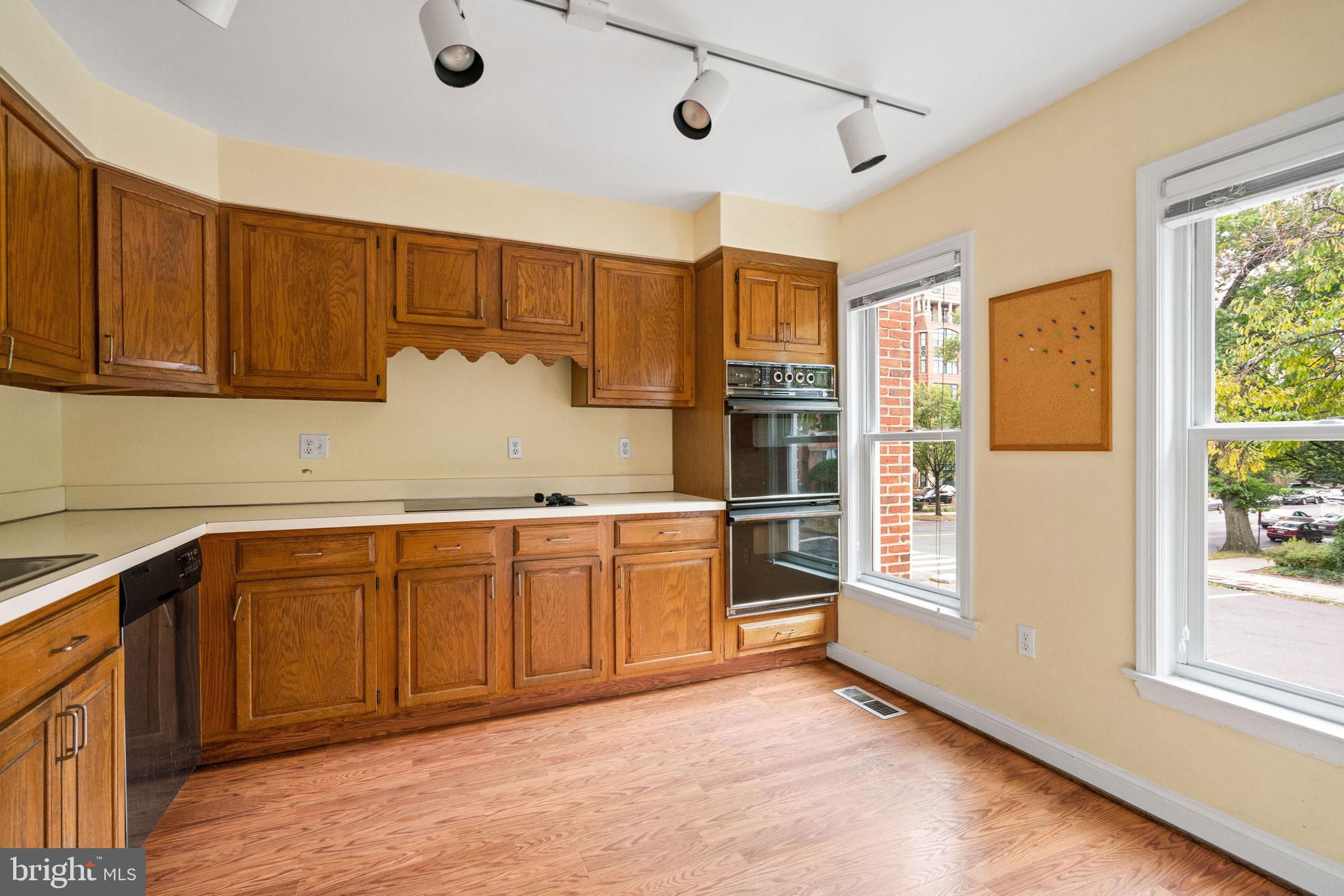The corner of Harrison and Connecticut is where city convenience meets neighborhood charm. This townhome delivers the rare trifecta: garage + driveway parking, a layout that feels “just right,” and the chance to build instant equity with your own updates. Step inside and you will see why this floorplan has stood the test of time. The entry level offers a true foyer, family room, laundry, and direct garage access. Upstairs, the living room vibes are as gracious as expected: high ceilings, fireplace with built-ins, picture-frame moulding. Doors open to a fenced garden and slate patio, perfect for dinner parties or morning coffee. The dining room, eat-in kitchen, and a powder room complete this main level. Two sun-splashed en suite bedrooms are above, each with oversized closets; along with a pull-down attic for even more storage. And the location? Tucked in a tidy cluster of townhomes just off the Connecticut Avenue corridor, you will stroll to Politics & Prose, Comet Ping Pong, Buck’s Fishing & Camping, Little Red Fox, and Lafayette Park. Rock Creek Park trails are close by, and Metro makes downtown DC and Bethesda a straight shot. This is opportunity wrapped in everyday livability. Move in now, reimagine over time, and watch the value grow. It is a house that just works.