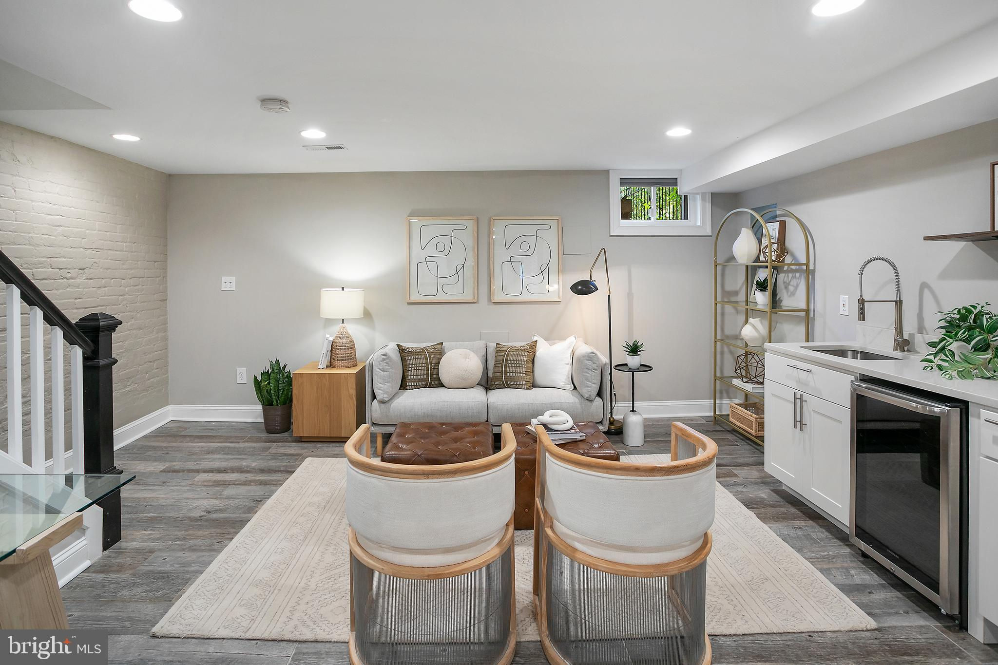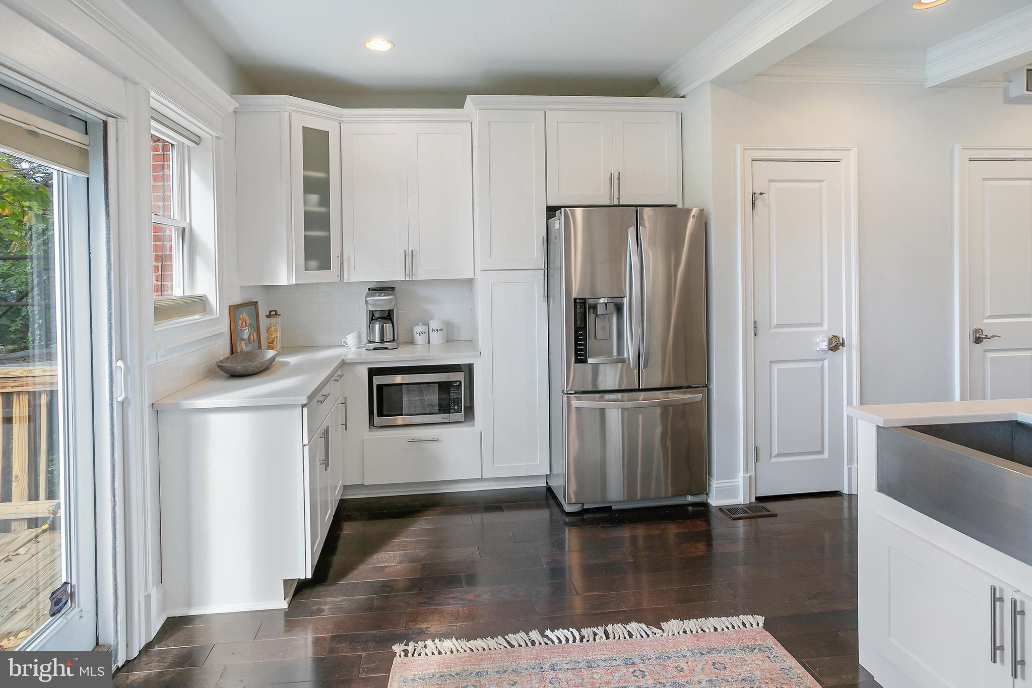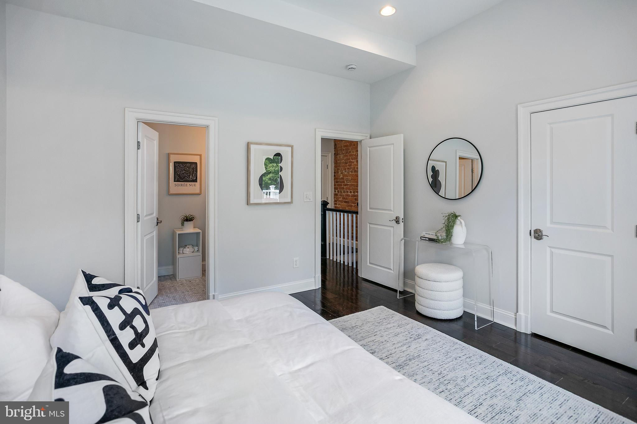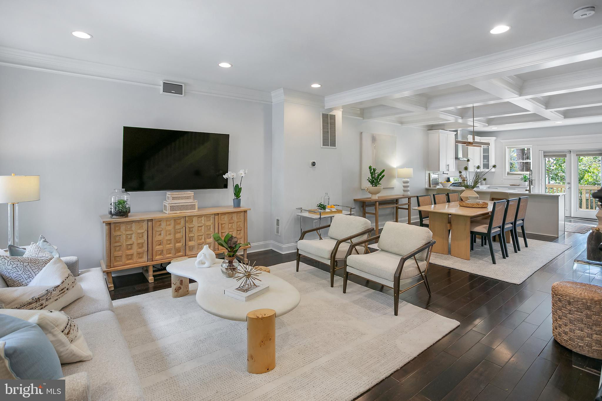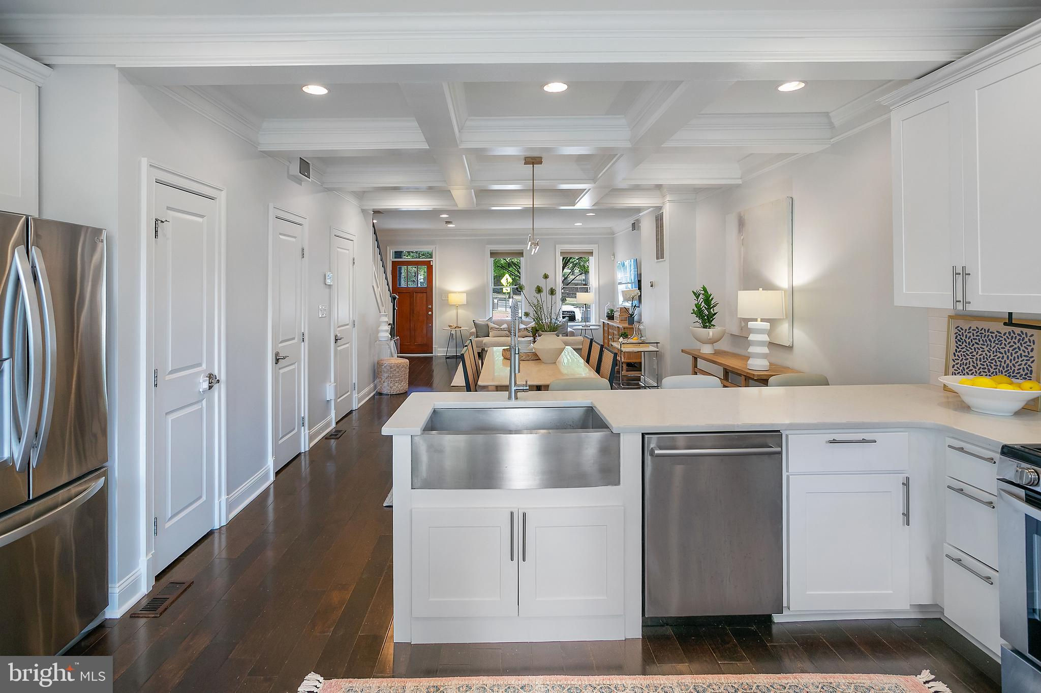 Located just moments from the heart of Petworth, this spacious and beautifully updated home offers a rare combination of width, functionality, and refined design. Fully renovated in 2015, the residence balances timeless details with modern convenience. The main level features an open layout ideal for everyday living and entertaining, with hardwood floors throughout and an exposed brick accent wall adding warmth and character. The generous dining area is highlighted by coffered ceilings, while the large kitchen includes a peninsula with bar seating, abundant storage, stainless steel appliances, a natural gas range with an externally vented hood, and direct access to a sizable rear deck with a gas hookup for grilling. Upstairs, the primary suite impresses with double-height ceilings, a private outdoor terrace, and an en suite bath, along with serene green views over the historic Old Soldiers Home golf course. Two additional bedrooms, a full bathroom with a tub, and a conveniently located washer and dryer complete the upper level. The lower level offers exceptional versatility with tile floors, a wet bar, a full bath, and a guest bedroom; ideal as a recreation, play, or media space. Outside, the large backyard provides room for play, entertaining, or quiet relaxation. A detached garage adds practicality, and the home’s position affords additional green views of the golf course. Perfectly situated a short walk to the Petworth Metro station, Safeway, and local dining, this home delivers the best of neighborhood living with easy access to the city.