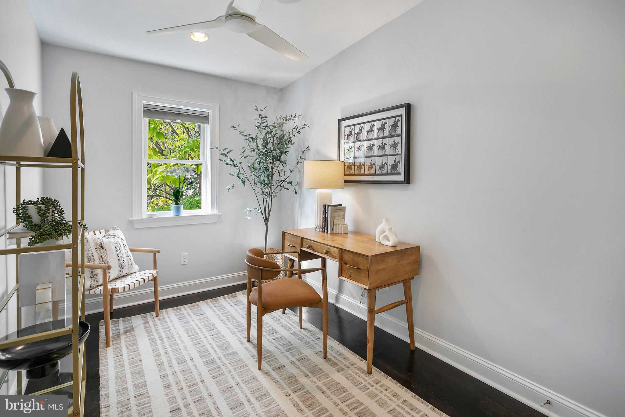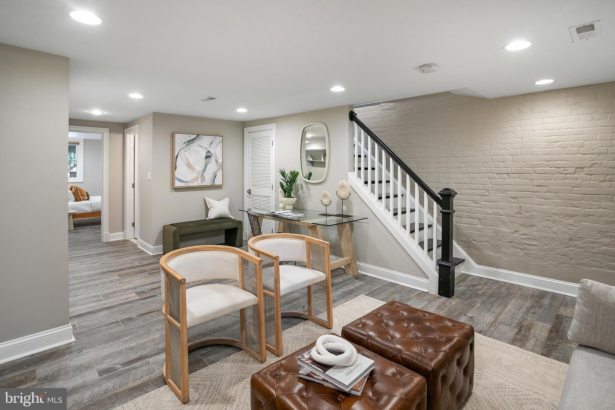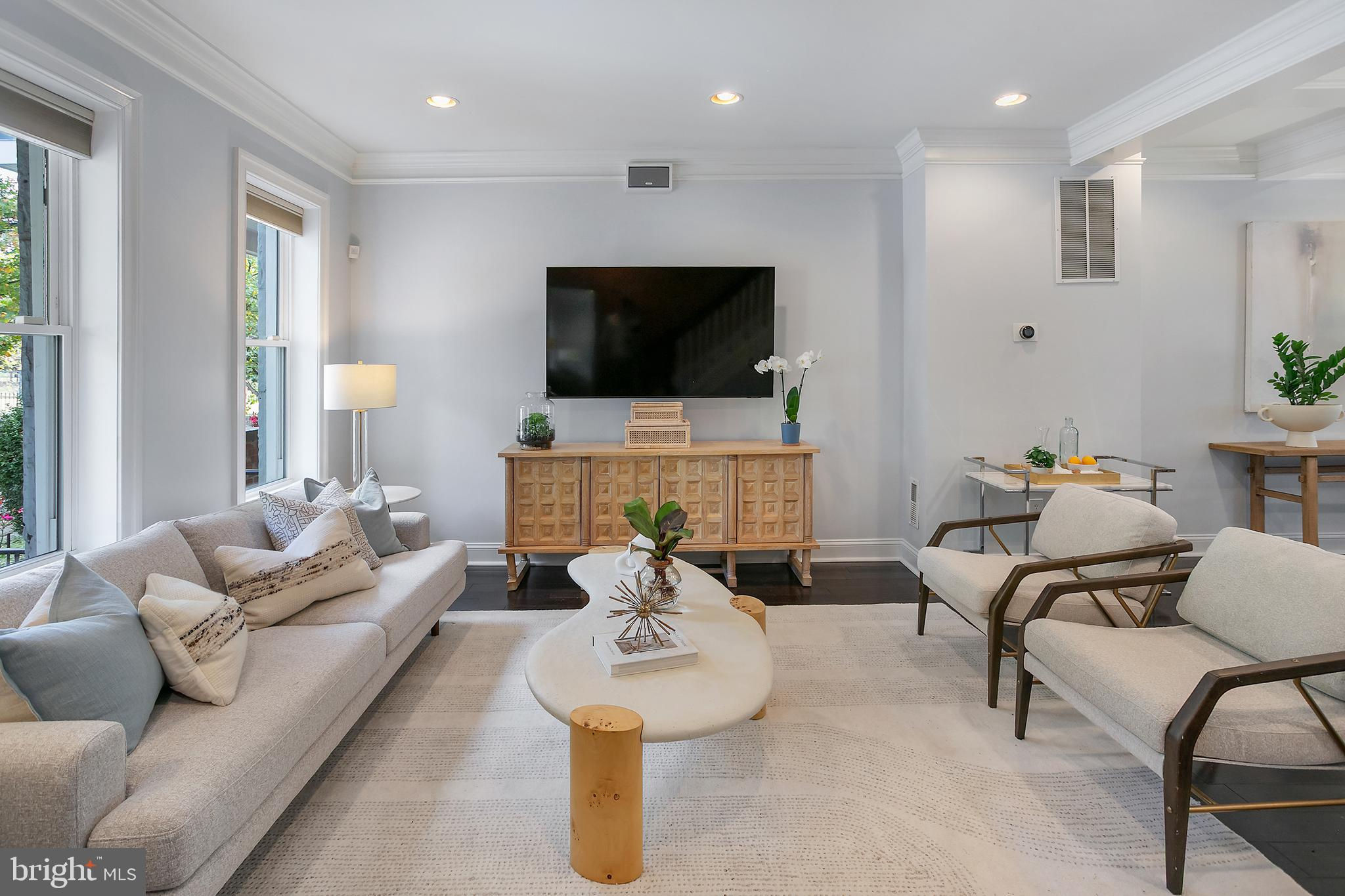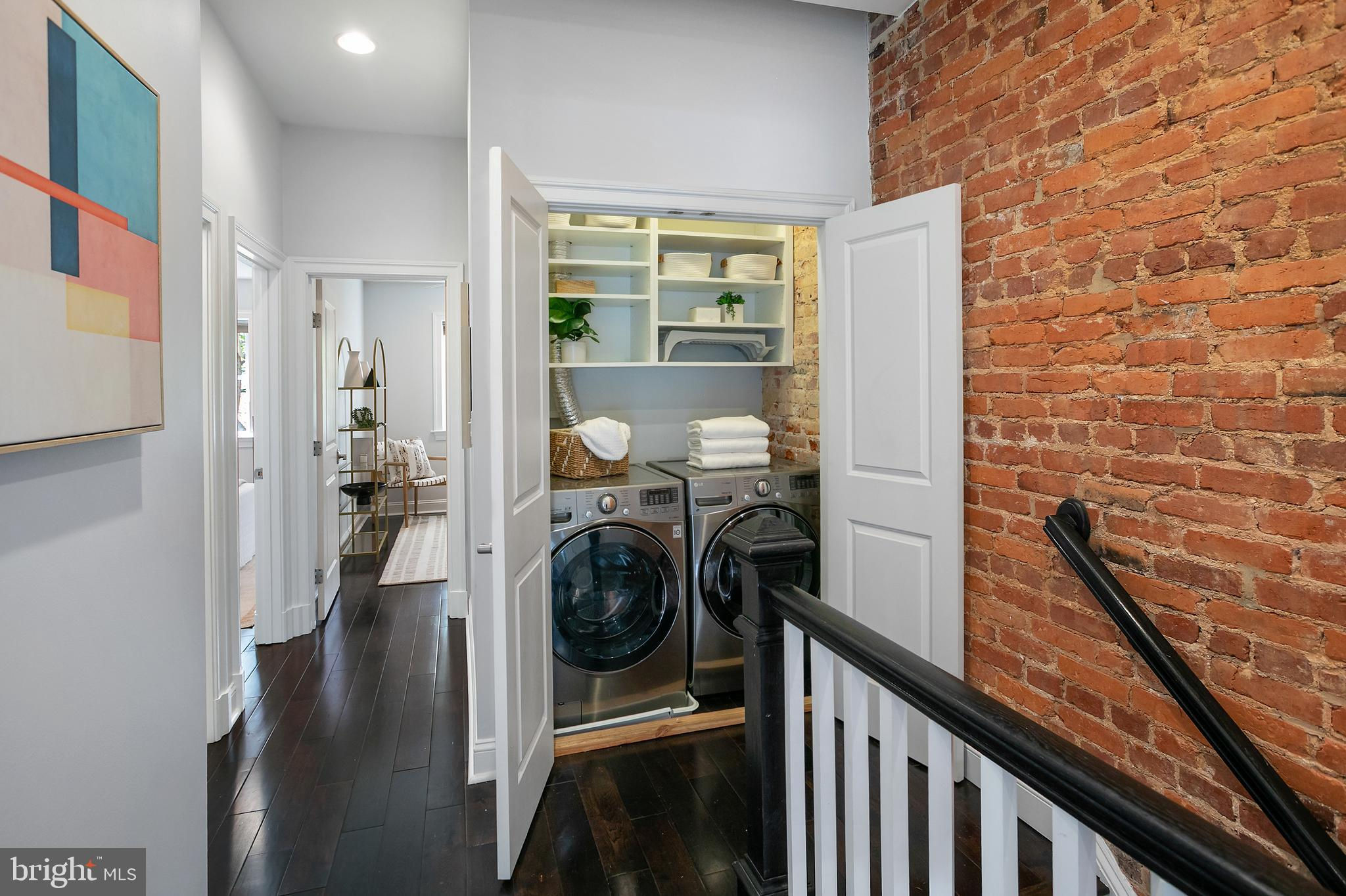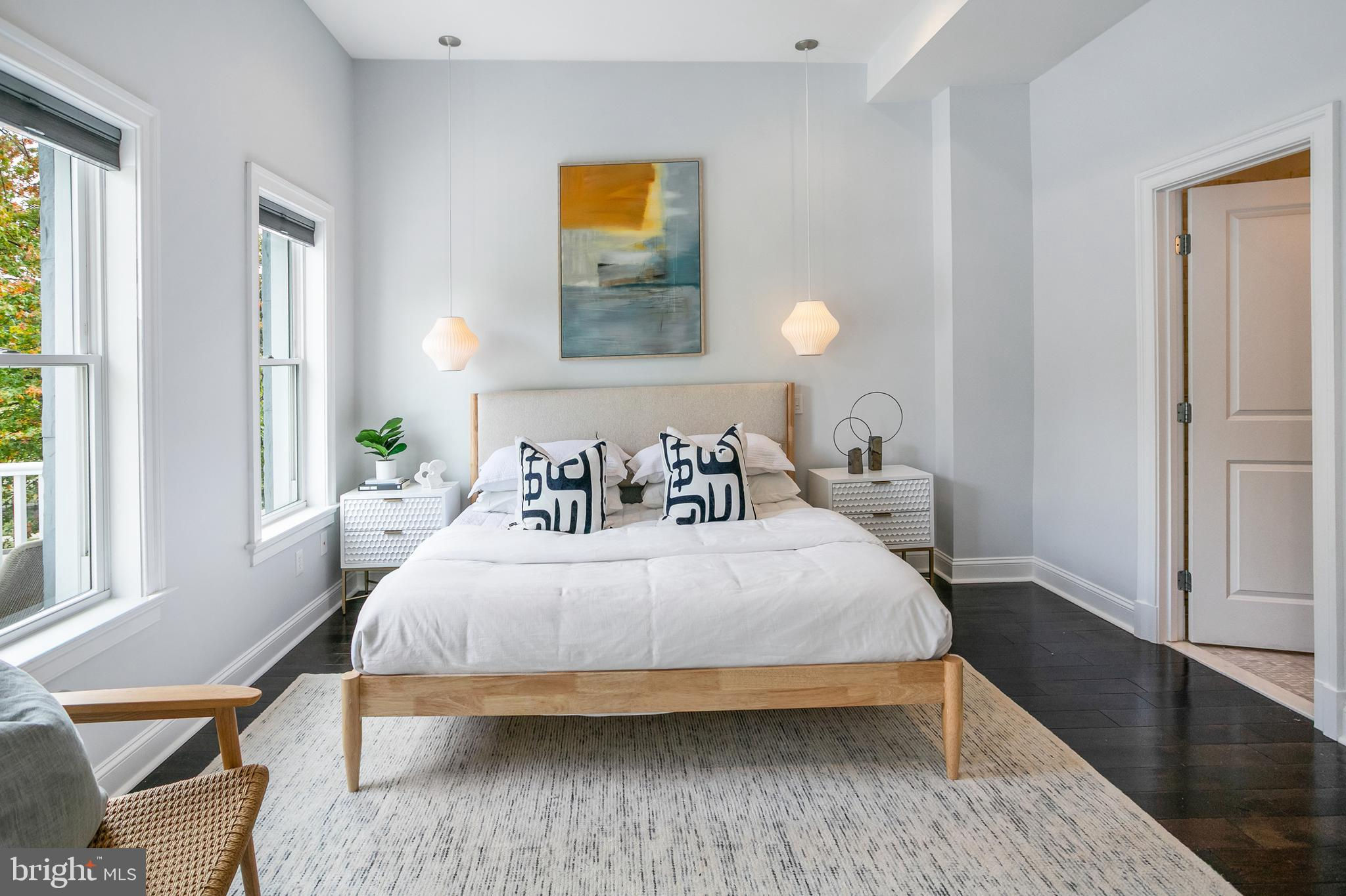 Located just moments from the heart of Petworth, this spacious and beautifully updated home offers a rare combination of width, functionality, and refined design. Fully renovated in 2015, the residence balances timeless details with modern convenience. The main level features an open layout ideal for everyday living and entertaining, with hardwood floors throughout and an exposed brick accent wall adding warmth and character. The generous dining area is highlighted by coffered ceilings, while the large kitchen includes a peninsula with bar seating, abundant storage, stainless steel appliances, a natural gas range with an externally vented hood, and direct access to a sizable rear deck with a gas hookup for grilling. Upstairs, the primary suite impresses with double-height ceilings, a private outdoor terrace, and an en suite bath, along with serene green views over the historic Old Soldiers Home golf course. Two additional bedrooms, a full bathroom with a tub, and a conveniently located washer and dryer complete the upper level. The lower level offers exceptional versatility with tile floors, a wet bar, a full bath, and a guest bedroom; ideal as a recreation, play, or media space. Outside, the large backyard provides room for play, entertaining, or quiet relaxation. A detached garage adds practicality, and the home’s position affords additional green views of the golf course. Perfectly situated a short walk to the Petworth Metro station, Safeway, and local dining, this home delivers the best of neighborhood living with easy access to the city.