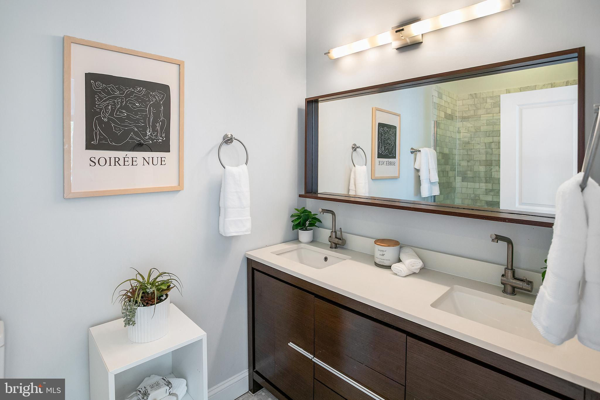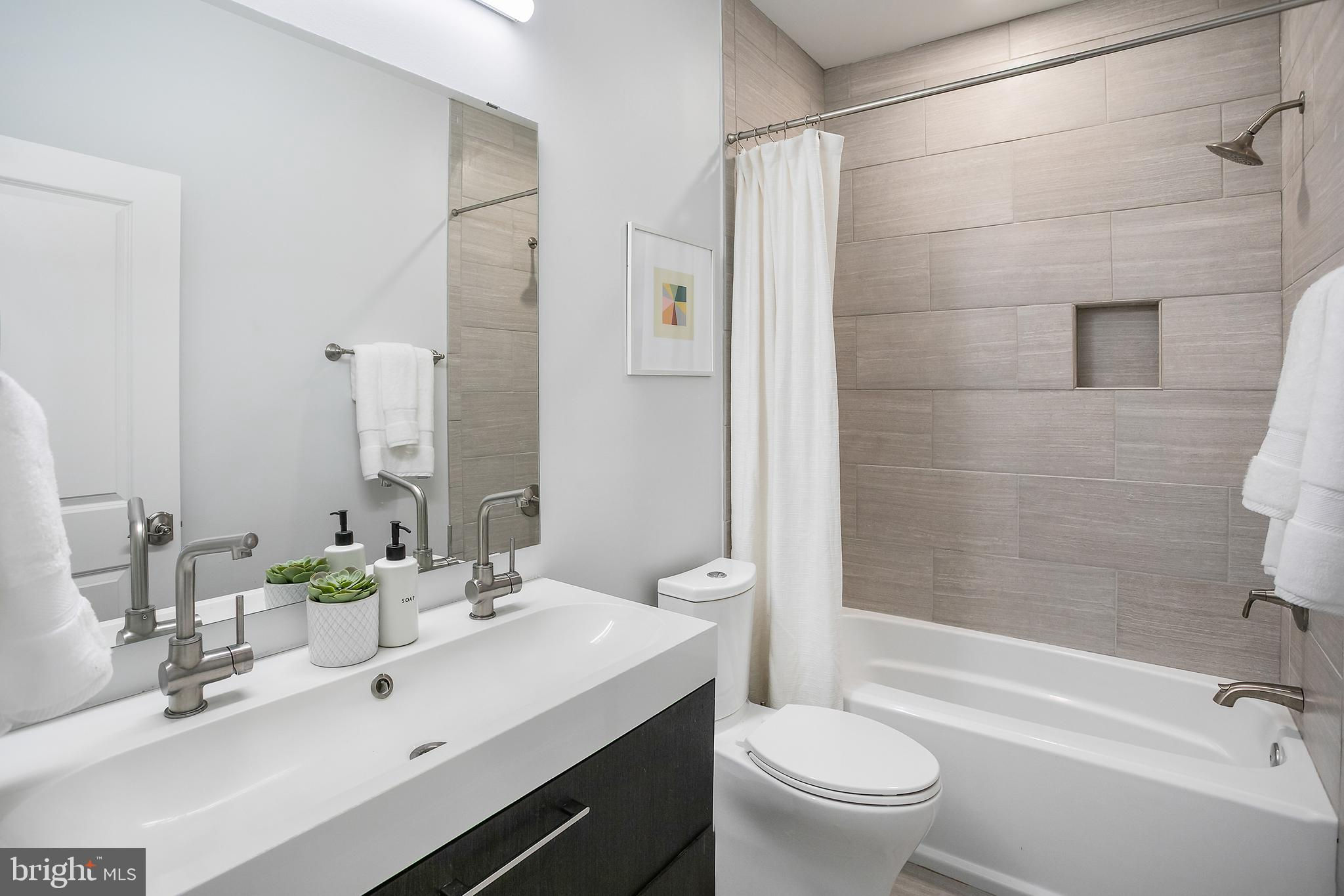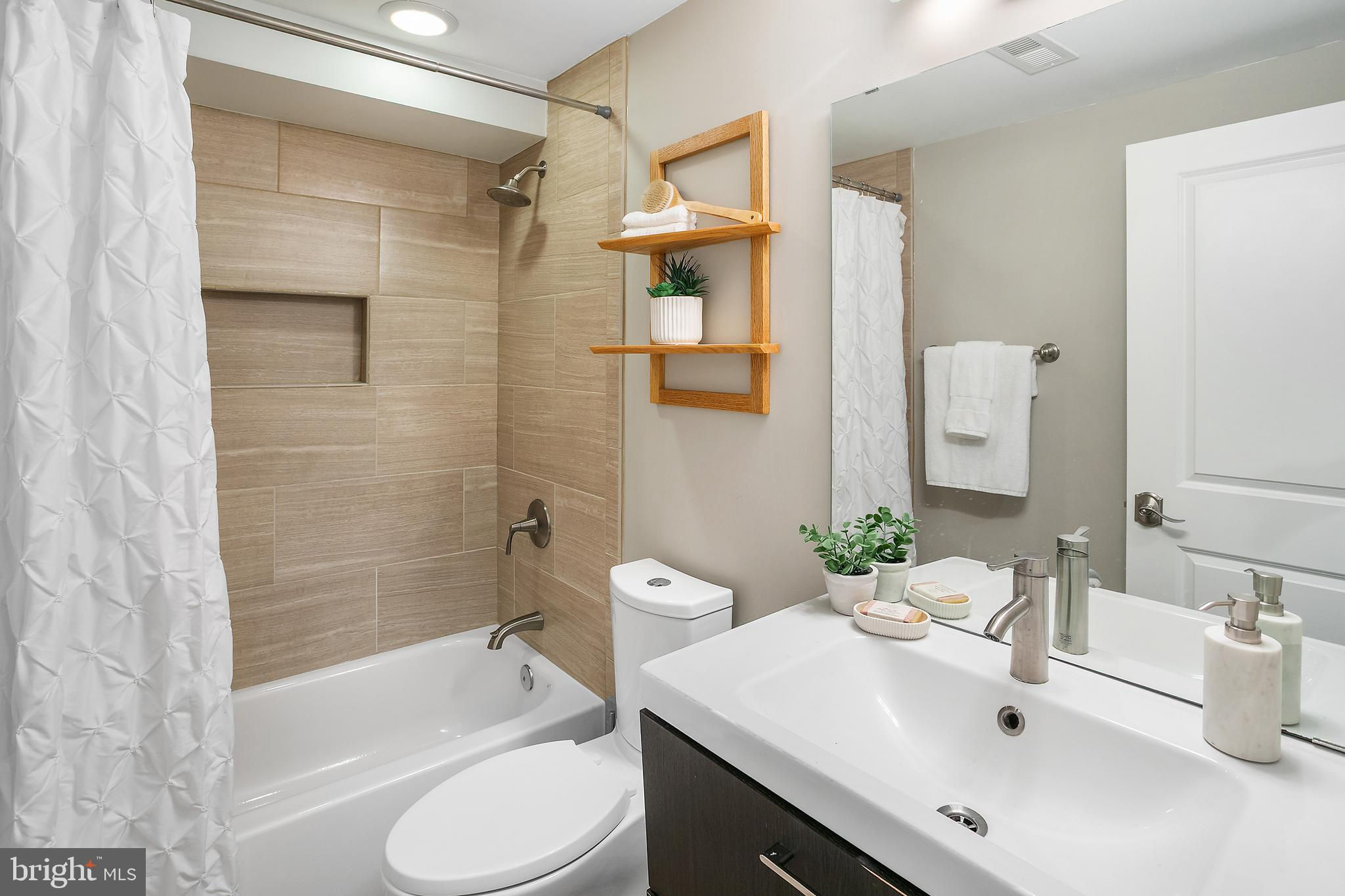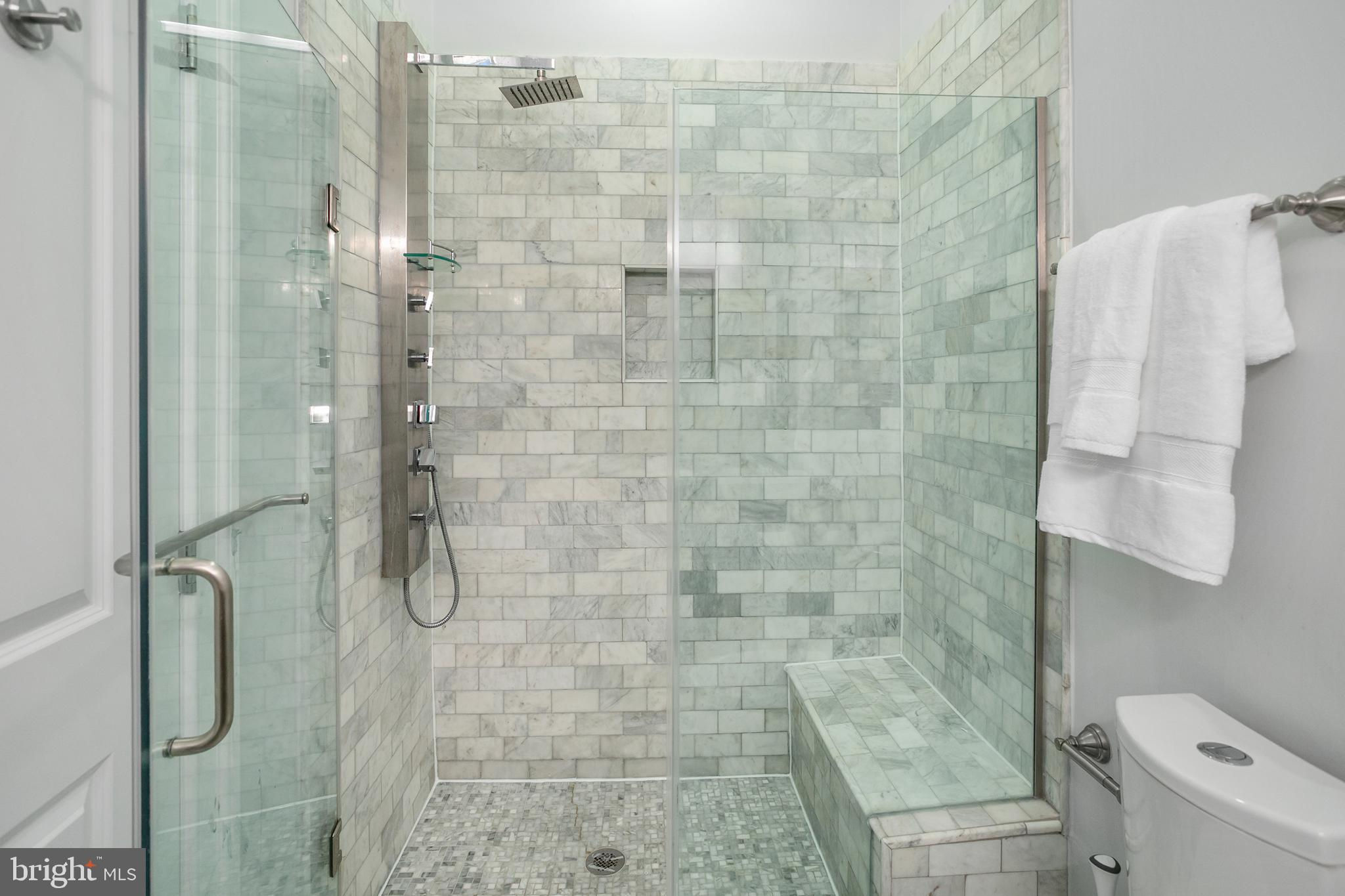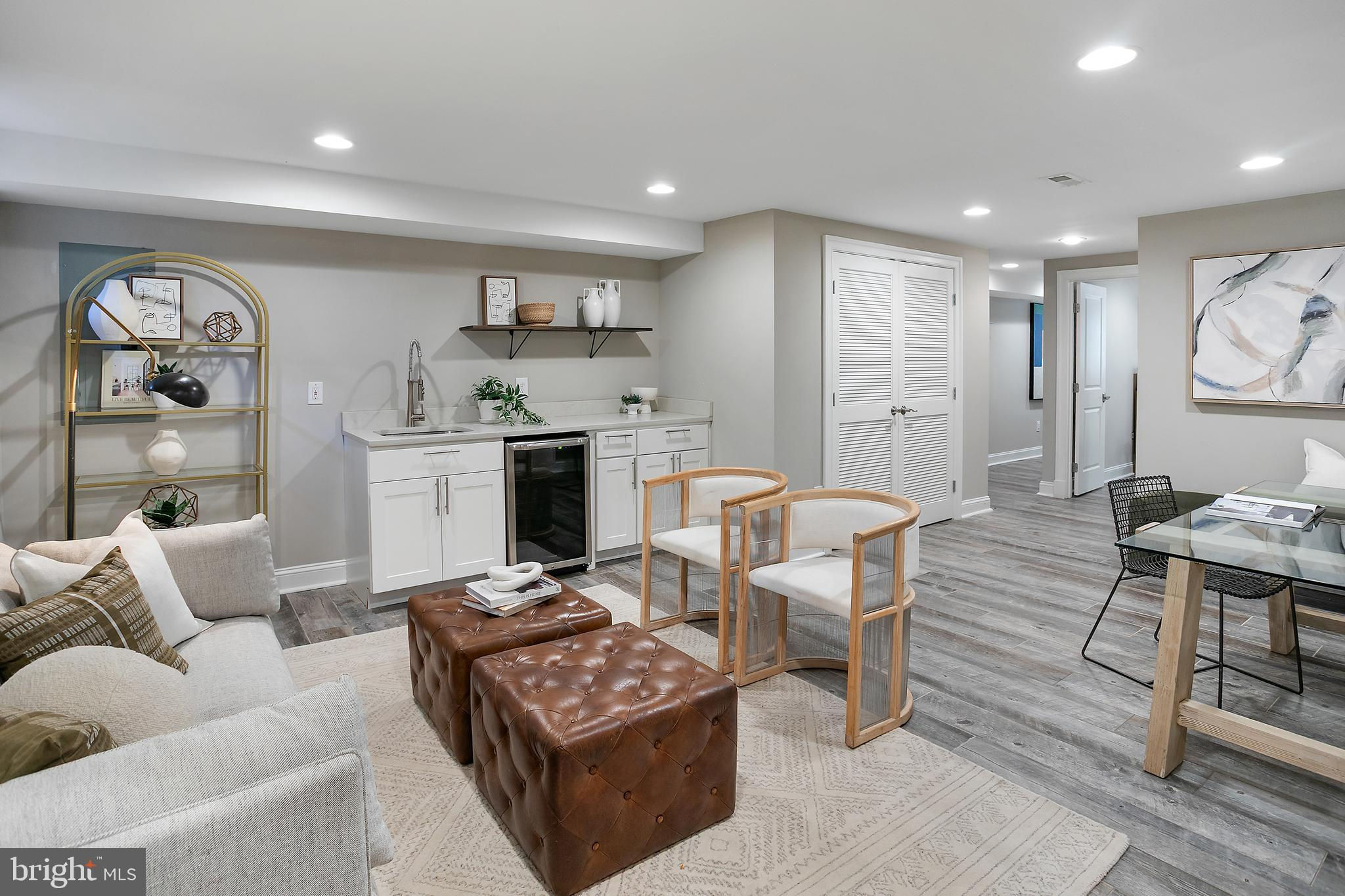 Located just moments from the heart of Petworth, this spacious and beautifully updated home offers a rare combination of width, functionality, and refined design. Fully renovated in 2015, the residence balances timeless details with modern convenience. The main level features an open layout ideal for everyday living and entertaining, with hardwood floors throughout and an exposed brick accent wall adding warmth and character. The generous dining area is highlighted by coffered ceilings, while the large kitchen includes a peninsula with bar seating, abundant storage, stainless steel appliances, a natural gas range with an externally vented hood, and direct access to a sizable rear deck with a gas hookup for grilling. Upstairs, the primary suite impresses with double-height ceilings, a private outdoor terrace, and an en suite bath, along with serene green views over the historic Old Soldiers Home golf course. Two additional bedrooms, a full bathroom with a tub, and a conveniently located washer and dryer complete the upper level. The lower level offers exceptional versatility with tile floors, a wet bar, a full bath, and a guest bedroom; ideal as a recreation, play, or media space. Outside, the large backyard provides room for play, entertaining, or quiet relaxation. A detached garage adds practicality, and the home’s position affords additional green views of the golf course. Perfectly situated a short walk to the Petworth Metro station, Safeway, and local dining, this home delivers the best of neighborhood living with easy access to the city.