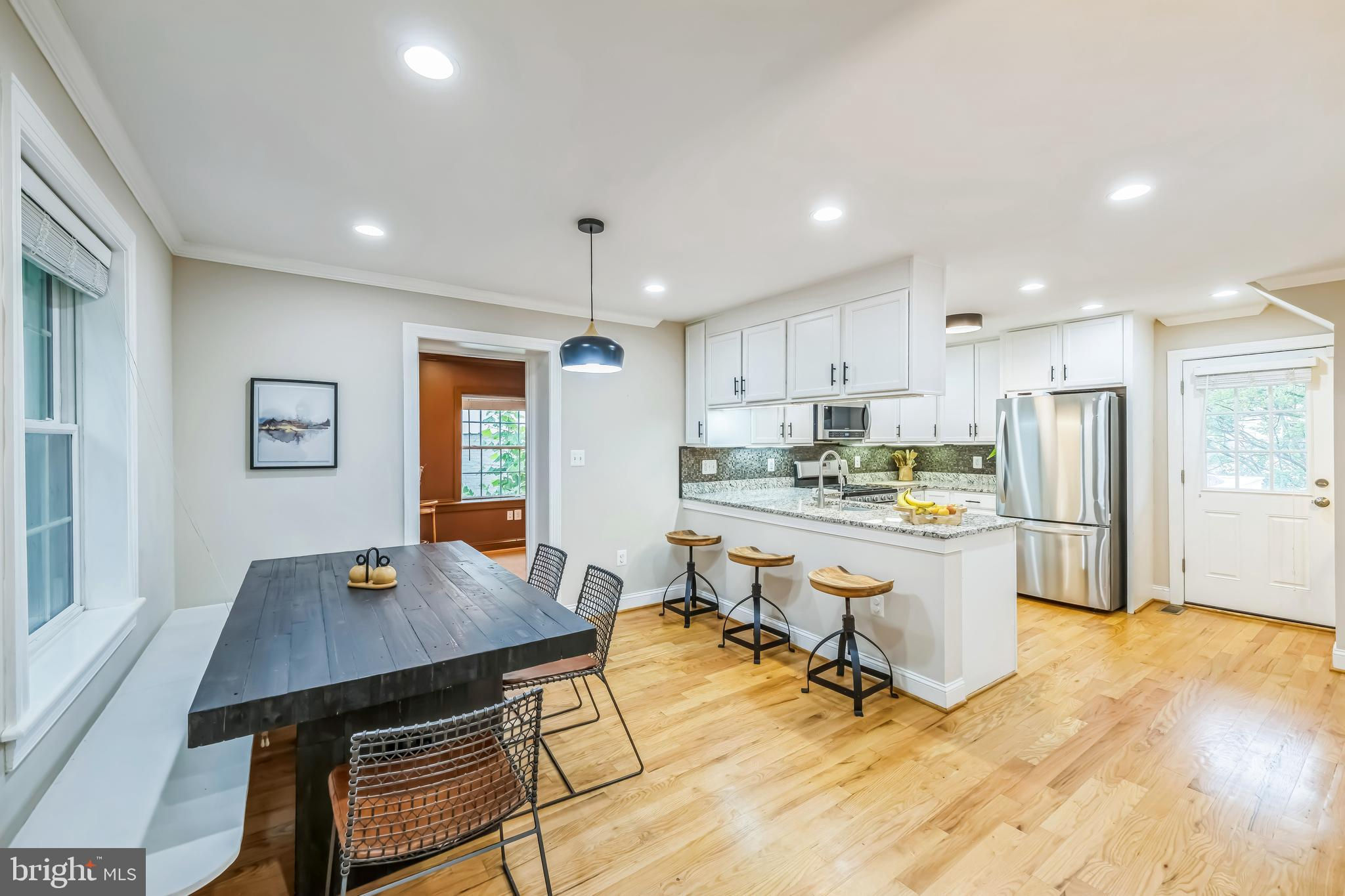 This charming 3BR home with fenced backyard and idyllic surrounding outdoor space, is located in the increasingly sought after Penn Branch/Hillcrest neighborhood. Upon entering, you encounter an imminently liveable first floor complete with kitchen, dining area and living room. There is an easy flow connecting them all. This space will no doubt serve as the heart of the home where meals are prepared and then talked over. An additional ancillary room off of the kitchen, boasts abundant natural light and is perfect for a study, play area, or entertainment space. The kitchen opens to a lovely, spacious deck overlooking a fenced backyard ideal for children or pets. On the second floor, circling a small landing, you'll find 3 bedrooms and 2 full baths. The primary bedroom features an en suite bath and additional private sitting areas. Beautiful hardwood floors throughout. The fully finished basement includes an additional full bath and a door leading directly to the attached single car garage. In addition to the driveway, there is abundant on-street parking. Few spots in the city allow for such easy access to urban eateries, museums and landmarks, while also fostering a sense of peace and tranquility most often found in the midst of natural beauty. Peer out your front door and encounter stunning mature trees and ample green space in the form of federal parkland (Ft. DuPont Park), complete with running and walking trails within. This is a special home in an exceptional neighborhood. Could this be the start of your next chapter?