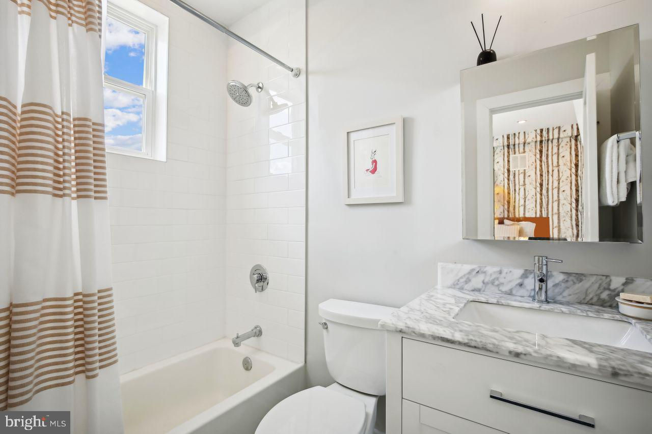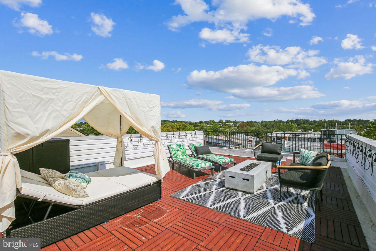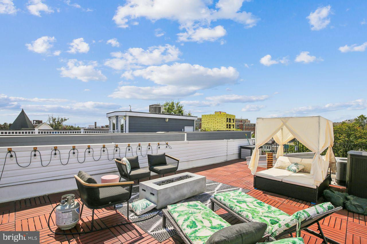 The Sky is the Limit with this Stylish and Spectacular PENTHOUSE! 3 Bedroom / 3 FB 2-level condo with unique designer finishes, assigned parking and a 40ft long PRIVATE ROOF DECK. Amazing DC city views. Lives like a single family house with an open floor plan that encourages gathering. 2018 re-do of entire building offers New Systems, Appliances, Roof, Fixtures, Windows, Kitchen and Baths! High-end finishings & designer accents and built-in with custom paint, wallpaper, and finishes throughout. The kitchen checks all of the boxes with white Shaker cabinets, classic subway tile backsplash, under-cabinet lighting, stainless steel appliances and a marble peninsula that both serves and seats. Tons of storage. French oak plank flooring and recessed lighting throughout, high ceilings, loads of windows & huge closets, Carrara marble baths and kitchen counters. All 3 bedrooms are ensuite. Primary has 2 closets – one a large walk-in. Primary bath has full tile walk-in shower, double marble vanity, high-end fixtures and storage. The stacked washer and dryer are on the upper level for added convenience. Enjoy two fabulous outdoor spaces, a Rear deck off sunny main-level bedroom/office and Massive Roof Deck. Modern rectangular firepit conveys. Large fenced yard and Parking. This 1,600 sq ft home is located on a very quiet tree-lined street only 2 blocks to Petworth Metro and 1.5 blocks to the Safeway! Highly sought-after Neighborhood. Perfect Location. Walk to Petworth Recreation Center, Petworth Meditation Garden & Triangle Parks! Top restaurants close by in addition to all types of shops and markets! Pets allowed. You must see it!