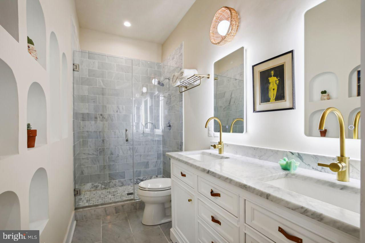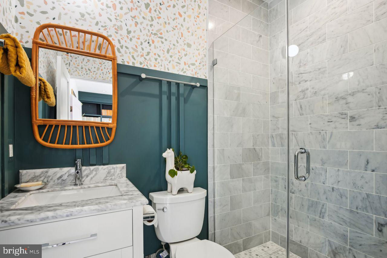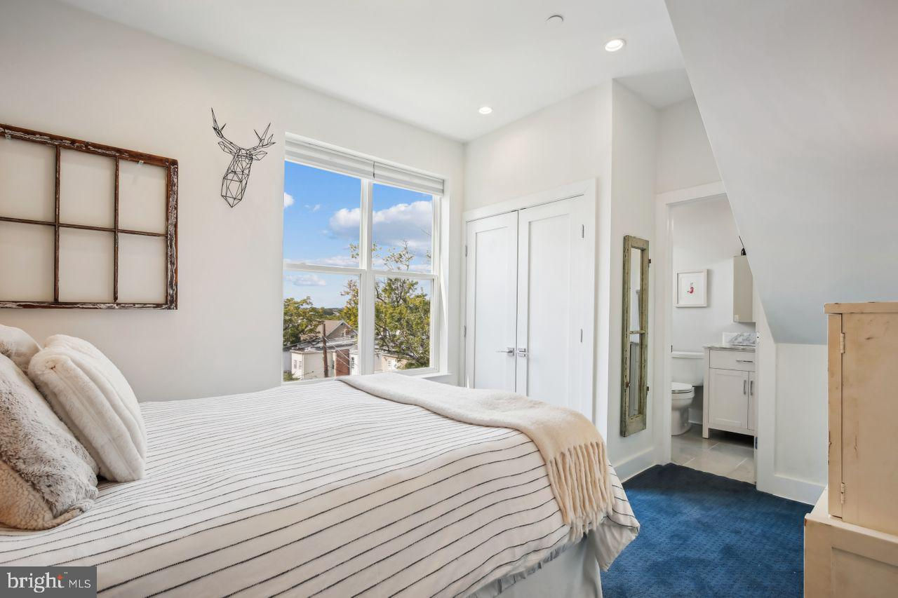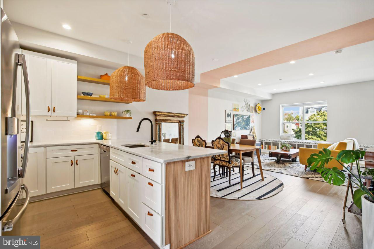 The Sky is the Limit with this Stylish and Spectacular PENTHOUSE! 3 Bedroom / 3 FB 2-level condo with unique designer finishes, assigned parking and a 40ft long PRIVATE ROOF DECK. Amazing DC city views. Lives like a single family house with an open floor plan that encourages gathering. 2018 re-do of entire building offers New Systems, Appliances, Roof, Fixtures, Windows, Kitchen and Baths! High-end finishings & designer accents and built-in with custom paint, wallpaper, and finishes throughout. The kitchen checks all of the boxes with white Shaker cabinets, classic subway tile backsplash, under-cabinet lighting, stainless steel appliances and a marble peninsula that both serves and seats. Tons of storage. French oak plank flooring and recessed lighting throughout, high ceilings, loads of windows & huge closets, Carrara marble baths and kitchen counters. All 3 bedrooms are ensuite. Primary has 2 closets – one a large walk-in. Primary bath has full tile walk-in shower, double marble vanity, high-end fixtures and storage. The stacked washer and dryer are on the upper level for added convenience. Enjoy two fabulous outdoor spaces, a Rear deck off sunny main-level bedroom/office and Massive Roof Deck. Modern rectangular firepit conveys. Large fenced yard and Parking. This 1,600 sq ft home is located on a very quiet tree-lined street only 2 blocks to Petworth Metro and 1.5 blocks to the Safeway! Highly sought-after Neighborhood. Perfect Location. Walk to Petworth Recreation Center, Petworth Meditation Garden & Triangle Parks! Top restaurants close by in addition to all types of shops and markets! Pets allowed. You must see it!