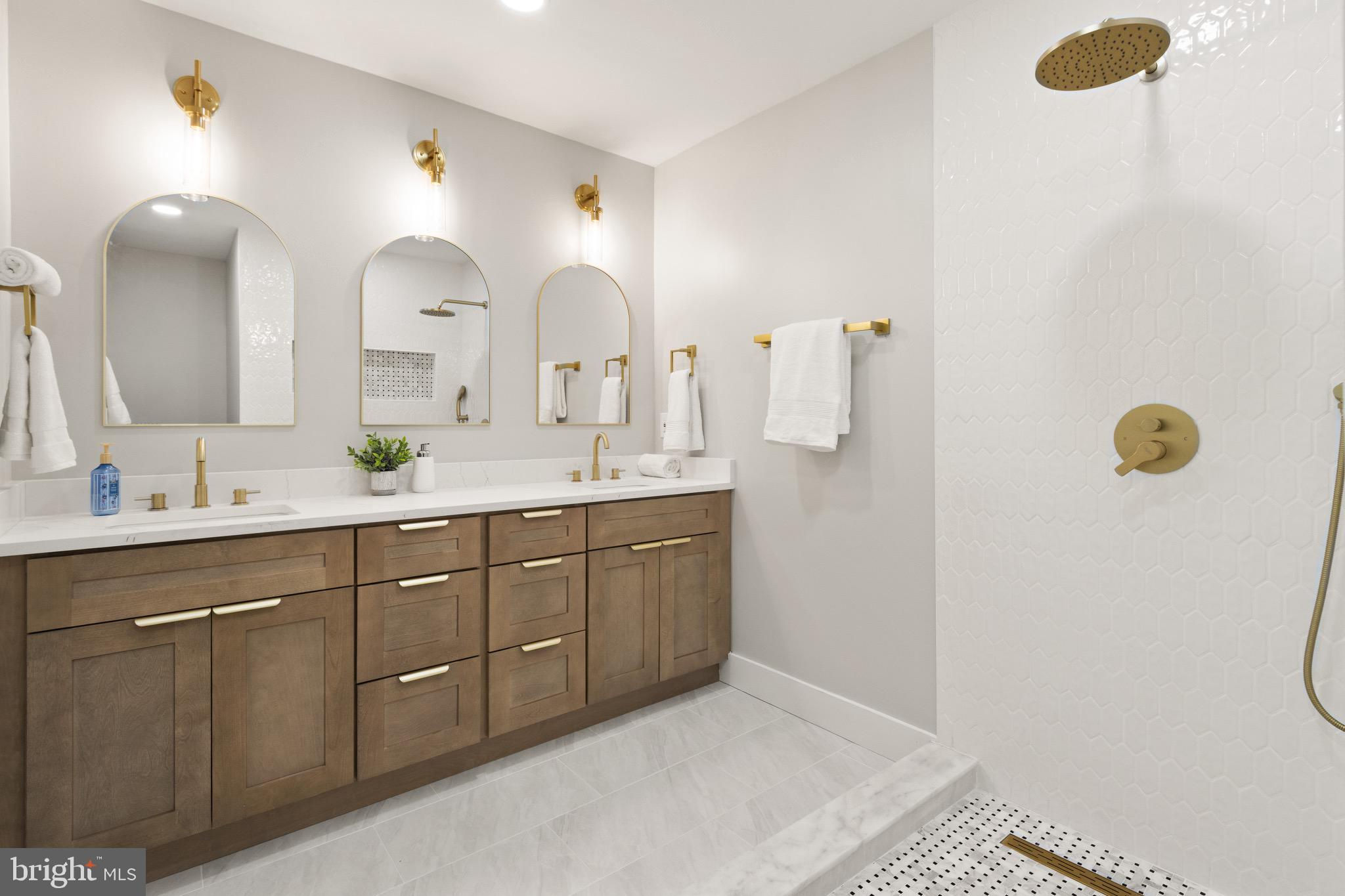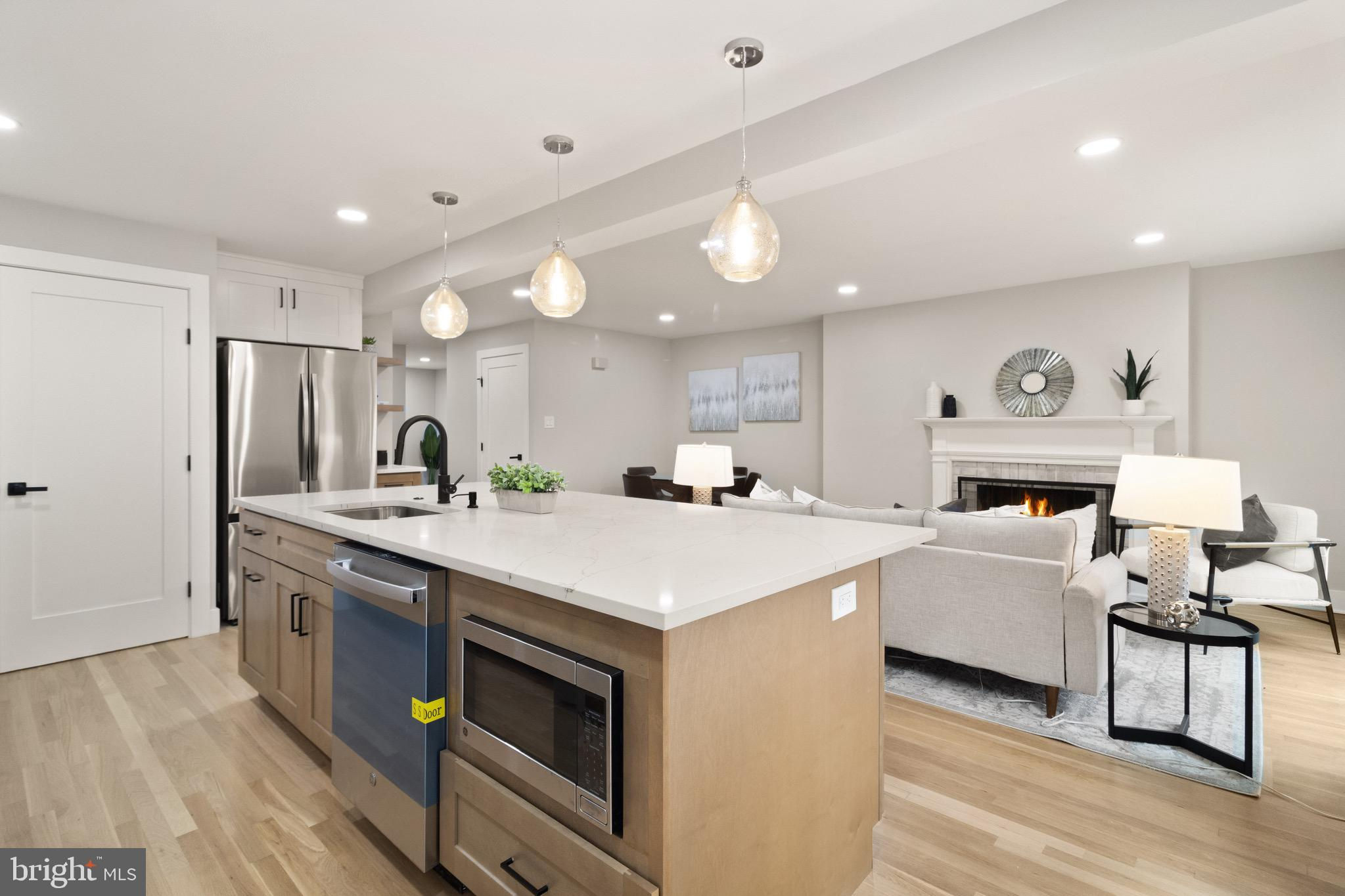 Experience luxury living in the heart of Arlington with this stunningly renovated townhome, offering a perfect blend of sophistication, functionality, and comfort. From the moment you arrive, you’ll appreciate the private driveway and one-car garage — a rare find in such a prime location.Step inside to discover a completely renovated interior with gleaming hardwood floors on the main and upper levels, recessed lighting, and modern fixtures and finishes throughout. The open-concept main level is anchored by a cozy fireplace and flows seamlessly into the expansive kitchen, where no detail has been overlooked. The chef’s kitchen features quartz countertops and backsplash, stainless steel appliances, a built-in microwave drawer, coffee bar, spacious island, and ample cabinetry for storage and style.Two sliding glass doors lead from the main living area to a private brick-walled garden oasis — complete with a Trex deck and rear gate — offering the perfect retreat for morning coffee, evening entertaining, or quiet relaxation.Upstairs, the primary suite is truly a showstopper, boasting an enormous walk-in closet with a custom organization system and a spa-inspired en suite bathroom featuring a dual vanity, open shower, and designer tile. Two additional spacious bedrooms and a second full bathroom with dual vanity and tub/shower combo complete the upper level.The fully finished basement extends your living space with LVP flooring, a second fireplace, two versatile bonus rooms, and a third full bathroom — ideal for guests, a home office, gym, or media space.With 3 bedrooms, 3.5 bathrooms, and upgrades at every turn, this home offers the perfect blend of timeless design and modern luxury. Every detail has been thoughtfully curated — from the hardware and tile selections to the lighting and layout — making this Arlington gem a true one-of-a-kind residence.