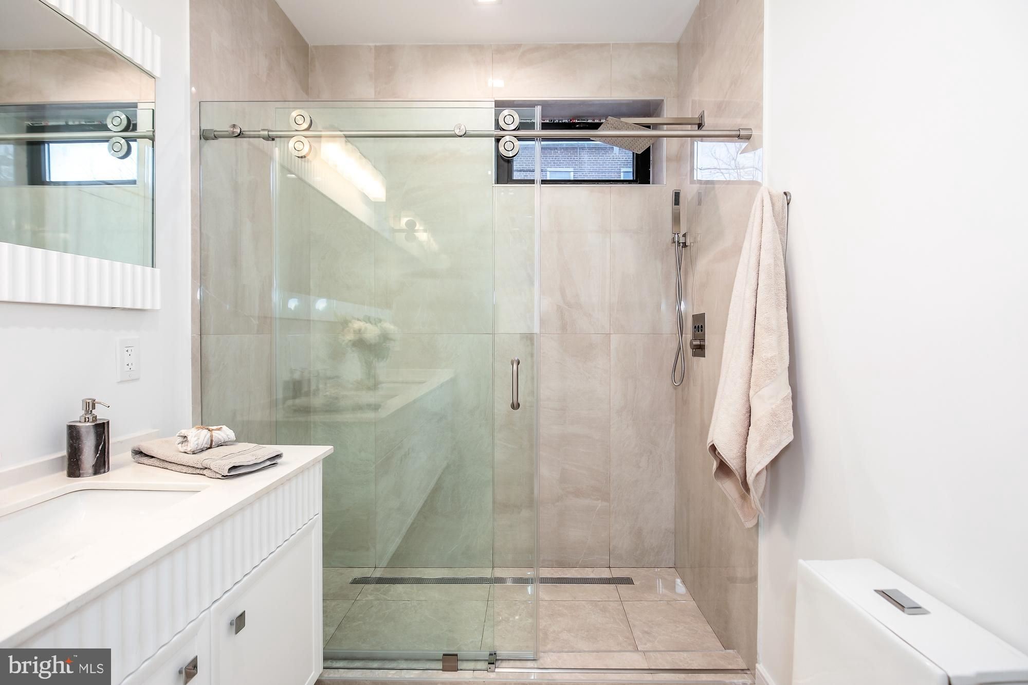 **Two Private Outdoor Spaces** Welcome to this elegant and distinctive new construction condo in a 4-unit boutique building with a stunning open floor plan and exquisite finishes all in the heart of Glover Park. Spanning two levels, this modern residence boasts 2 Beds, 2 Baths, soaring ceilings, oversized multifunctional windows, wide plank flooring, two entrances, and park views. The designer kitchen is adorned with custom appliances, sleek high-gloss lacquer cabinetry and expansive countertops made of quartz — presenting an elegant canvas for entertaining and gourmet cooking. On the second level you will find the primary bedroom with panoramic windows and an attached bath complete with a walk-in shower and an oversized double vanity. Unwind on an oversized patio off the living room or BBQ on your private rear deck. Nestled atop Georgetown, this location is unbeatable with Trader Joe's, Starbucks, Safeway, and Whole Foods within minutes. Assigned parking available.