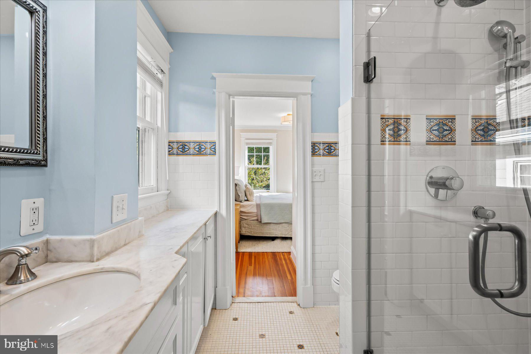 Fabulous price adjustment! Open Sunday, November 2nd from 2 - 4 PM! Welcome to this stunning classic DC porch front home, perfectly situated on a beautiful tree-lined street in the heart of Chevy Chase, DC! Just steps from the Chevy Chase Recreation Center, the Metro, and the vibrant shops and restaurants along Connecticut Avenue and Friendship Heights, this home offers the best of classic style and modern living. With approximately 3,000 square feet of finished space across four levels, the home has been thoughtfully renovated and meticulously maintained over the years. Original details shine throughout—9-foot main floor ceilings, oversized windows, elegant moldings, and gorgeous hardwood floors all showcase its timeless character. The main level welcomes you with a gracious entry foyer leading to a formal living room with fireplace, an expansive separate dining room, a renovated kitchen with updated appliances, and a sunlit rear family room spanning the back of the home, opening to a deep, level garden with a detached garage and alley behind. Upstairs is a wonderful light-filled primary suite featuring a walk-in closet and a stylish bath with dual vanities. A staircase from the primary bedroom leads to the charming, skylit third level—ideal for a sitting area, home office, or dressing room. Two additional spacious bedrooms complete the second level, both offering additional space for play, a home office, or sitting areas. They share a classically updated hall bath with a skylight and clawfoot tub. The lower level offers excellent versatility with a recreation room, potential guest bedroom, full bath, laundry, and ample storage. Outside, the fully fenced backyard is private and spacious with mature trees and landscaping. Enjoy the unbeatable convenience of this location—with easy access to downtown DC, Maryland, and Virginia. Chevy Chase, DC is celebrated for its welcoming community, beautiful homes, top-performing schools, and leafy streets—a true neighborhood feel with city amenities at your doorstep. Don’t miss it – schedule your visit today!