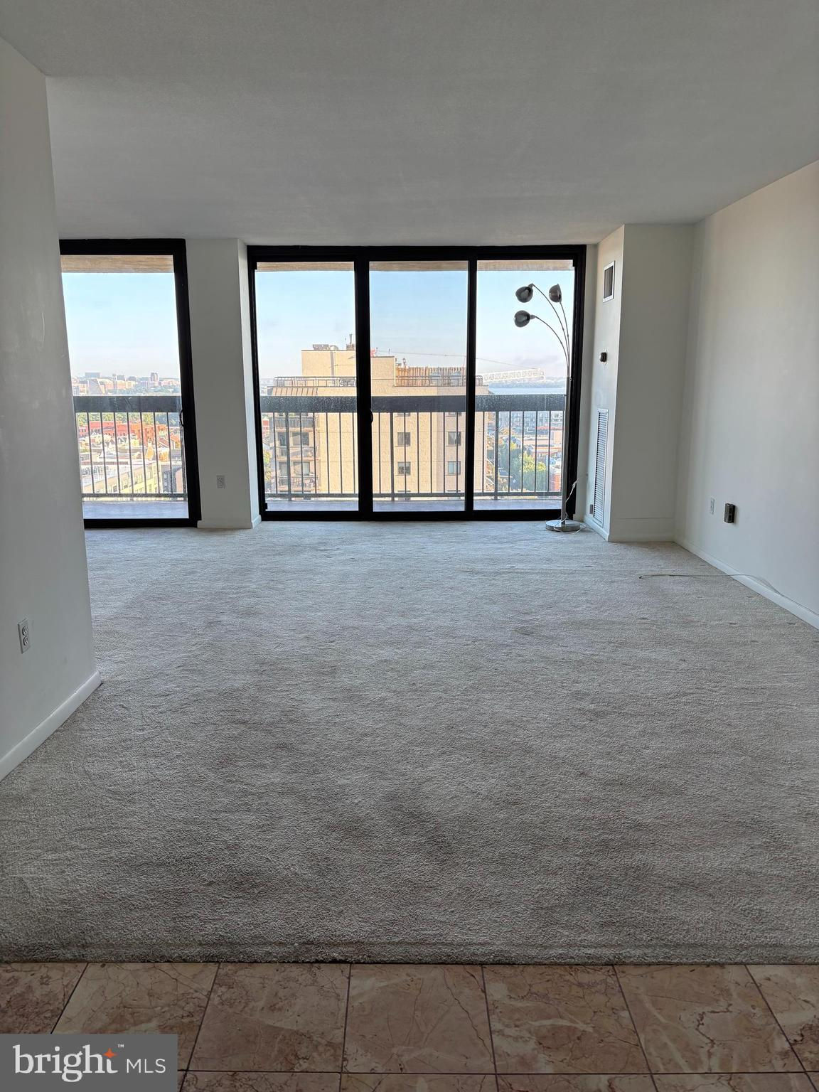 Two bedroom, two bath condo. Carpet throughout. Living, dining, and bedrooms all open to the private balcony with views of the Potomac River and DC. New sliding glass doors installed within last 5 years. Stacked washer/dryer in unit. One parking space and one storage unit available. Utilities are included. Tenant is responsible for cable/internet. Tenant has access to all Alexandria House amenities.