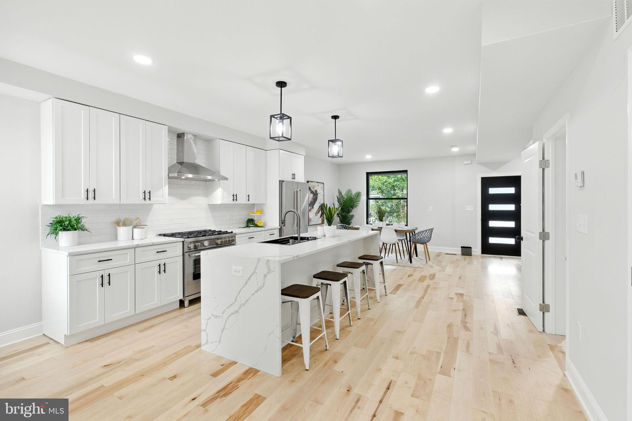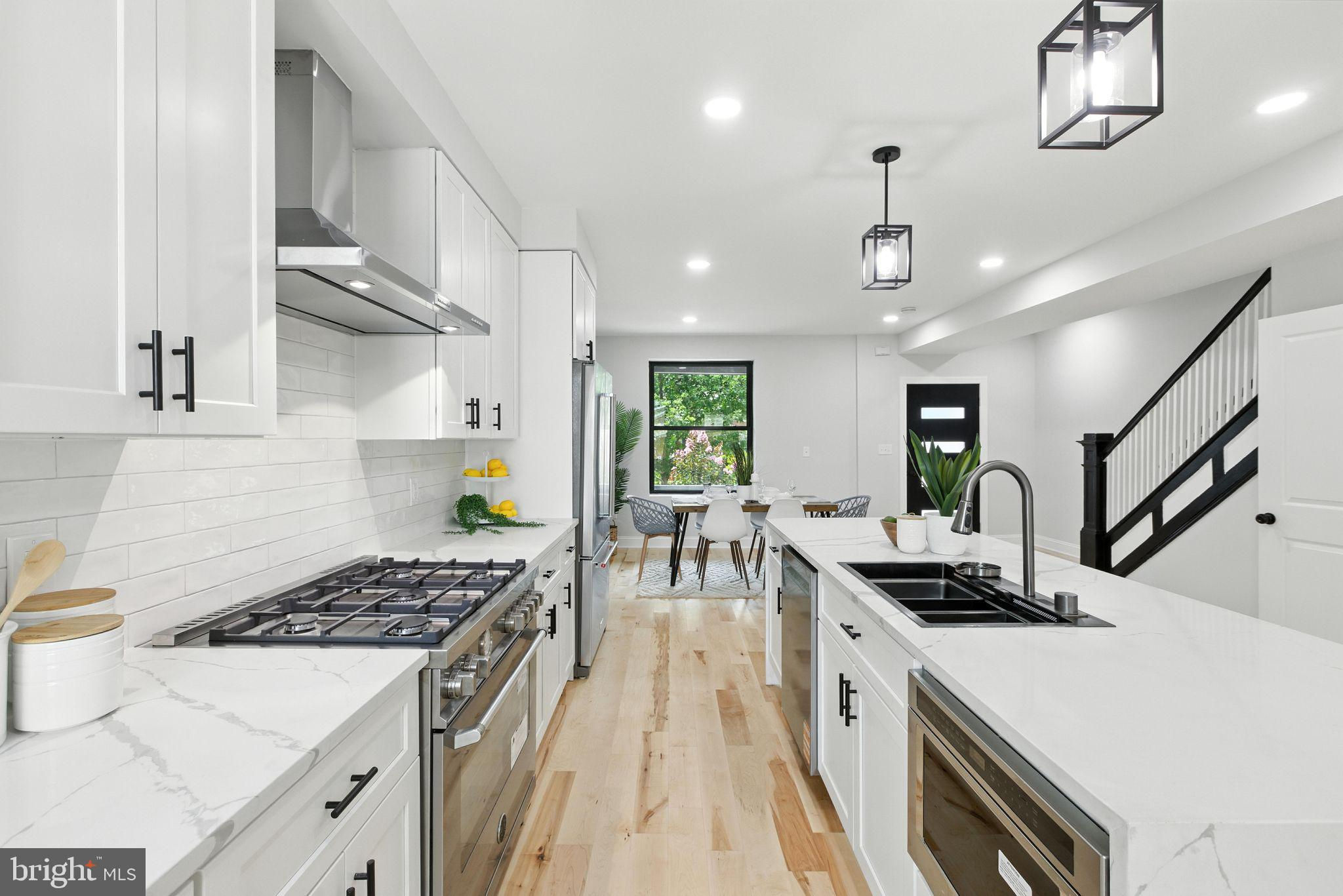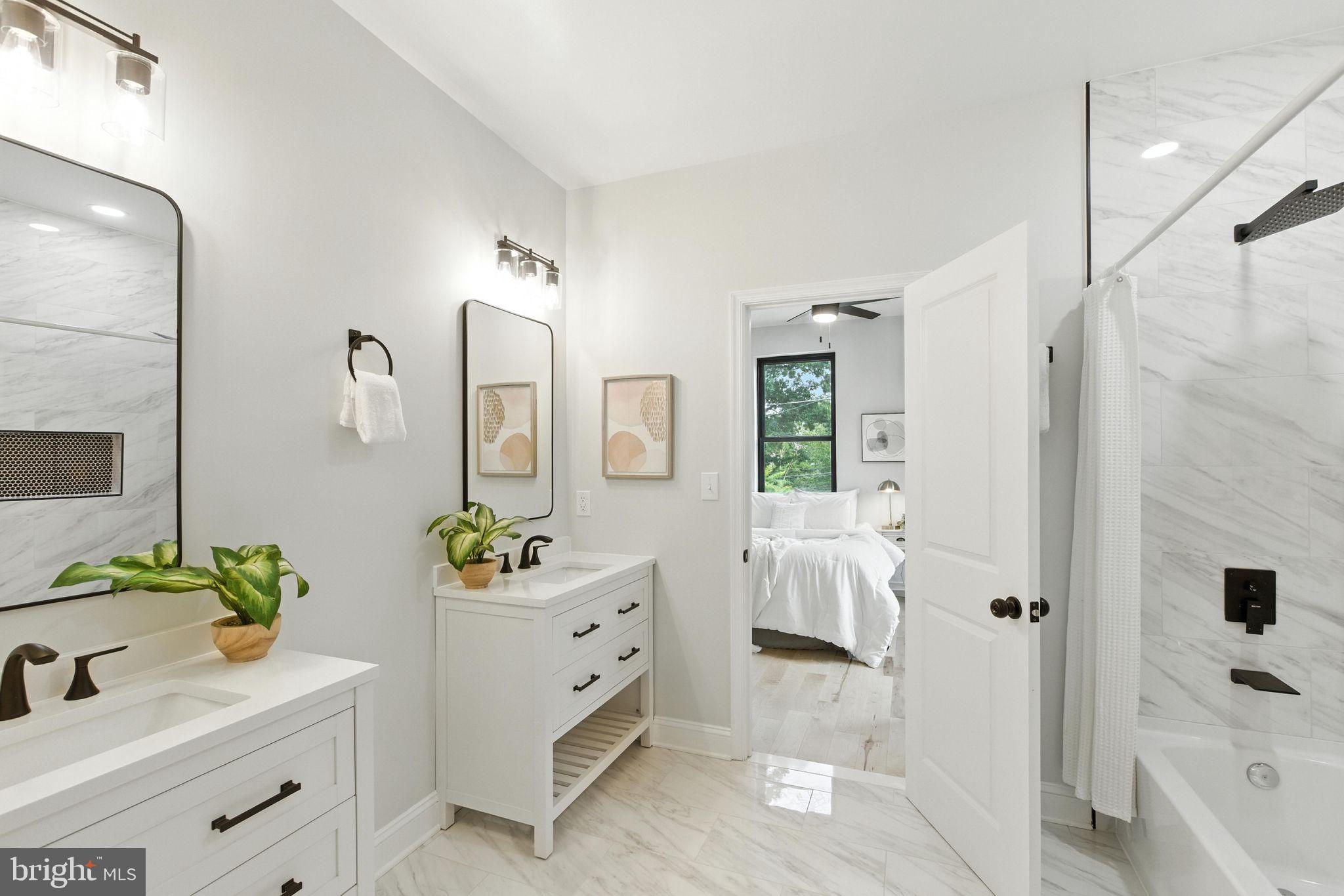 Welcome to 4017 14th St NW – a beautifully renovated home combining timeless charm with modern luxury in the heart of Northwest DC. The location is premium with close proximity to Rock Creek Park, Upshur Park & Pool, The Twin Oaks Community Garden, Restaurants, shops and so much more! This spacious residence offers a thoughtfully designed open floorplan on the main level, perfect for entertaining and everyday living. The gourmet kitchen is a chef’s dream, featuring custom white cabinetry, upgraded stainless steel appliances including a Bertazzoni gas range, drawer microwave, and sleek finishes throughout. Upstairs, the luxurious primary suite boasts a spa-inspired en-suite bath with elegant custom tilework and plenty of closet space. The hallway then leads to an upper level laundry area and two additional generously sized bedrooms which share a stylish Jack and Jill bathroom, complete with two vanities and designer finishes. The fully finished walk-out basement provides flexible living space with a bedroom or office, full bathroom, second laundry area, and a spacious recreation area—ideal for guests, a home office, or additional entertaining space. Enjoy outdoor living on the covered front porch and rear deck. This home now offers PRIVATE GARAGE parking with room for up to 3 vehicles! Don’t miss this exceptional opportunity to own a one of a kind home in one of DC’s most vibrant neighborhoods!