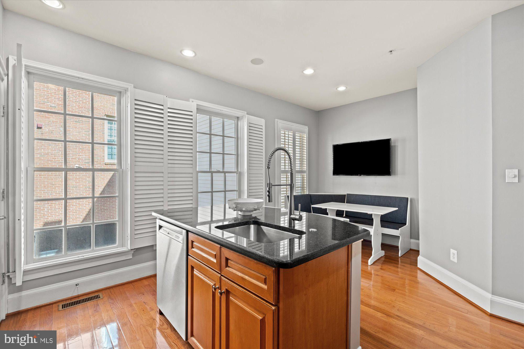 Welcome to 403 Princess Street — a sun-filled Old Town classic just steps from the Potomac River. Located only 3 blocks to the Potomac River and Founders Park, and 4 Blocks to vibrant King Street, this classic inspired 3-bedroom plus den, 3.5-bath townhome with a 2-car garage offers the best of Alexandria living in a PRIME location. Built in 2006 and spanning nearly 2,400 finished square feet, the home blends timeless architecture with modern comfort and light-filled living spaces. The southeast-facing home welcomes you with a bright foyer and a main-level office featuring built-in bookshelves and glass doors, setting the tone for the residence’s elegant design. Upstairs, an airy family room with large windows and a gas fireplace framed by built-in bookshelves offers a warm, inviting space, complemented by designer wallpaper and stylish designer lighting. The spacious dining area effortlessly accommodates holiday gatherings, while the adjacent chef’s kitchen is a true centerpiece, boasting stainless steel appliances, a center island, and a sun-drenched breakfast nook—perfect for morning coffee or casual meals. Upstairs, the serene primary suite offers a walk-in closet and a spa-like ensuite bath with soaking tub and dual vanities. A second bedroom, full bath, and laundry closet complete this level. The top floor includes a versatile loft or recreation space, a third bedroom with ensuite bath, and access to a private rooftop deck—ideal for entertaining or relaxing under the stars. With its abundance of natural light, refined details, and unbeatable location just four blocks to King Street and one mile to the King Street Metro (Blue/Yellow lines, VRE, and Amtrak), this home offers both convenience and charm. Enjoy an easy stroll to Old Town’s shops, restaurants, and waterfront trails—or be in downtown DC in minutes. 403 Princess Street captures the essence of Old town - bright, elegant, and effortless living.