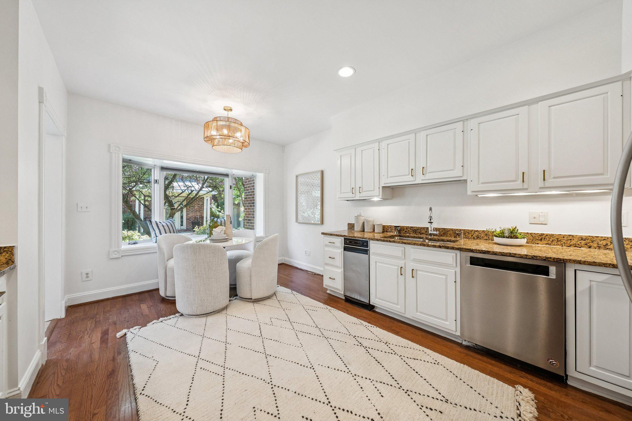 Security, convenience, and amenities all within minutes of Georgetown. Chancery Court is a sought-after enclave of private rowhomes within the gated community of Hillandale. A security gate and mature tree-lined streets welcome you to lushly landscaped grounds. Freshly painted throughout and offering rich hardwood floors, plus three sides of sunlight, this end-unit 3-Bedroom, 3.5-Bath townhome backs to the French Embassy and features 2,544 sf of living space on 3 finished levels, a private rear deck, your own attached garage with parking for 2 vehicles, and a plenty of storage throughout. An open and bright kitchen offers a modernized floorplan with classic stone counters, stainless-steel appliances (gas cooktop), and an eat-in dining area. An adjacent formal dining room overlooks the sunken living room, with fireplace, which leads out to the rear deck. A powder room completes the main level of the home. The upper floor features 3 bedrooms and 2 full-baths, including a gracious primary suite with an expansive walk-in closet, plus en-suite bath with dual vanities, walk-in shower, and a separate tub. Downstairs boasts a lower-level den with fireplace and wet bar, full bath, mudroom/laundry room, and connects to your own private, 2-car underground garage. This home at Chancery Court, within the Hallandale community, provides the ease of a lock and leave property, combined with community amenities that include 24/7 gated security, while the monthly HOA fee covers cable TV/internet, swimming pool, tennis courts, tot-lot, snow removal, trash pickup, front lawncare, and more.