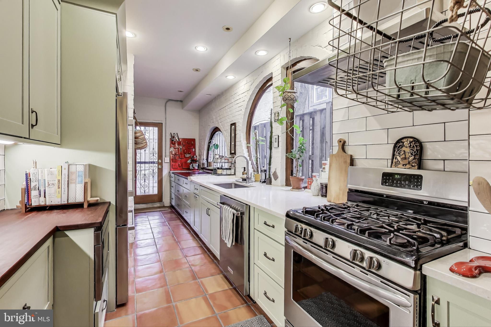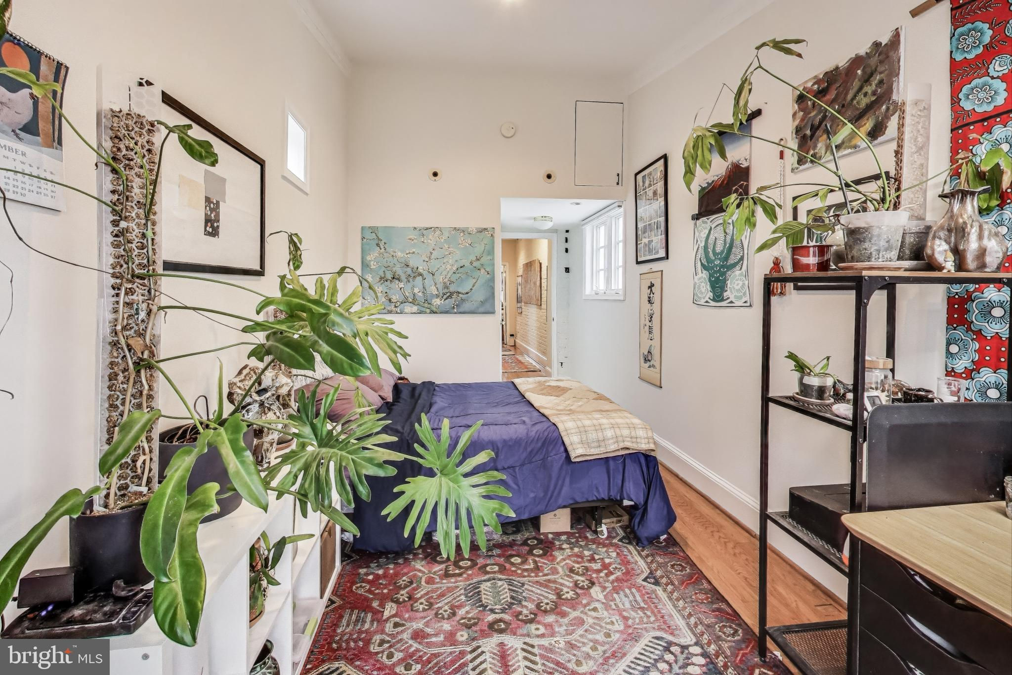 Step into a piece of Washington, DC history with this beautifully restored Capitol Hill home, a beautiful balance of old-world charm and present-day sophistication.. Originally renovated in the 1970s by architect and builder David S. Clarke, this home boasts unique nautical-inspired details, including ship windows, a wooden post in the living area, stained glass accents and a distinguished front door plaque & door knocker. From the moment you arrive, the inviting front yard with native plantings and a rebuilt covered porch sets the stage for the character within. Inside, hardwood floors flow throughout the dining living spaces, complemented by exposed brick, a wood-burning fireplace, repurposed dental molding shelving and a striking stained glass transom above the front door and side window. The living area leads to an incredibly well-designed new kitchen, maximizing space without sacrificing style. Features include high end solid wood cabinetry, Mexican tile flooring, a deep single sink, a hand-picked glazed ceramic subway tile backsplash, name brand appliances including a gas range with hood, built-in drawer microwave, refrigerator with French doors and bottom freezer, dishwasher, a whole-house water filtration system, and a mix of quartz and Brazilian cherry countertops. A newly designed powder room adds convenience to the main level. Step outside to a private, fenced backyard with a charming brick patio with access to a walking alley shaded by a beautiful Elm heritage tree—perfect for enjoying outdoor moments in the heart of the city. Upstairs, a bright skylight illuminates the hall as the hardwood flooring continues. The front bedroom offers a walk-in closet and custom built-ins made from repurposed roof joists, while the newly remodeled hall bath exudes classic elegance with bead board and subway tile finishes. A laundry center adds ease to daily living. The back bedroom features vaulted ceilings, walk in closet and a sliding glass door leading to a private balcony—an ideal retreat in the city. Modern updates include a high-velocity central HVAC system, a new low-boy water heater, and a recently resurfaced roof. Living at 407 A St NE offers the perfect blend of historic charm, urban convenience, and a vibrant community, just steps from the U.S. Capitol, Eastern Market, and Union Station. With walkable access to parks, top dining, cultural attractions, and schools, plus with easy transit options, this Capitol Hill gem provides an exceptional lifestyle in the heart of DC.
