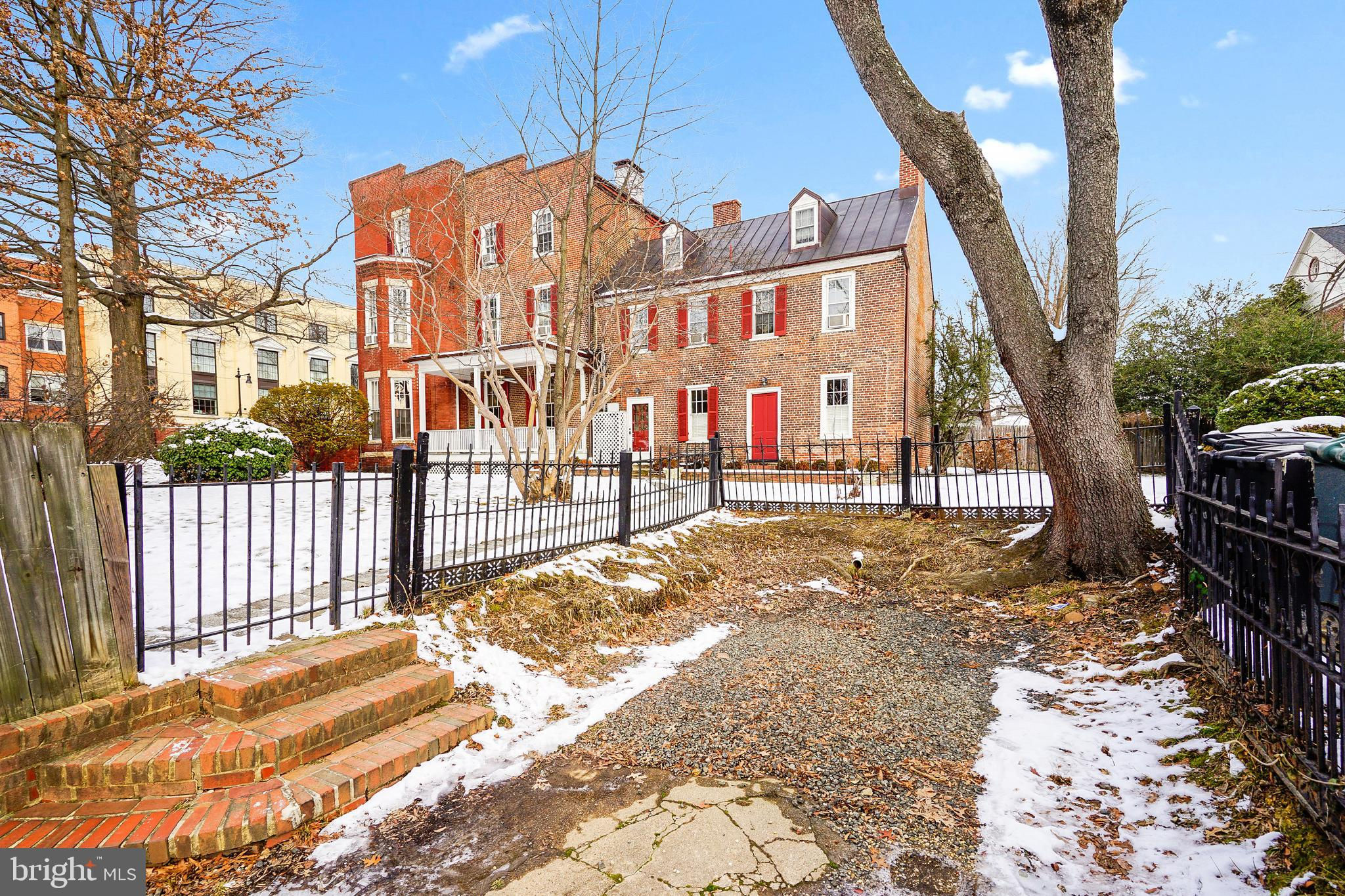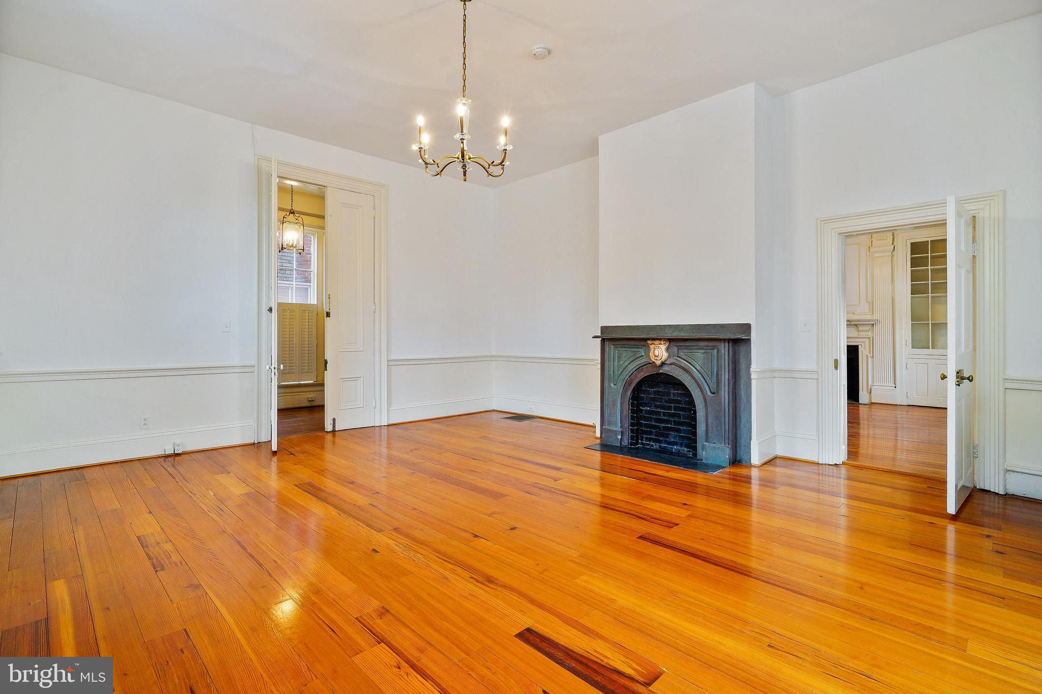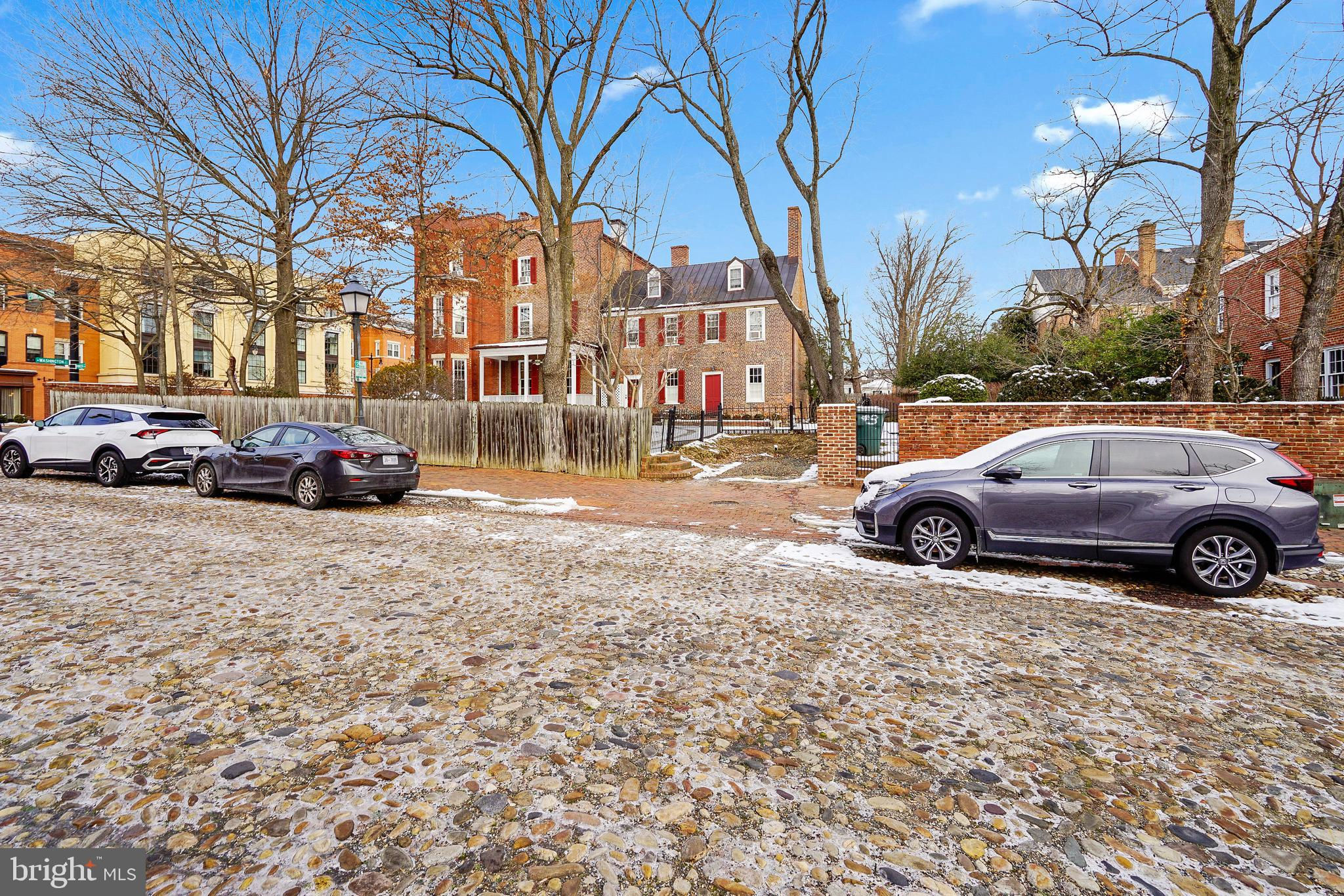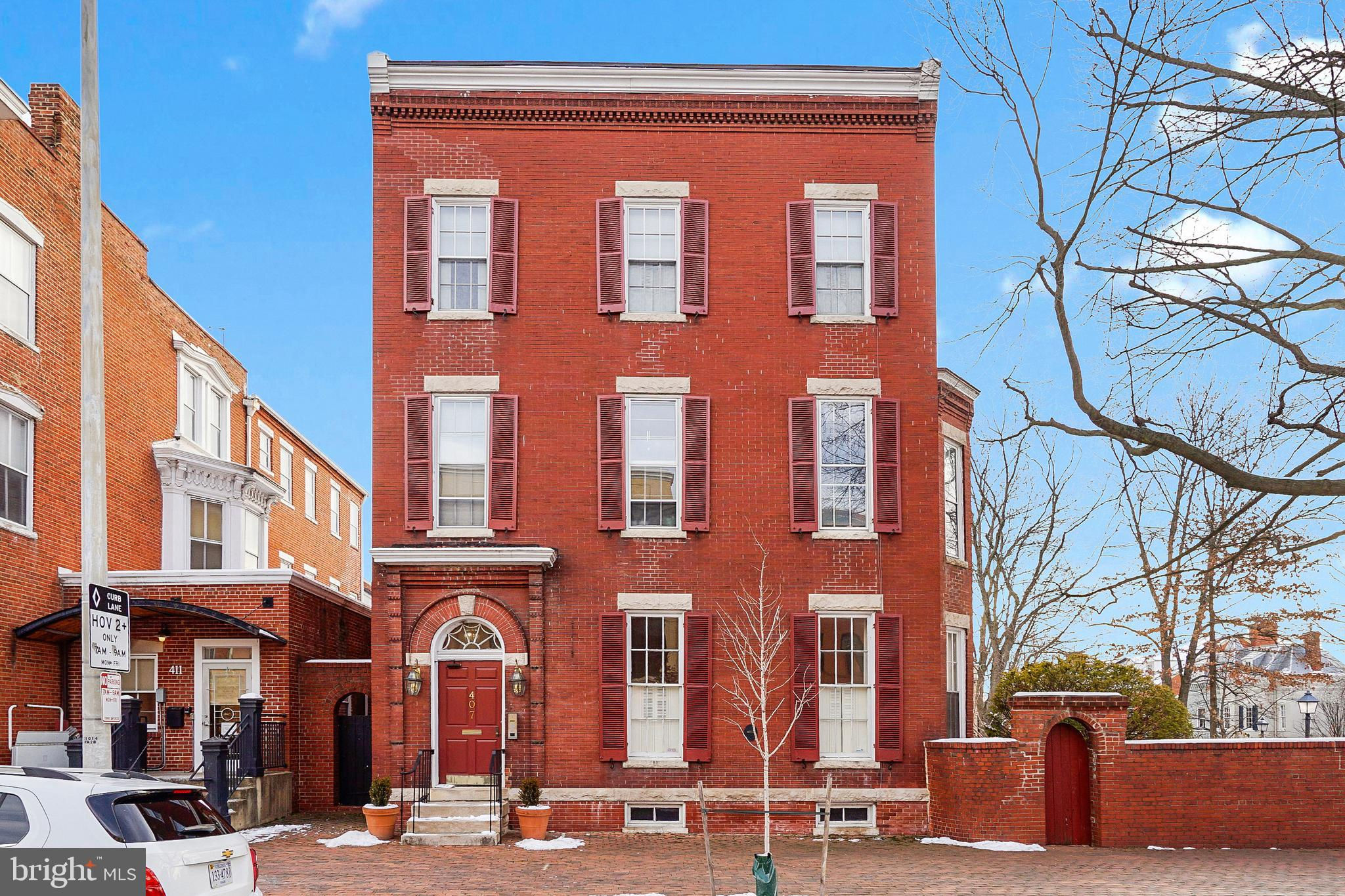 Welcome to Historic 407 N Washington St. The first floor suite is available to be Leased as a professional office. You can feel the history with the beautiful hardwood floors, multiple fireplaces including the original kitchen's large fireplace, 10' high ceilings and exquisite details. There are 4 office spaces, a full kitchen and a full bathroom. There is a mudroom as you enter through the rear which can accommodate a storage area or studio. There is a large private yard and patio for all the Tenants to share. The single private parking space off of Princess St is reserved for this Tenant, There is additional parking on N Washington and Princess St. There is a washer and dryer available as well. Fireplaces are non-functional. The space provides a sense of gravitas, sophistication and class.