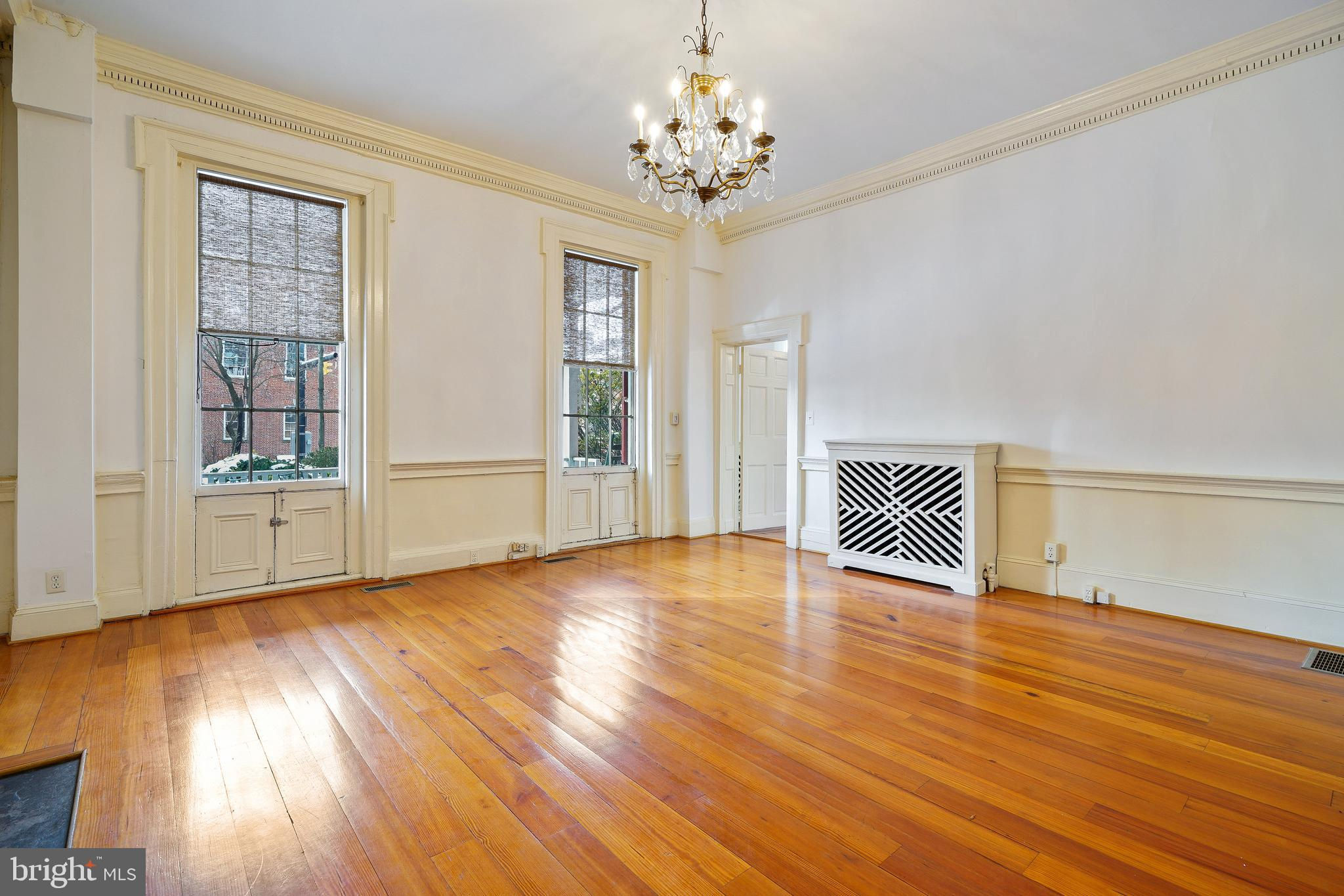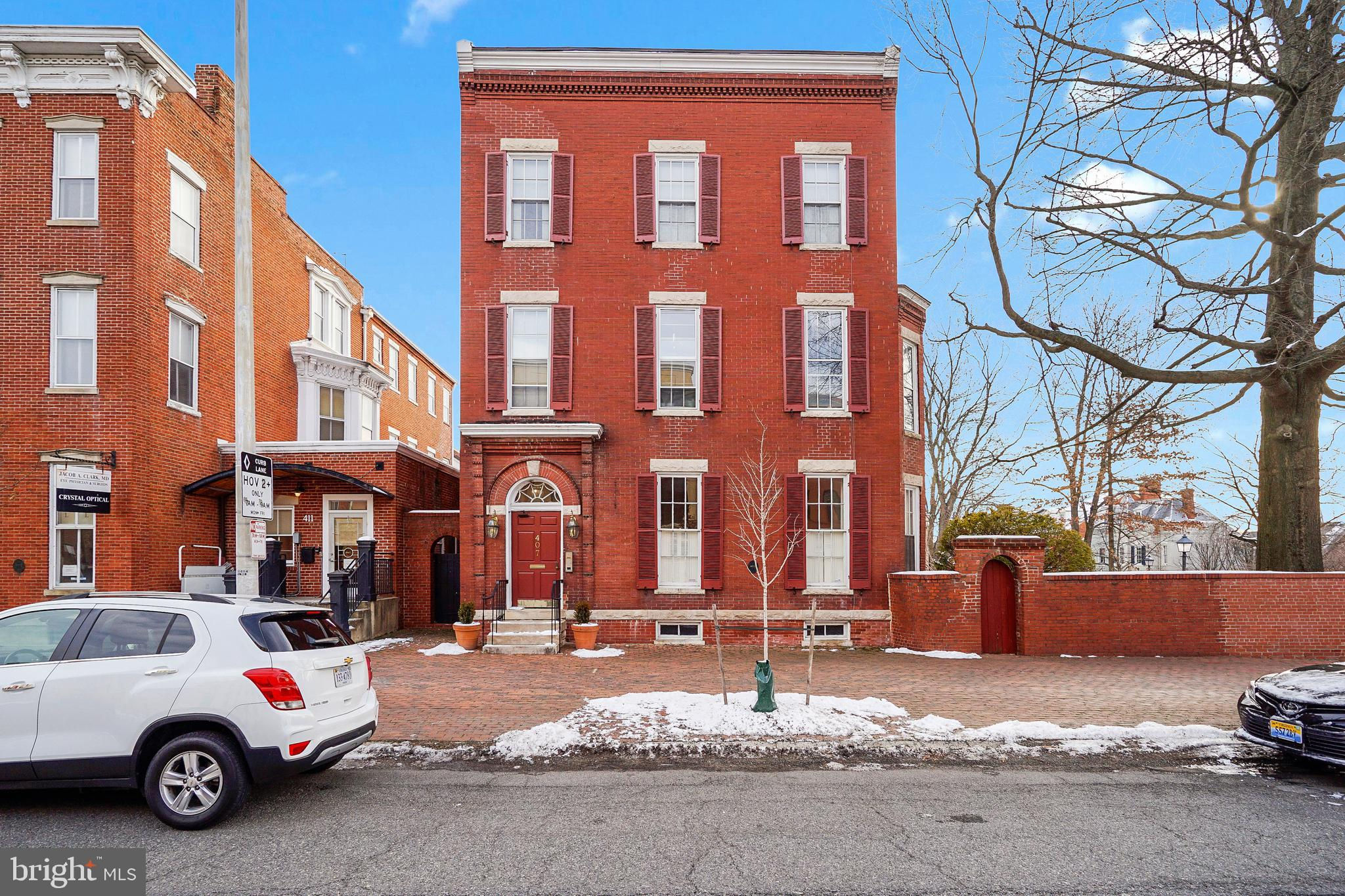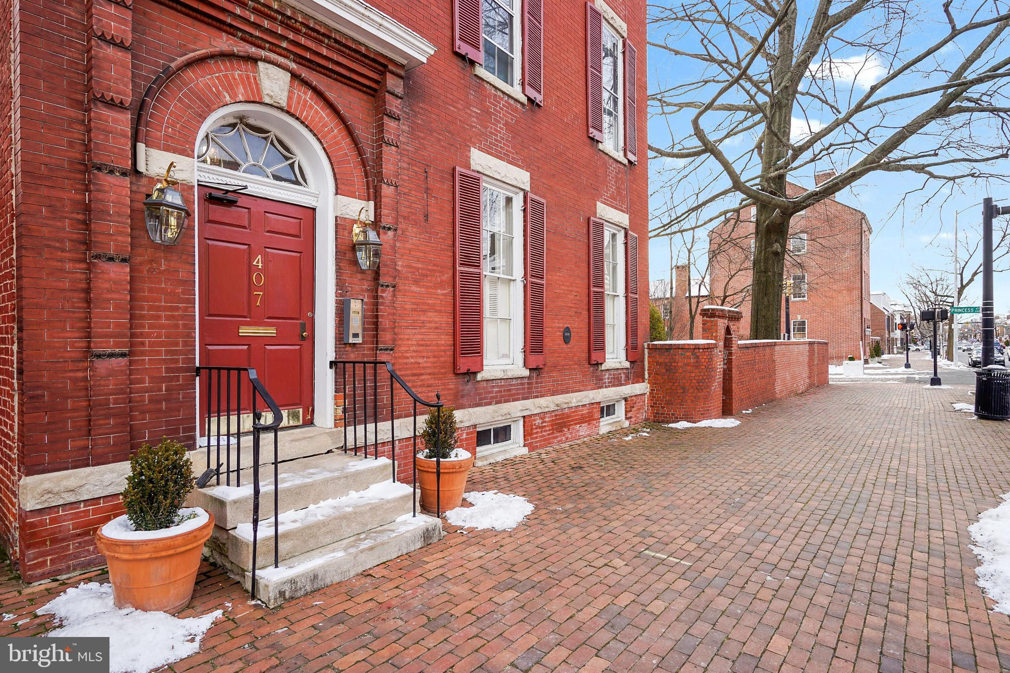 Welcome to Historic 407 N Washington St. The first floor suite is available to be Leased as a professional office. You can feel the history with the beautiful hardwood floors, multiple fireplaces including the original kitchen's large fireplace, 10' high ceilings and exquisite details. There are 4 office spaces, a full kitchen and a full bathroom. There is a mudroom as you enter through the rear which can accommodate a storage area or studio. There is a large private yard and patio for all the Tenants to share. The single private parking space off of Princess St is reserved for this Tenant, There is additional parking on N Washington and Princess St. There is a washer and dryer available as well. Fireplaces are non-functional. The space provides a sense of gravitas, sophistication and class.