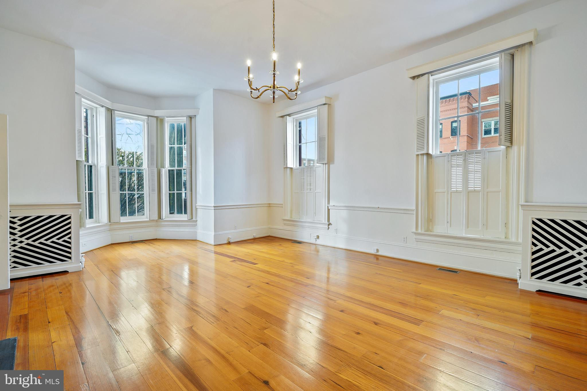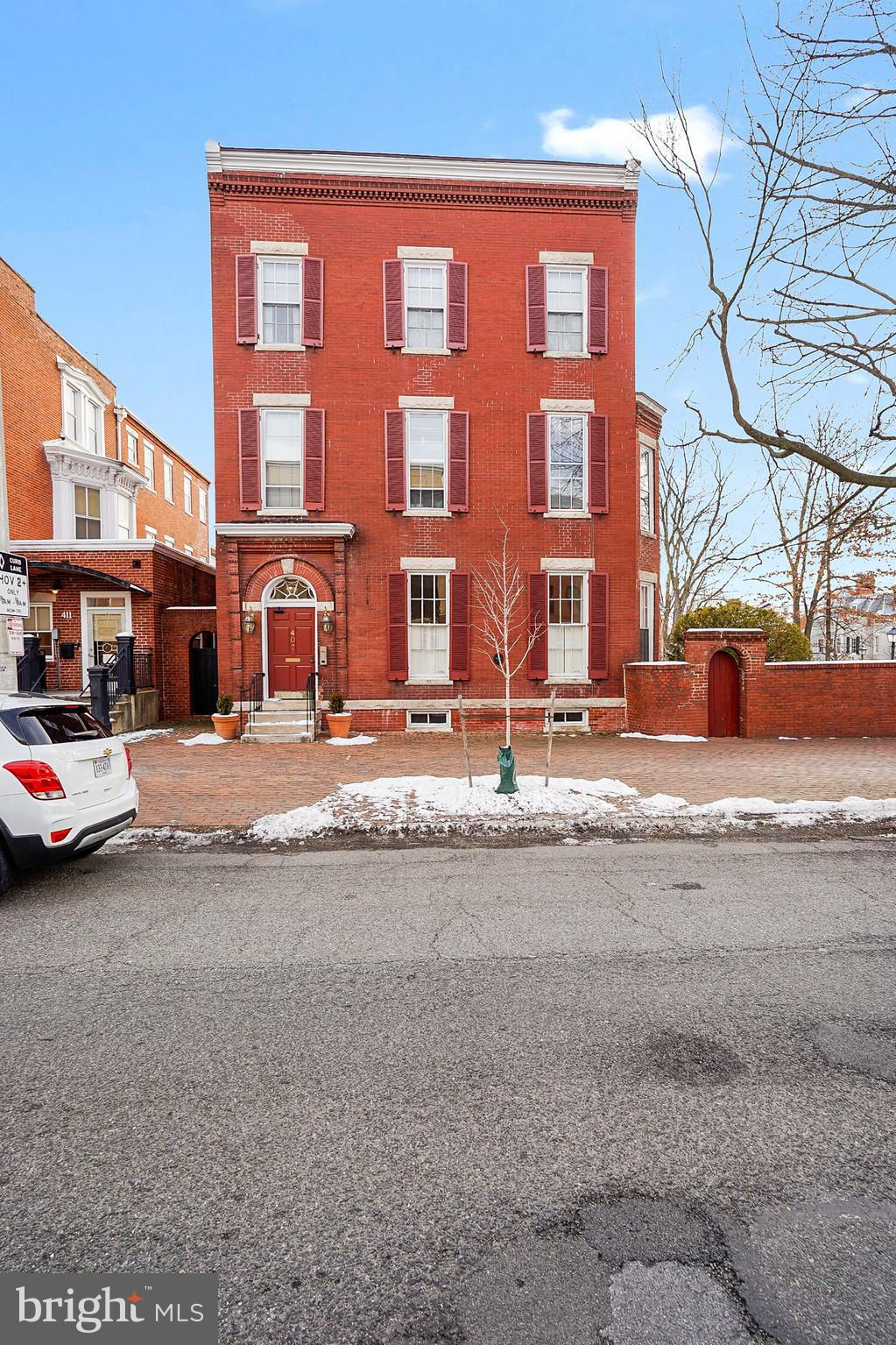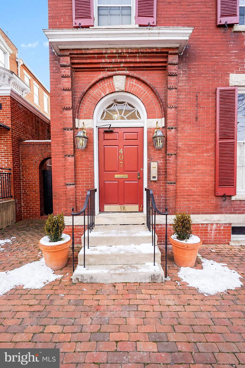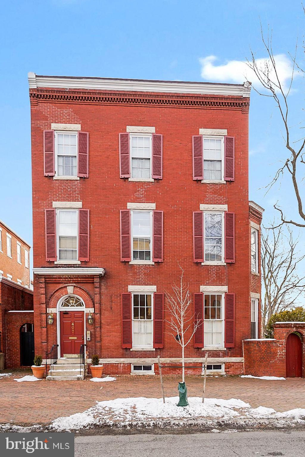 Welcome to Historic 407 N Washington St. The first floor suite is available to be Leased as a professional office. You can feel the history with the beautiful hardwood floors, multiple fireplaces including the original kitchen's large fireplace, 10' high ceilings and exquisite details. There are 4 office spaces, a full kitchen and a full bathroom. There is a mudroom as you enter through the rear which can accommodate a storage area or studio. There is a large private yard and patio for all the Tenants to share. The single private parking space off of Princess St is reserved for this Tenant, There is additional parking on N Washington and Princess St. There is a washer and dryer available as well. Fireplaces are non-functional. The space provides a sense of gravitas, sophistication and class.