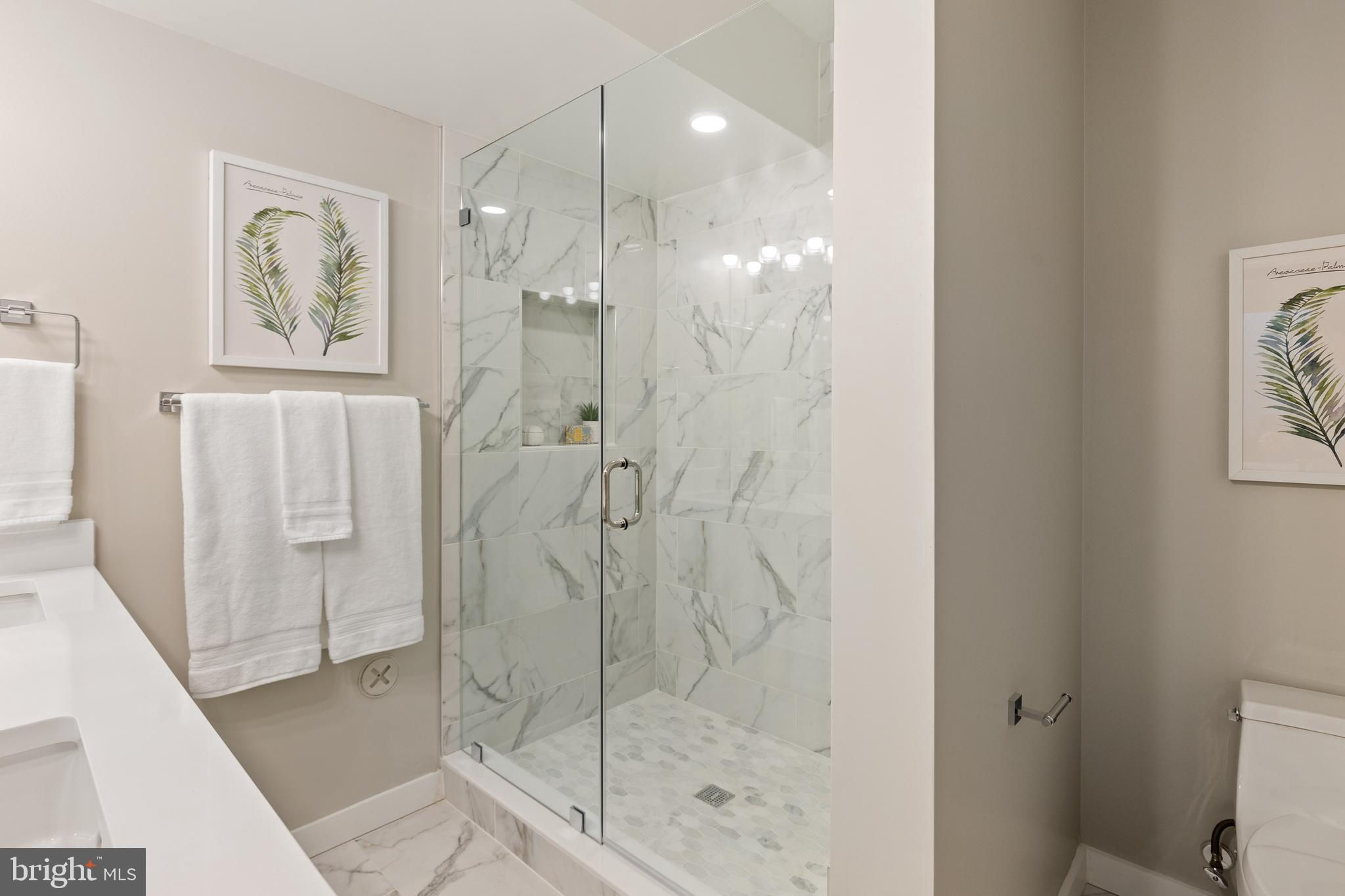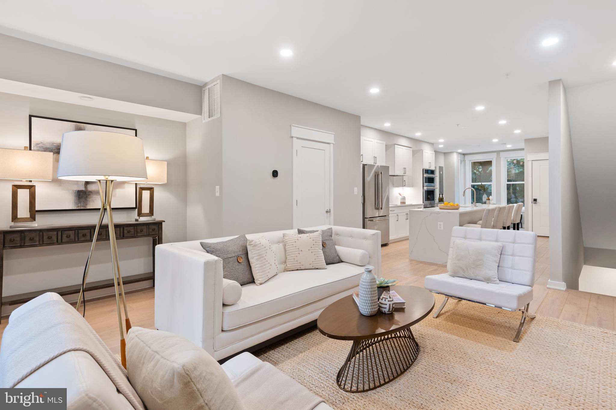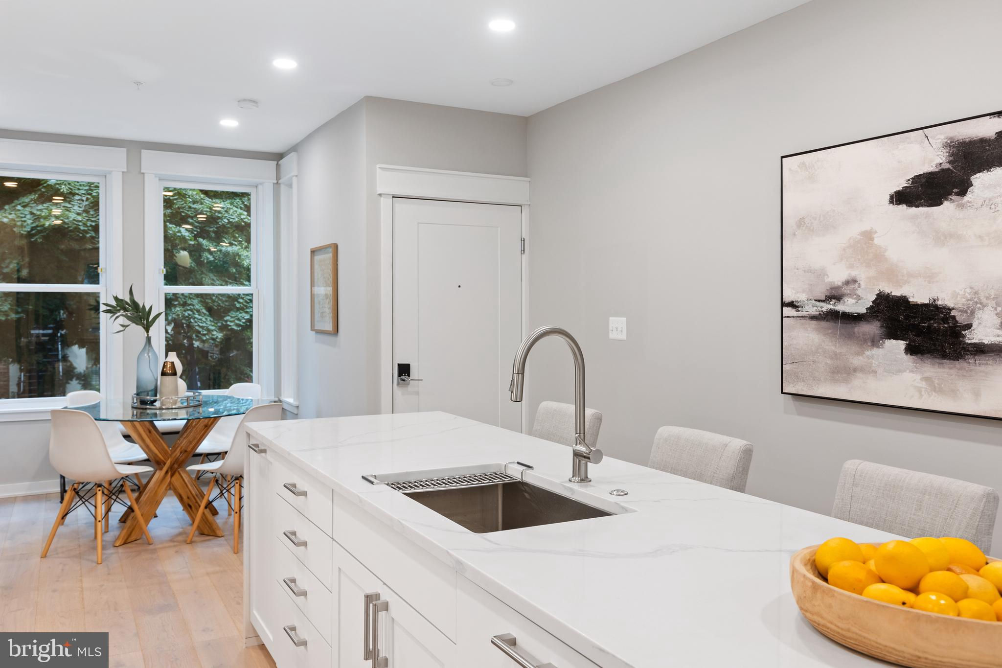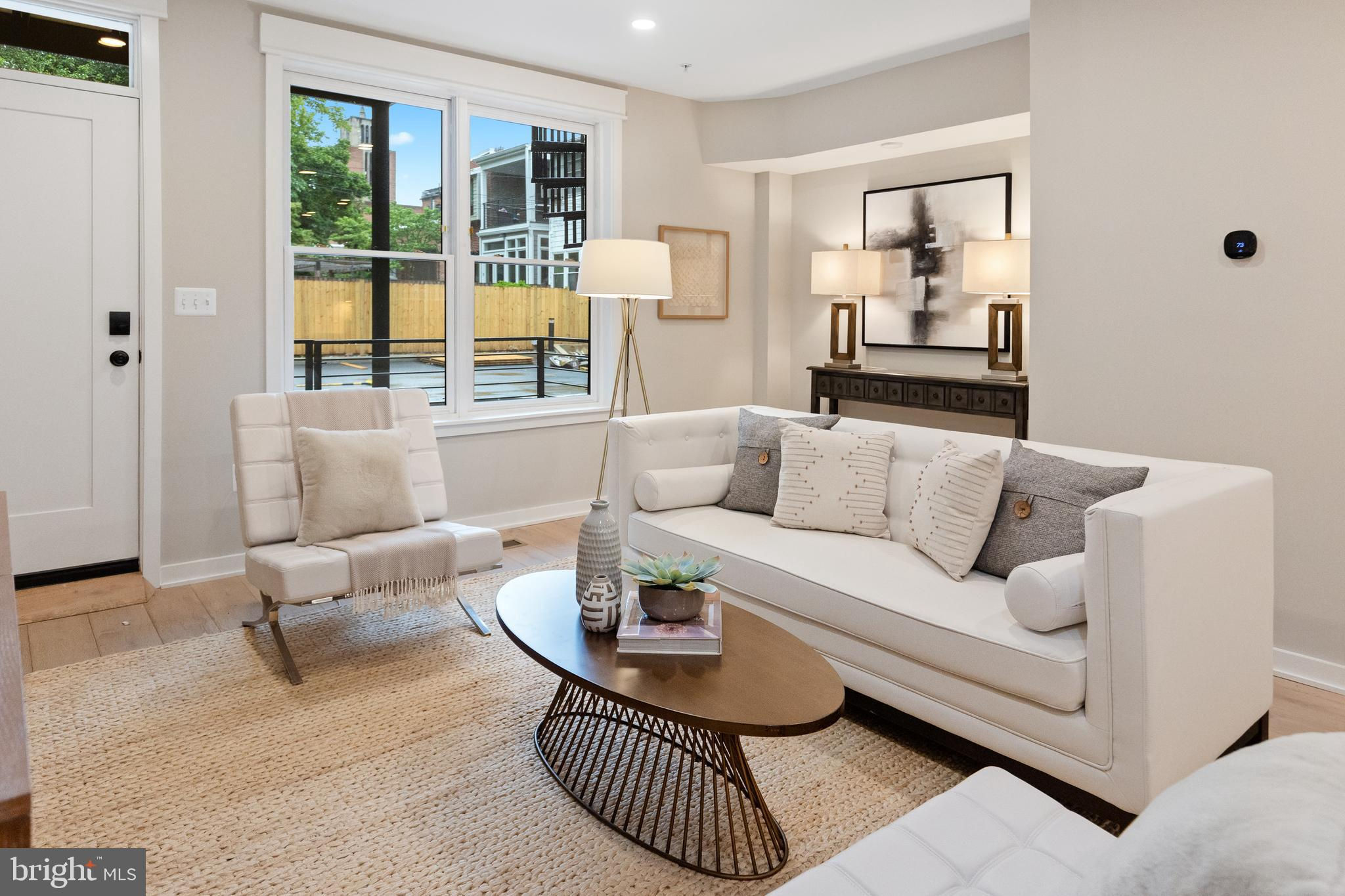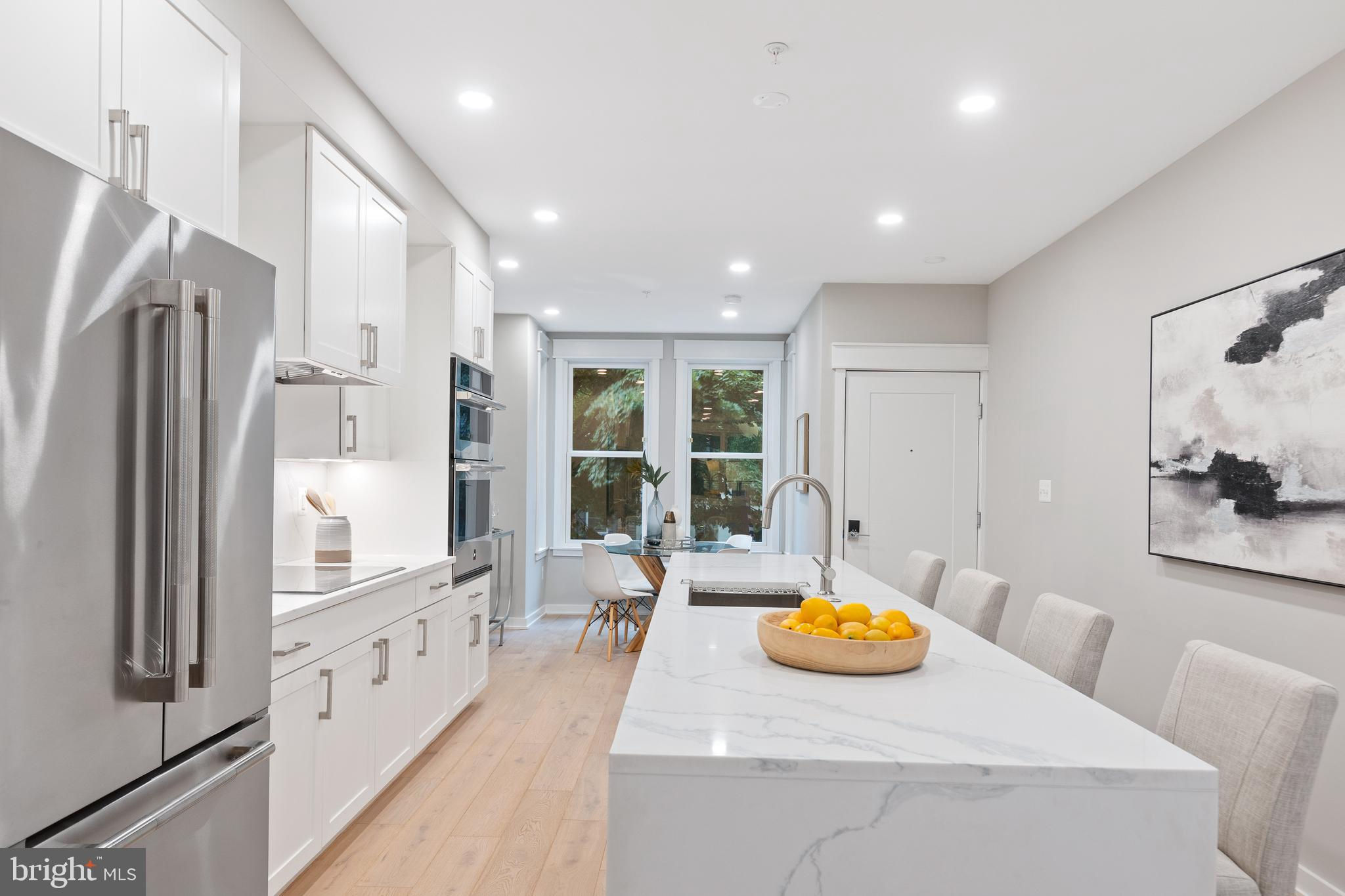 Nestled in the heart of Capitol Hill, this newly constructed property presents exclusive living experience at Ebenezer Row. Spanning two levels offering a spacious 1300 square feet of interior living space, meticulously designed for both comfort and elegance. Residence B offers 2 bedrooms, 2.5 bath residences that are the epitome of modern luxury, featuring high-end Jenn Air Appliances that include an induction cooktop, ensuring a seamless culinary experience. The kitchen, a masterpiece of design, boasts custom J Suss cabinetry and a stunning waterfall island that serves as the centerpiece of an open-plan layout. This space is thoughtfully divided into designated living and dining areas, perfect for entertaining or relaxing in style. 408 D STREET CONDOMINIUMS HAVE NOT BEEN REGISTERED BY THE D.C. DEPARTMENT OF HOUSING AND COMMUNITY DEVELOPMENT. A CONDOMINIUM UNIT MAY BE RESERVED ON A NONBINDING RESERVATION AGREEMENT, BUT NO CONTRACT OF SALE OR LEASE THAT IS BINDING ON THE PURCHASER MAY BE ENTERED INTO PRIOR TO REGISTRATION The large en-suite bedrooms redefine comfort with their ample closet space, equipped with elfa closet systems for optimal organization. The inclusion of full-size washer and dryers on the bedroom floors adds a layer of convenience, complementing the modern lifestyle Ebenezer Row caters to. The primary bath is a sanctuary of relaxation, featuring a frameless shower and dual vanity, while the guest suite includes a generous tub, offering a spa-like experience with its mosaic tile finishes. Throughout the home, wide plank oak flooring in a matte finish underscores the property's understated elegance. With 9-foot ceilings throughout, this home is bathed in natural light, enhancing the spacious feel, and highlighting the meticulous attention to detail in every aspect of the design and construction. This property represents an unparalleled opportunity to live in a space that perfectly balances modern amenities with luxurious comfort, all within the vibrant heart of Washington, D.C with proximity to Barracks Row, Eastern Market and the Ballpark District.
