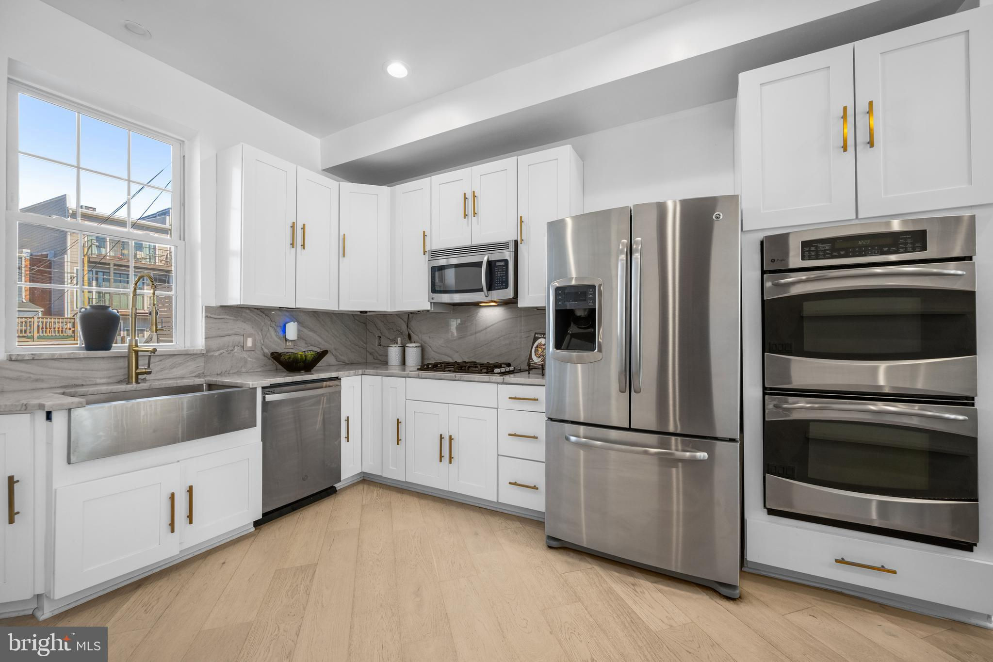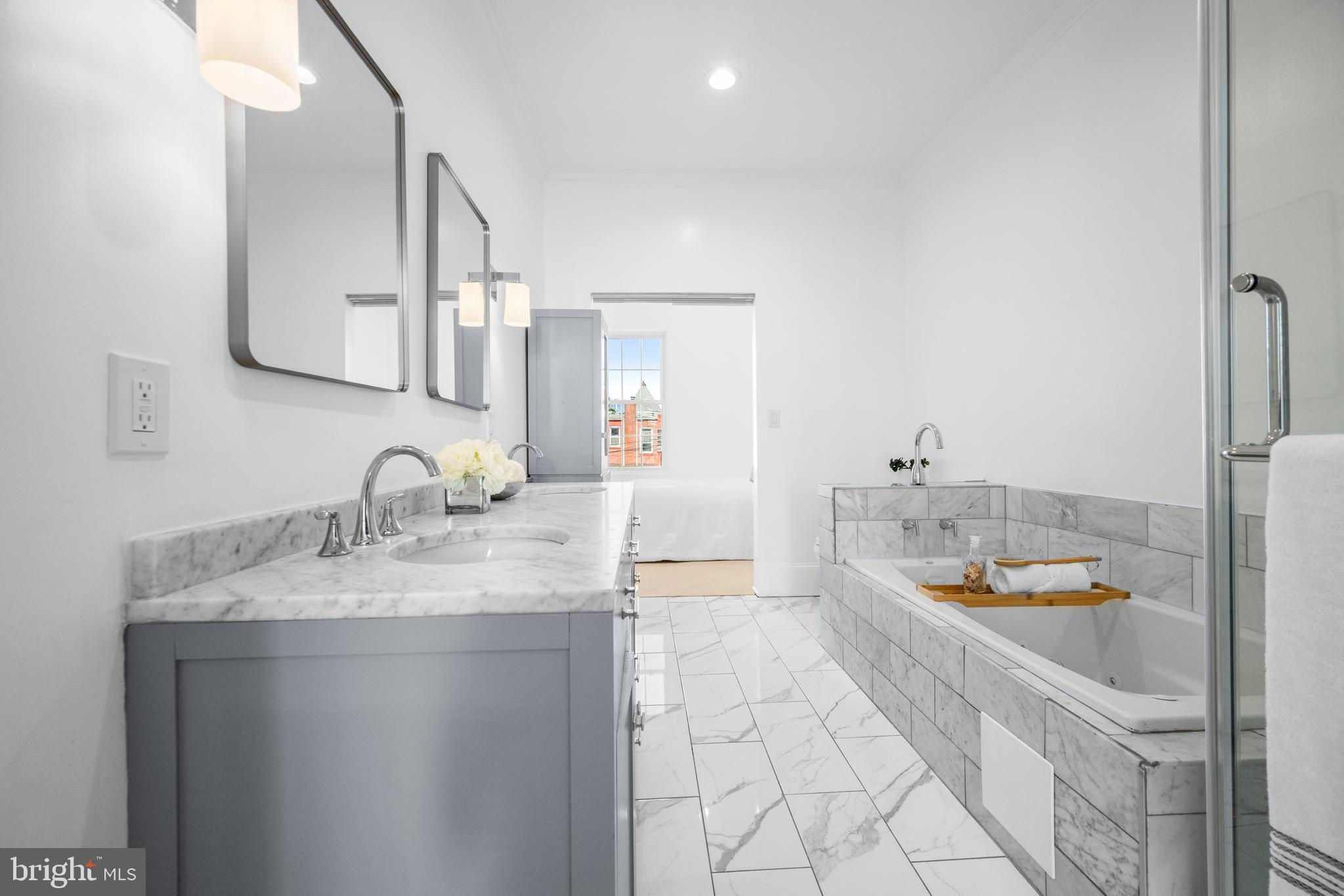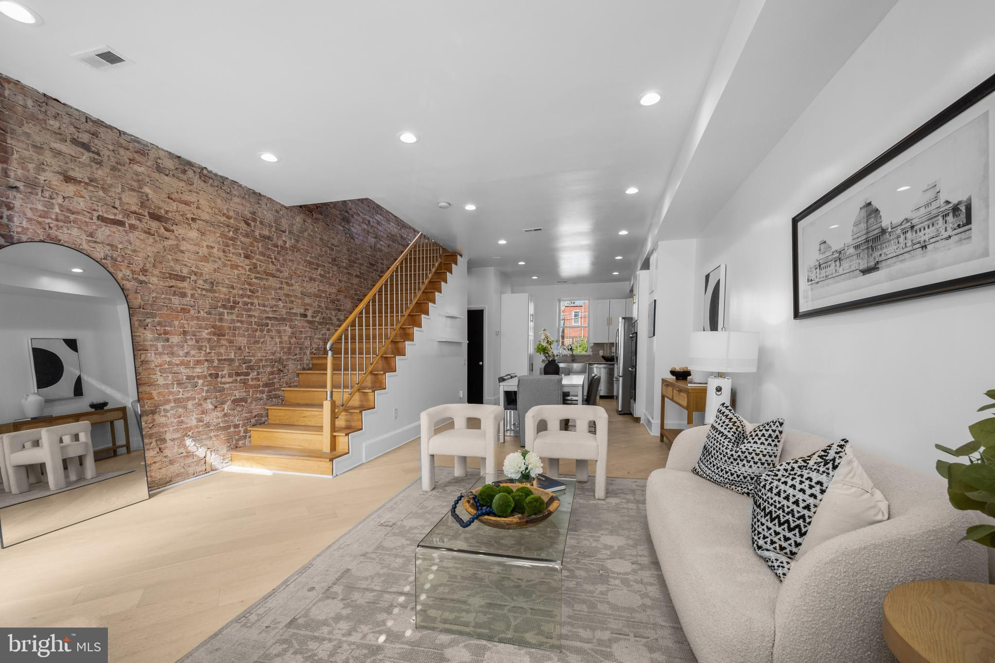 Welcome to this exquisite townhouse in the heart of NW DC! This elegant residence offers 1,892 square feet of thoughtfully designed living space, combining urban sophistication with timeless charm. Step inside to discover gleaming hardwood floors and an open main level that flows seamlessly from the family and dining areas to the rear gourmet kitchen. Accented by an exposed brick wall and modern corded cable railing balusters, the space feels both warm and contemporary. The chefs kitchen features a gas cooktop, stainless steel appliances, marble countertops, and an open layout thats perfect for cooking, entertaining and conversation. Upstairs, youll find two spacious bedrooms and a stunning primary suite with vaulted ceilings, a skylight, and another exposed brick wall. The primary ensuite bathroom offers a spa-like retreat with a glass shower, soaking tub, double sinks, and luxurious marble finishes. The fully finished basement - with both front and rear entrances - adds incredible versatility. With a full bath, its ideal as a guest suite, home office with client access, short-term rental, or your ultimate gym or media space. Out back, enjoy a private fenced outdoor oasis complete with a deck, flagstone patio, lighting, and parking pad for two cars behind an electric garage door. Priced comparably to nearby condos, yet offering more space, privacy, and no condo fees!