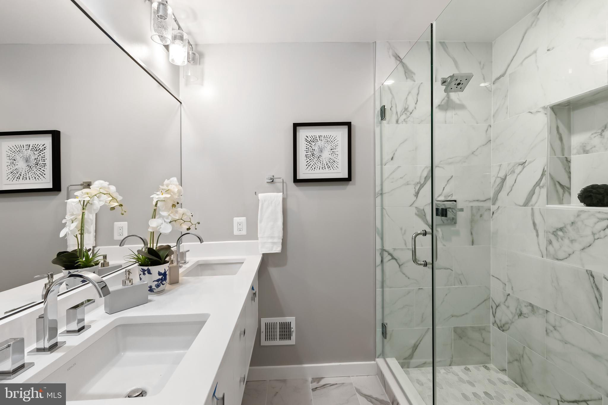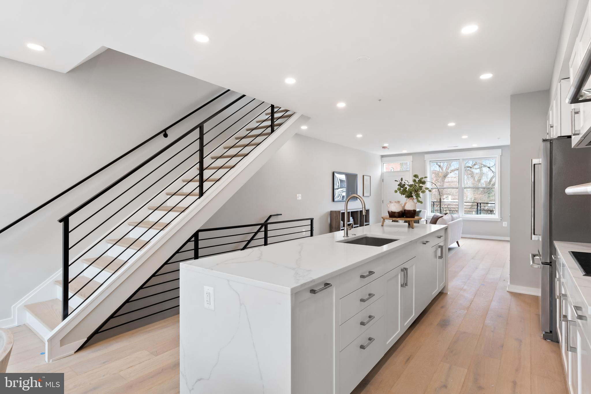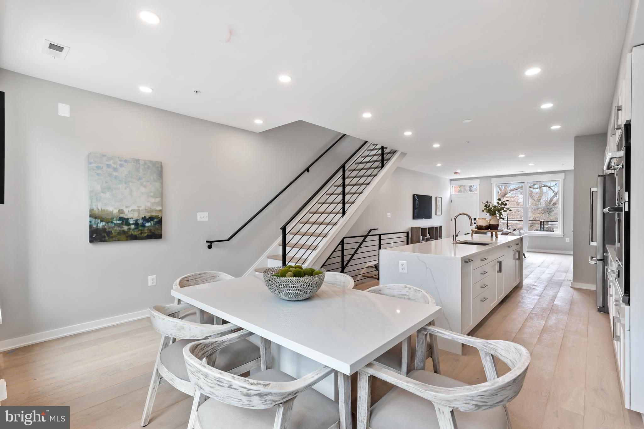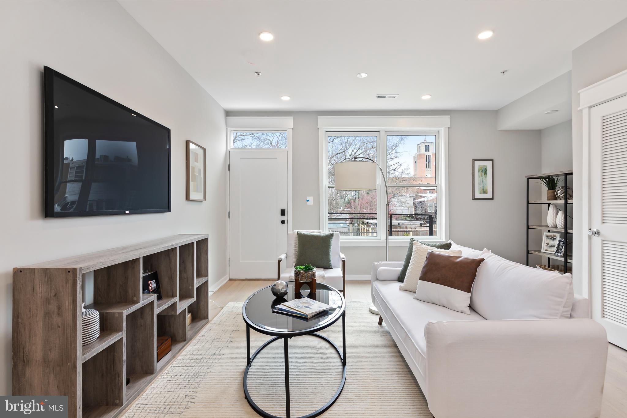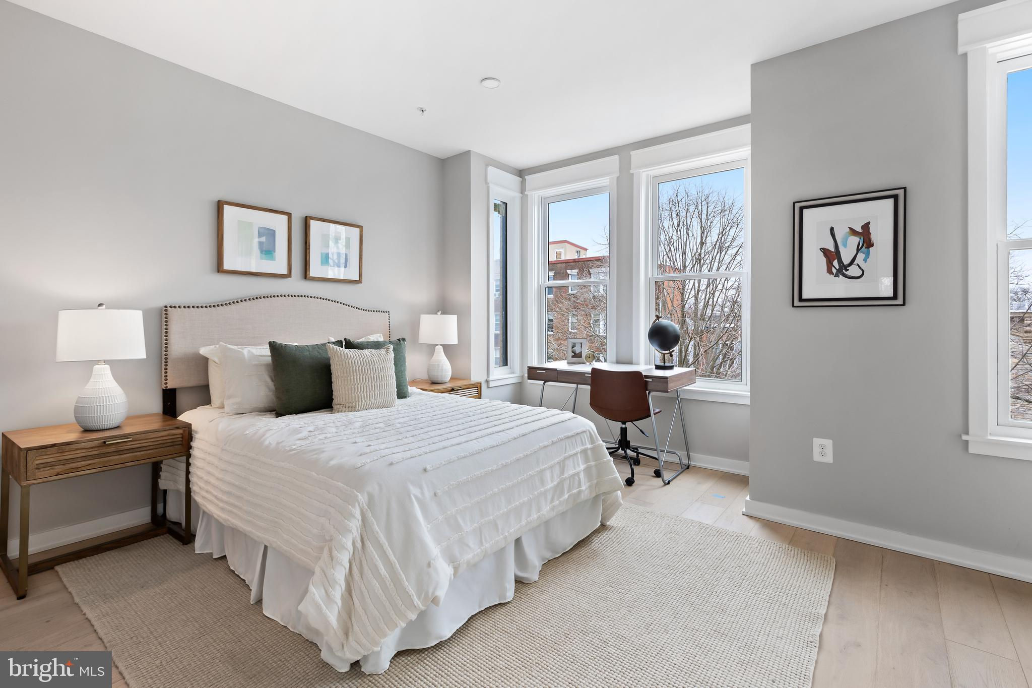 Nestled in the heart of Capitol Hill, this newly constructed property presents exclusive living experience at Ebenezer Row. Spanning two levels offering a spacious 1300 square feet of interior living space, meticulously designed for both comfort and elegance. Residence A offers 2 bedrooms, 2.5 bath residences that are the epitome of modern luxury, featuring high-end Jenn Air Appliances that include an induction cooktop, ensuring a seamless culinary experience. The kitchen, a masterpiece of design, boasts custom J Suss cabinetry and a stunning waterfall island that serves as the centerpiece of an open-plan layout. This space is thoughtfully divided into designated living and dining areas, perfect for entertaining or relaxing in style. The large en-suite bedrooms redefine comfort with their ample closet space, equipped with elfa closet systems for optimal organization. The inclusion of full-size washer and dryers on the bedroom floors adds a layer of convenience, complementing the modern lifestyle Ebenezer Row caters to. The primary bath is a sanctuary of relaxation, featuring a frameless shower and dual vanity, while the guest suite includes a generous tub, offering a spa-like experience with its mosaic tile finishes. Throughout the home, wide plank oak flooring in a matte finish underscores the property's understated elegance. With 9-foot ceilings throughout, this home is bathed in natural light, enhancing the spacious feel, and highlighting the meticulous attention to detail in every aspect of the design and construction. This property represents an unparalleled opportunity to live in a space that perfectly balances modern amenities with luxurious comfort, all within the vibrant heart of Washington, D.C with proximity to Barracks Row, Eastern Market and the Ballpark District. 410 D STREET CONDOMINIUMS HAVE NOT BEEN REGISTERED BY THE D.C. DEPARTMENT OF HOUSING AND COMMUNITY DEVELOPMENT. A CONDOMINIUM UNIT MAY BE RESERVED ON A NONBINDING RESERVATION AGREEMENT, BUT NO CONTRACT OF SALE OR LEASE THAT IS BINDING ON THE PURCHASER MAY BE ENTERED INTO PRIOR TO REGISTRATION