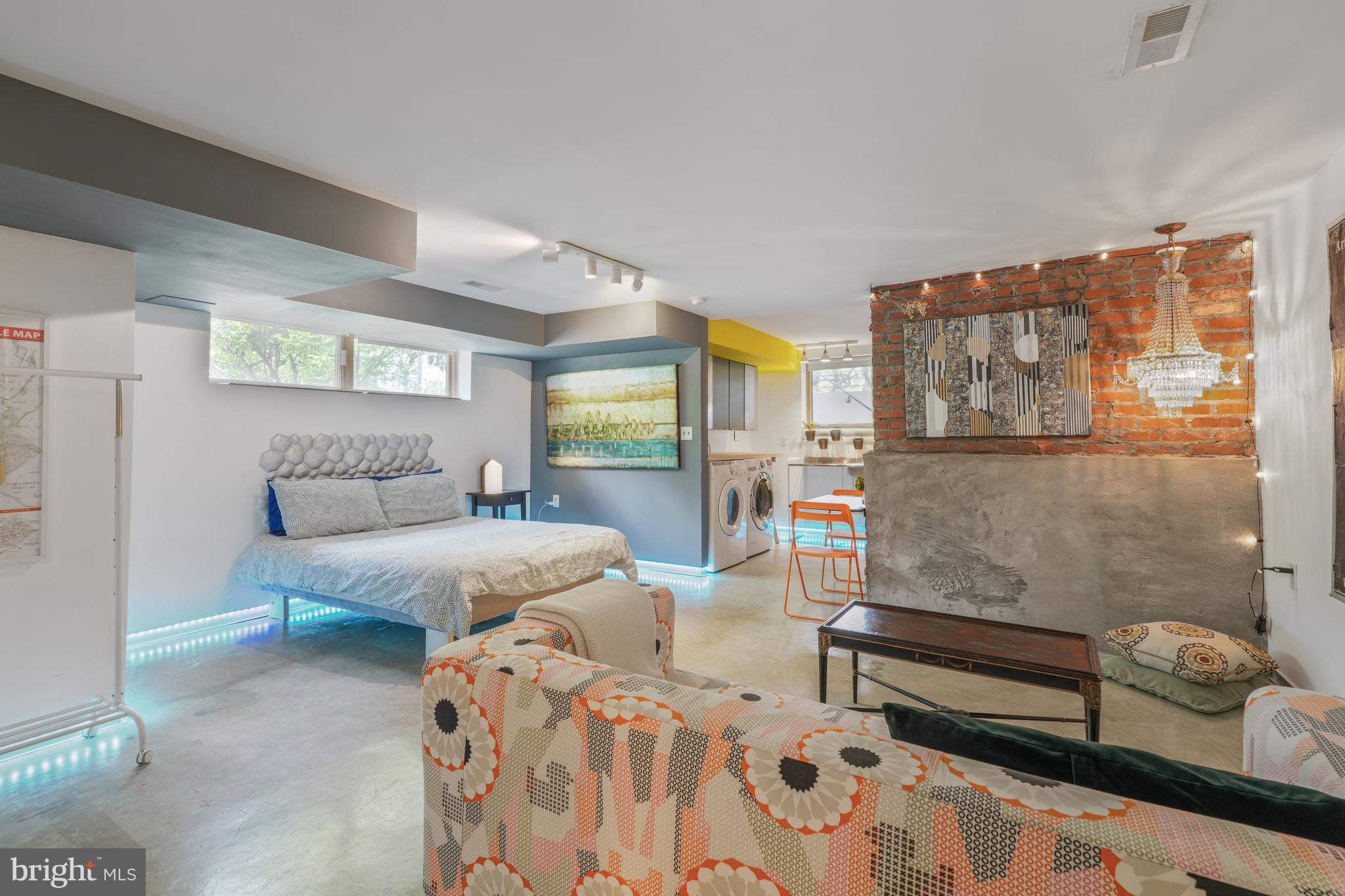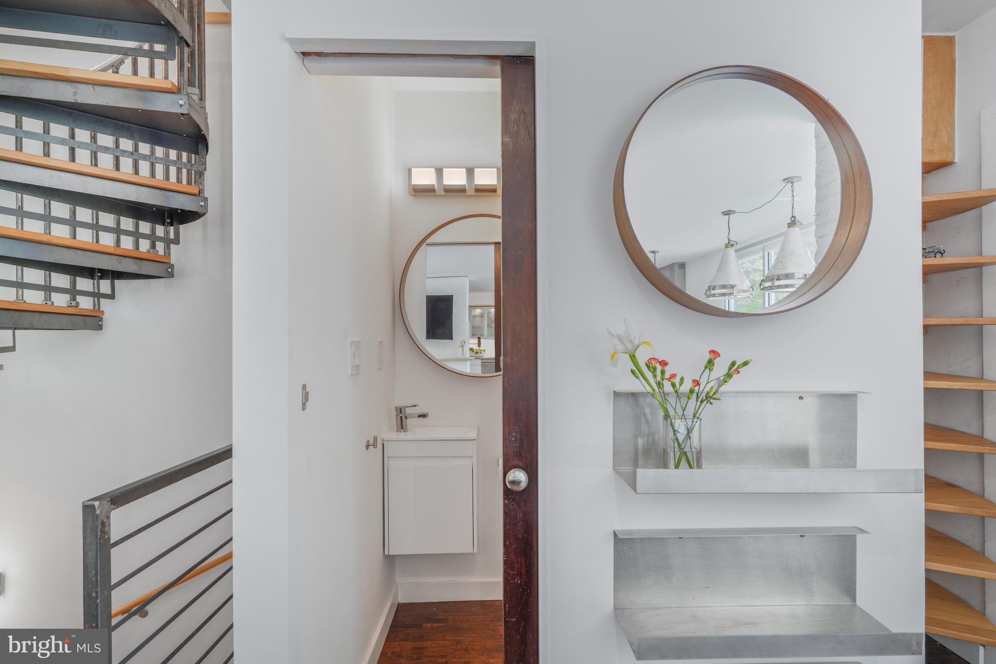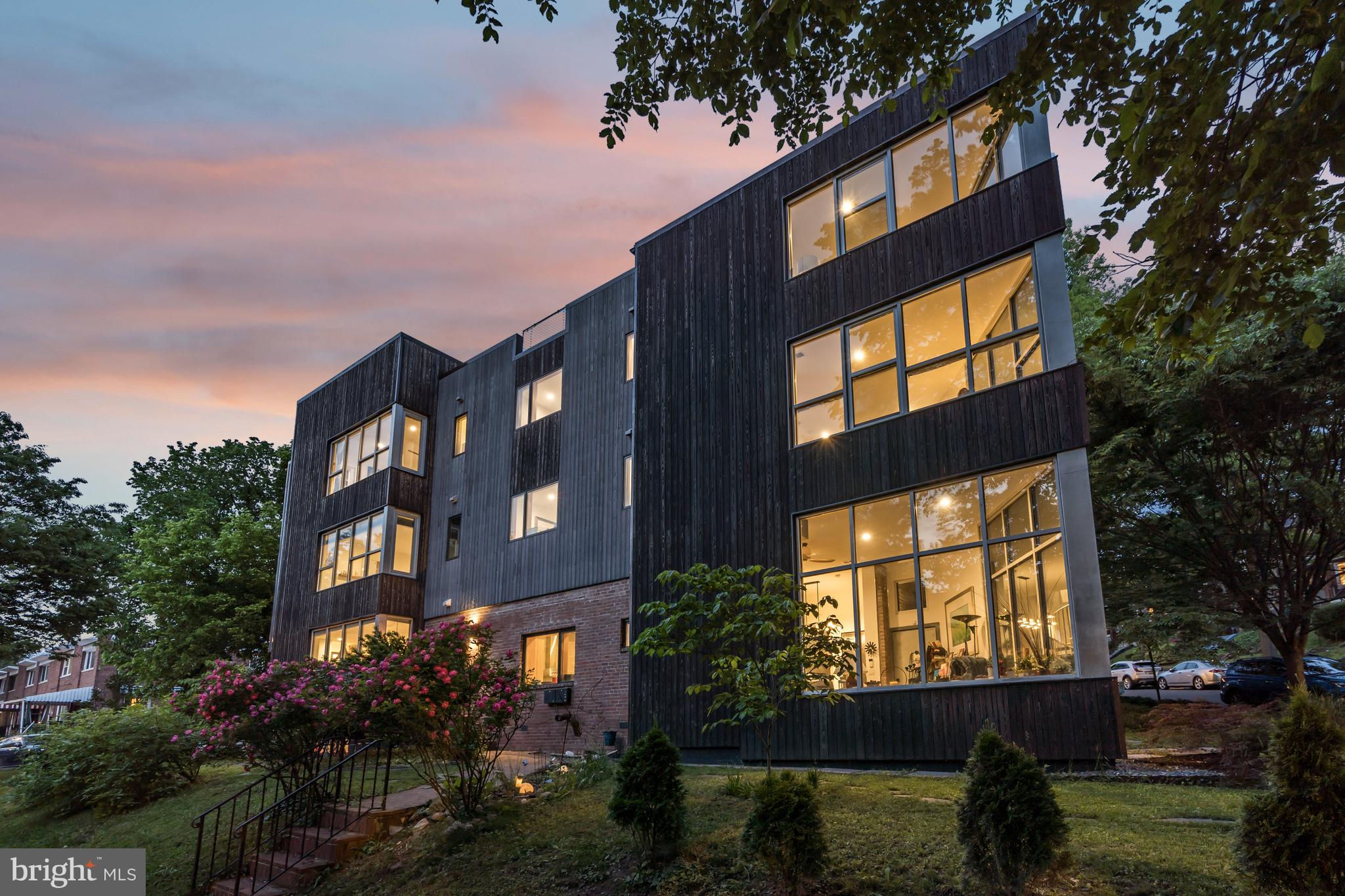Fabulous NEW PRICE on this phenomenal, one-of-a kind residence completed in 2022 by local DC architect-developer in collaboration with the Commission of Fine Arts. Striking, yet unimposing in its elevation, the transformed structure reflects a masterful expansion of the original 1950’s rambler into a two-unit, side-by-side work of art. Welcome to Black Pearl Condominium, where a modest monthly fee takes care of insurance, water/sewer, lawn care, and reserves...so you don't have to! Charred wire-brushed Yakisugi cypress siding, rusted steel trim, and original red brick harmonize to create an exterior façade of rare beauty and longevity. Owing to the dramatic large-scale commercial windows, the interior is awash with natural light. Hevea distressed solid hardwood floors and live edge wood slab accents create a vintage aesthetic, whereas a custom steel spiral staircase and oversized stainless conical ship lights introduce industrial elements. Offering 4-5 bedrooms, 4.5 bathrooms, and the coolest privately entered lower-level guest suite ever, this wonderful 4-level space offers endless versatility and a “detached home” feel. Highlights of the open main level include a dining area recessed into the box bay window featuring built-in ledge seating, a living area with a wood-burning fireplace and glass door access to the exterior, and a front-to-back kitchen with reclaimed wood breakfast bar, butcher block counter tops and a rear egress door, a discreet powder room, and a built-in shoe rack. Upstairs, the vibrant mid-level offers two spacious airy bedrooms -- each with their own beautiful en suite bathroom, and a wide hallway which adds functional space along with a stacked washer/dryer and storage area. The uppermost level boasts stunning tree top views, a primary suite with walk-in closet and a dual entry marble bathroom, a secondary bedroom which offers versatile flex space, and pull-down access to the large, railed rooftop. Downstairs, the lower level delivers gorgeous acid wash concrete flooring, open living and sleeping areas, a full bathroom with rustic wood-look ceramic wall tile, a delightful kitchenette with a second washer & dryer and a side entrance door. Wonderful outdoor offerings include a front paver patio, an enclosed rear tiered deck, and driveway parking. Located near the entrance to Rock Creek Park on a lush tree-lined street near quaint restaurants, Historic 16th Street Heights’ bus routes, and two metro stops, this is an urban oasis.