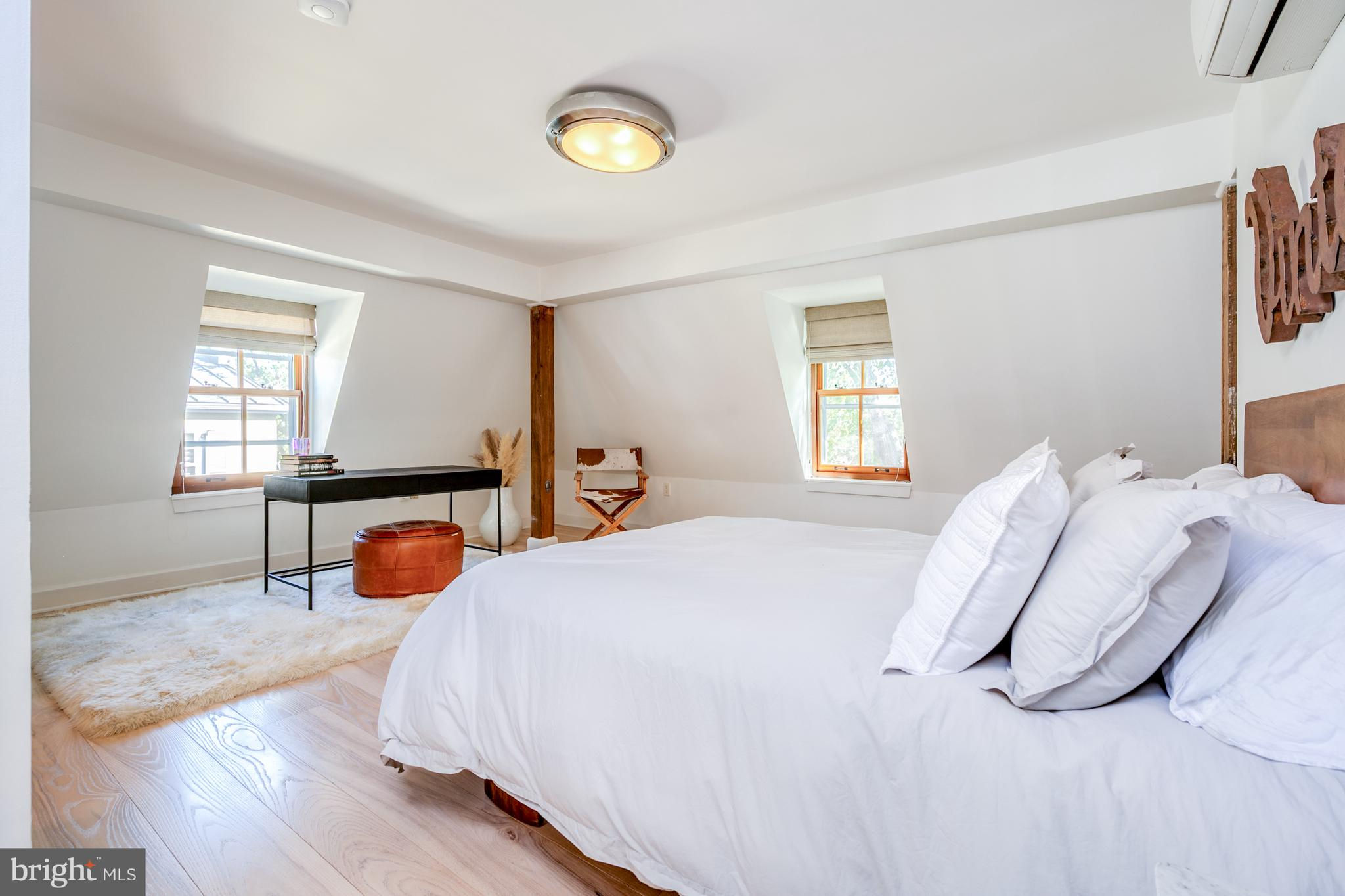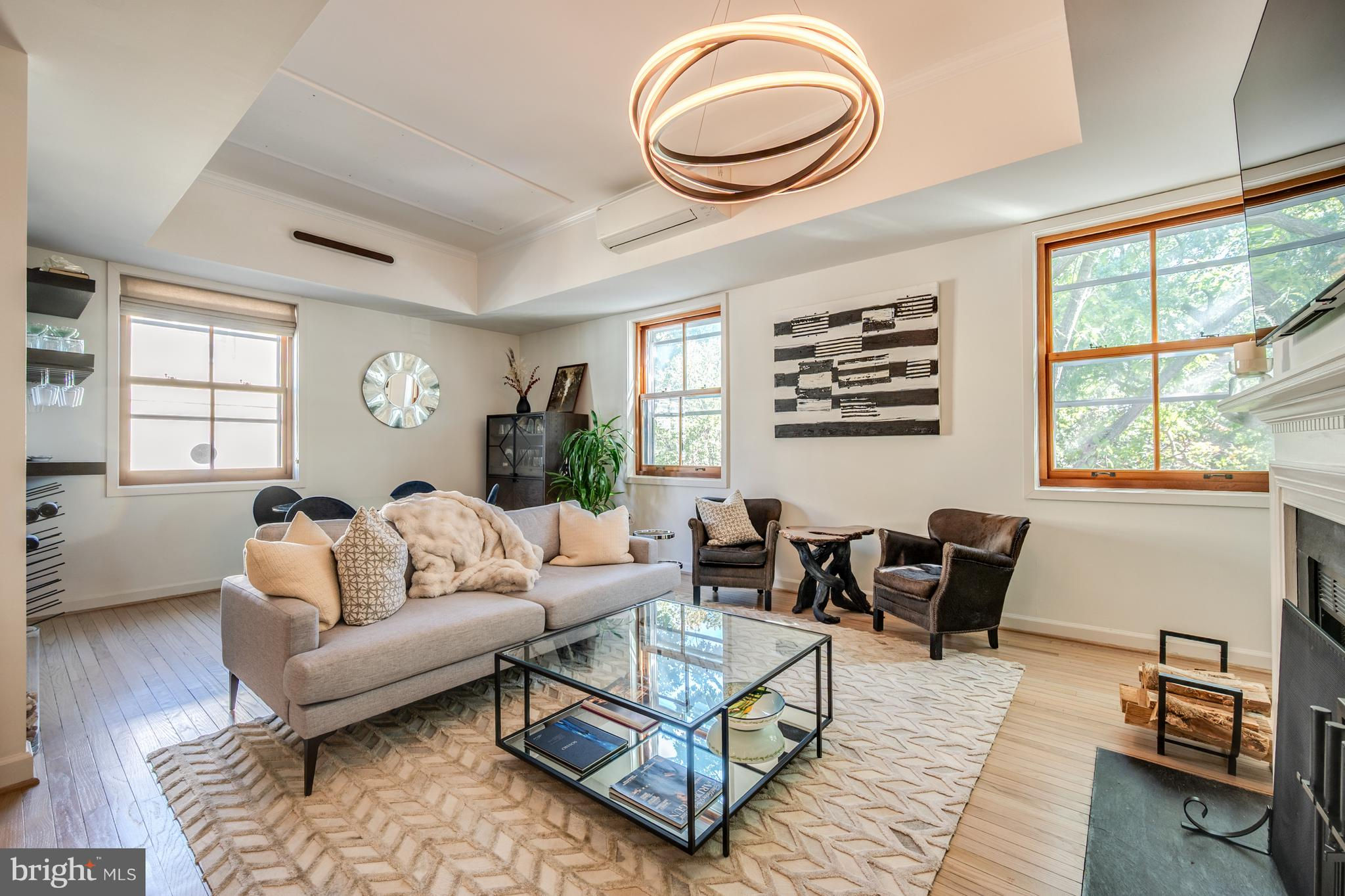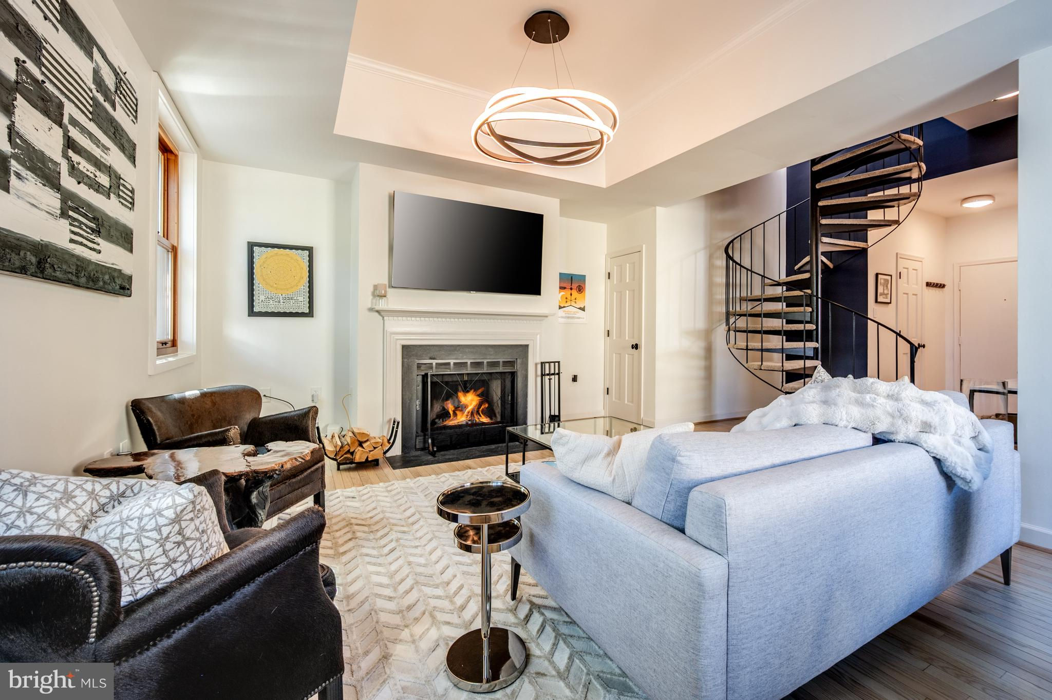 Tucked within a beautifully restored circa-1860s Second Empire building, this one-of-a-kind, two-level residence blends architectural heritage with elevated modern design. Soaring ceilings, custom Parrett mahogany windows, and a wood-burning fireplace bring warmth and authenticity, while the fully renovated kitchen features Bosch and Liebherr appliances, quartz surfaces, and tailored cabinetry that reflects quiet sophistication. Upstairs, the spacious bedroom feels like a private retreat, with exposed beams, expansive closets, and a Devon- and Devon-inspired bath that rivals a boutique hotel—complete with heated floors, and Samuel Heath fixtures. A graceful wrought-iron staircase leads to a private rooftop terrace, perfect for morning coffee or evening sunsets over Old Town’s historic skyline. Covered parking, premium finishes, and a location just three blocks from King Street create an effortless connection to the city’s best dining, shops, and riverfront paths. This is Old Town living—refined, intimate, and unmistakably special.