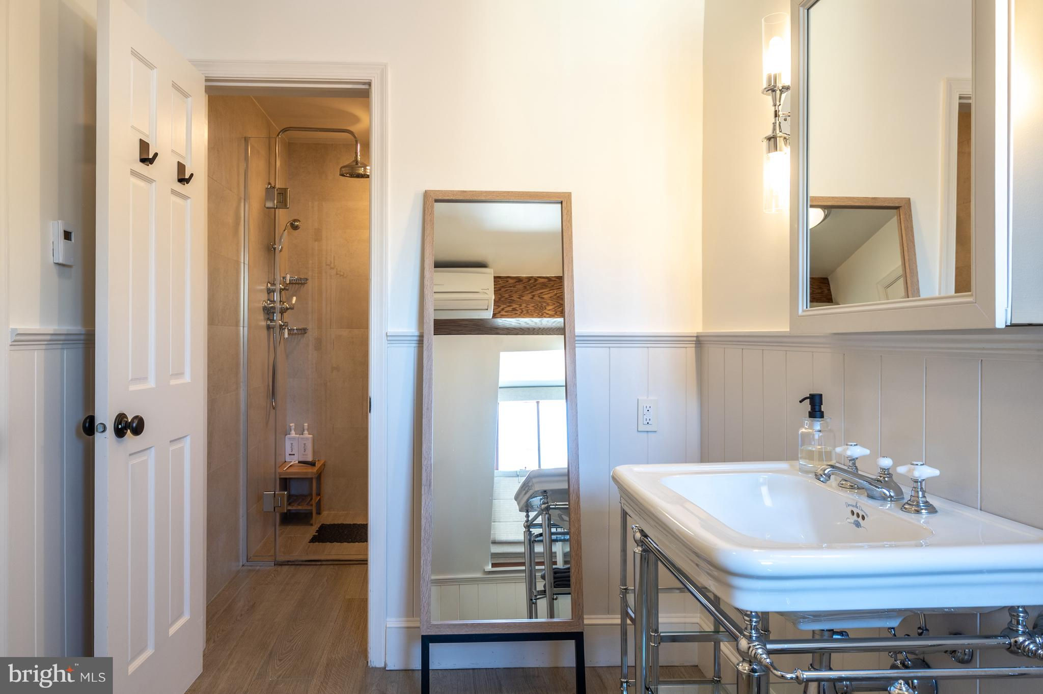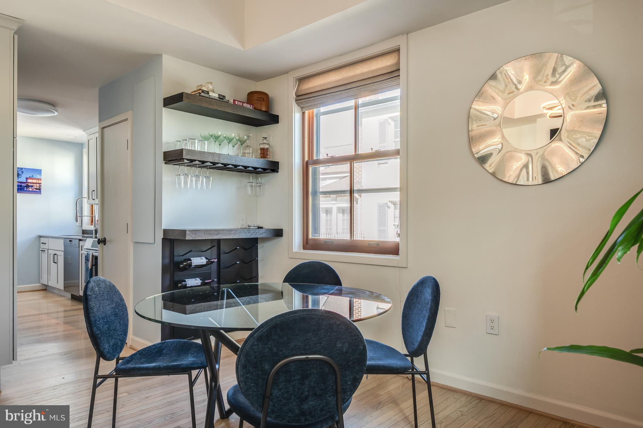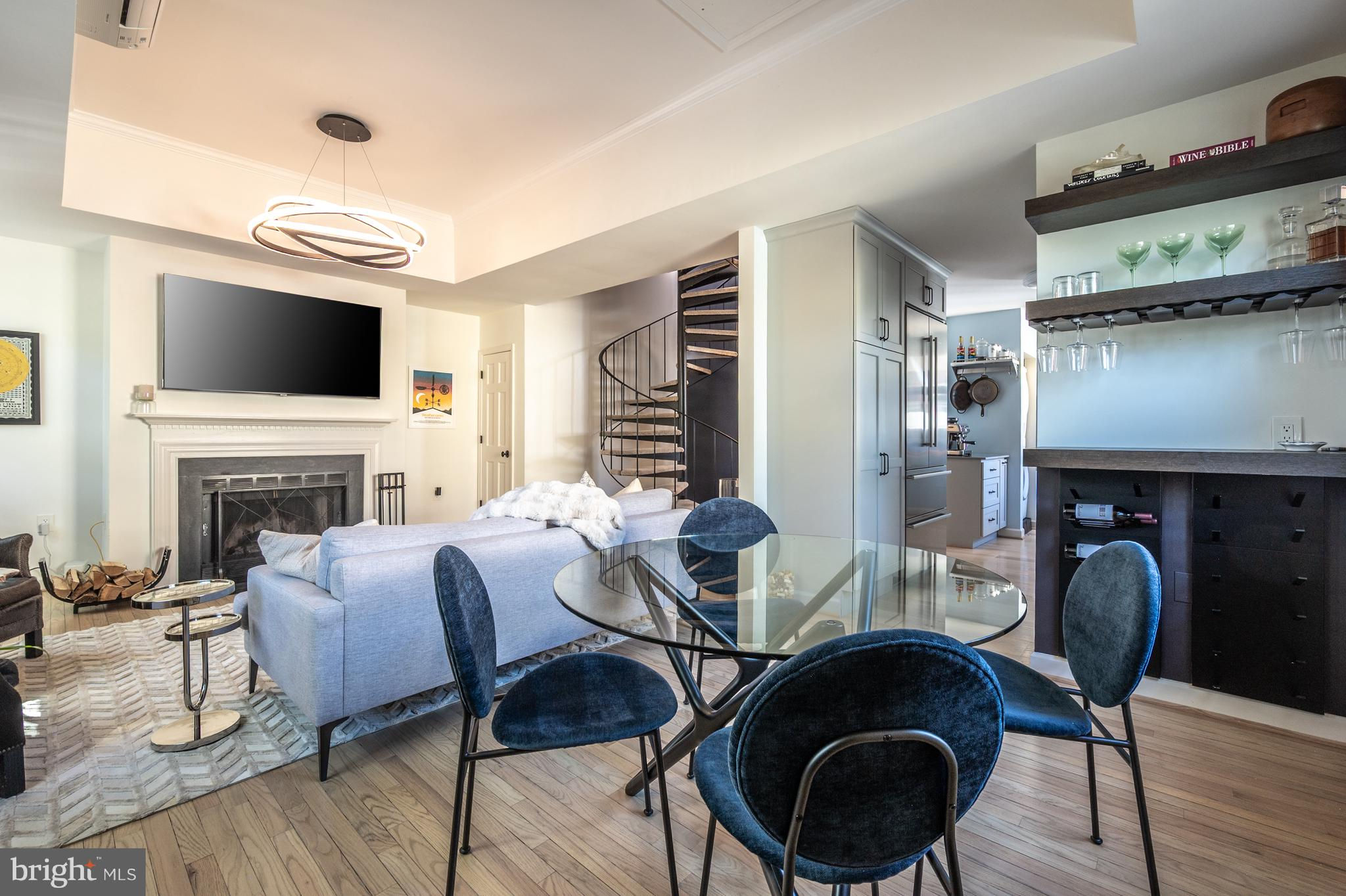 Tucked within a beautifully restored circa-1860s Second Empire building, this one-of-a-kind, two-level residence blends architectural heritage with elevated modern design. Soaring ceilings, custom Parrett mahogany windows, and a wood-burning fireplace bring warmth and authenticity, while the fully renovated kitchen features Bosch and Liebherr appliances, quartz surfaces, and tailored cabinetry that reflects quiet sophistication. Upstairs, the spacious bedroom feels like a private retreat, with exposed beams, expansive closets, and a Devon- and Devon-inspired bath that rivals a boutique hotel—complete with heated floors, and Samuel Heath fixtures. A graceful wrought-iron staircase leads to a private rooftop terrace, perfect for morning coffee or evening sunsets over Old Town’s historic skyline. Covered parking, premium finishes, and a location just three blocks from King Street create an effortless connection to the city’s best dining, shops, and riverfront paths. This is Old Town living—refined, intimate, and unmistakably special.
