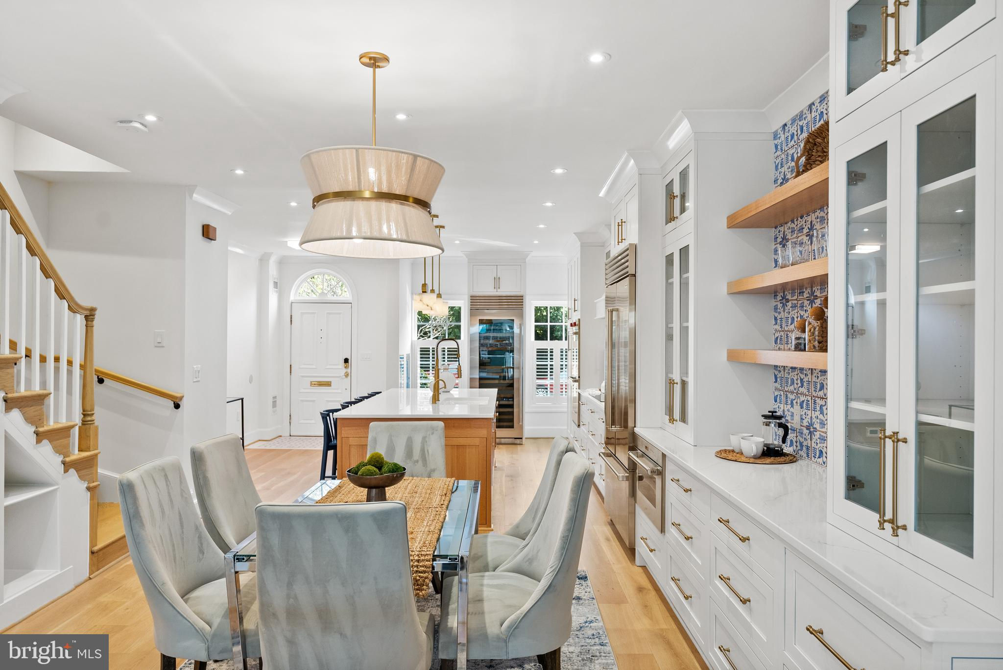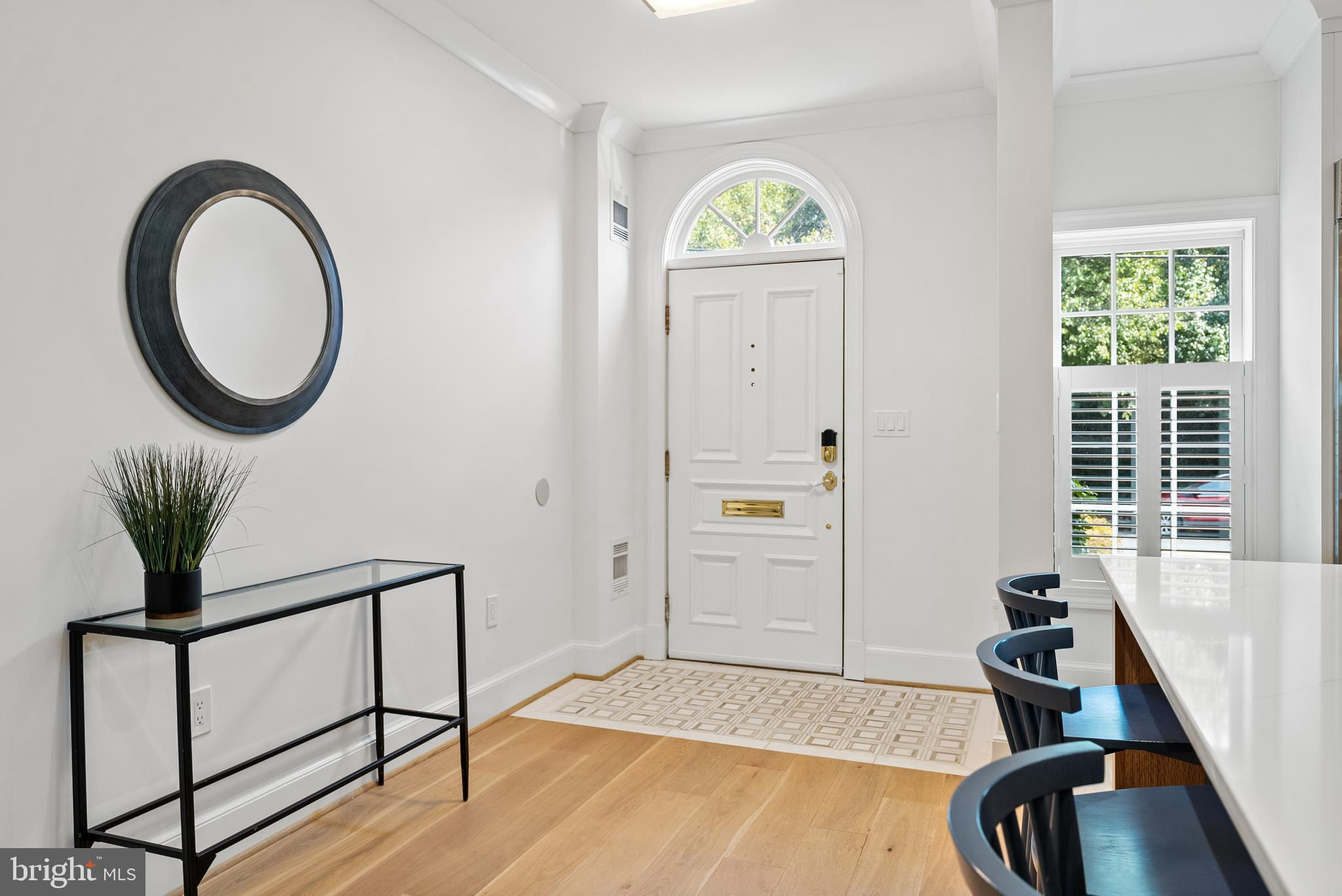 New Price in the Heart of Old Town! Modern design meets timeless charm in this brilliantly reimagined 3,272 square feet townhome located in Old Town’s highly sought-after Southeast Quadrant. Thoughtfully redesigned, the home offers four bedrooms, including both a primary bedroom suite and secondary bedroom suite, plus dedicated office and gym spaces that can easily be converted into a fifth bedroom. With over-sized bedrooms throughout, bathrooms on every level and elegant open living and dining rooms, back patio and roof terrace, the layout is both functional, luxurious and an entertainer's delight. Ultra-high-end finishes include 7” wide plank German white oak flooring throughout, custom Decora inset cabinetry, and a hand-painted tile kitchen backsplash (with an extra box of tile included). The kitchen is outfitted with top-of-the-line appliances: a 36” Wolf induction cooktop, Wolf double wall ovens and microwave, a 42” Sub-Zero refrigerator, 30” Sub-Zero wine refrigerator, 24” Cove dishwasher, and a 18” Miele dishwasher. All major systems have been fully replaced. Electrical upgrades include complete rewiring, two new panels, a 400 AMP service upgrade, and a rough-in for a high-capacity EV charger. The plumbing system is entirely new, including piping and a new water heater. The HVAC has also been fully overhauled, featuring a state-of-the-art Carrier Infinity system, Carrier mini-split on the fourth floor, new ductwork for both air supply and return, and remote booster fans for the cooktop hood and dryer vents. Structural improvements include new thermal insulation in all exterior walls and soundproof/fire-resistant insulation throughout interior walls. All drywall has been upgraded to ⅝” commercial-grade thickness for enhanced soundproofing and fire safety. Outdoor spaces have been upgraded with new hardscaping on the main-level rear patio and a fully rebuilt fourth-floor rooftop terrace, including new waterproof membrane, proper sloping, and a Trex Signature deck. One dedicated off-street parking space is included. Ideally located just blocks to the waterfront, King Street’s shops and restaurants, King St Metro/Amtrak, and major commuting routes, this home offers a rare opportunity to enjoy modern luxury in the heart of historic Old Town.