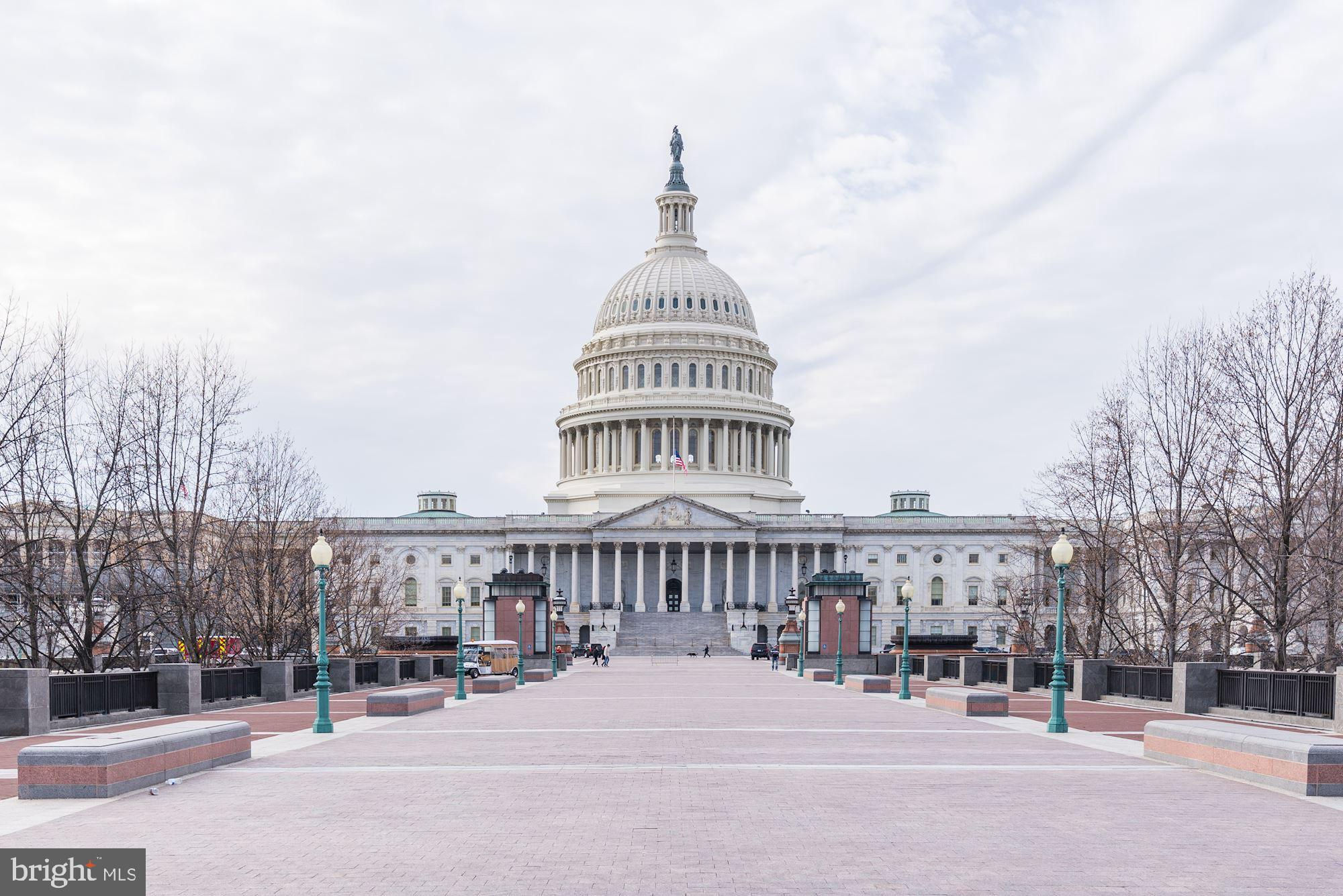 Massive price adjustment of $250,000. Steps from the U.S. Capitol Complex. Just two blocks from the U.S. Capitol and minutes from the House of Representatives, 414 3rd Street SE offers an unmatched opportunity to live at the very heart of Capitol Hill. This end-unit, two-unit rowhome offers an incredible opportunity and unparalleled location. Whether you choose to live in one unit and rent the other, rent both units to maximize your investment property, or reimagine the entire property as a grand single-family home, the possibilities are as flexible as they are rare. The main living level upstairs is designed with a thoughtful balance of formality and flow. The kitchen is positioned at the front of the home, allowing the elevated dining room to take center stage. Terraced levels provide a subtle separation between rooms, offering the openness of a modern layout while preserving the charm of distinct spaces. The living room, anchored by a wood-burning fireplace and framed with floor-to-ceiling built-in bookshelves, creates an inviting atmosphere equally suited for entertaining or quiet evenings at home. The top floor holds two generously sized bedrooms, each with its own en-suite bath. The primary suite overlooks Providence Park through a canopy of mature trees, filling the space with dappled afternoon light, while the east-facing rear suite greets the morning sun. A central hall enhances functionality with a linen closet, laundry room, and mechanicals tucked neatly away. The ground-level apartment is a standout one-bedroom, one-bath residence with nine-foot ceilings, large windows, parquet floors, and a full walk-out elevation. Bright, open, and separately metered, it is ideal as a high-value rental unit or as a distinguished private office. Outdoors, a landscaped and hardscaped courtyard leads to a true two-car garage, an extraordinary amenity in Capitol Hill. The location, however, is what truly sets this property apart. Nestled in the shadow of the Capitol, it offers proximity to the corridors of power while being surrounded by the neighborhood’s signature parks, shops, and restaurants. Pennsylvania Avenue is two blocks north, Eastern Market and Barracks Row are just three blocks east, and the Navy Yard lies four blocks to the south. 414 3rd Street SE is more than an address—it is an extraordinary opportunity to create your Capitol Hill dream home at the very center of Washington.