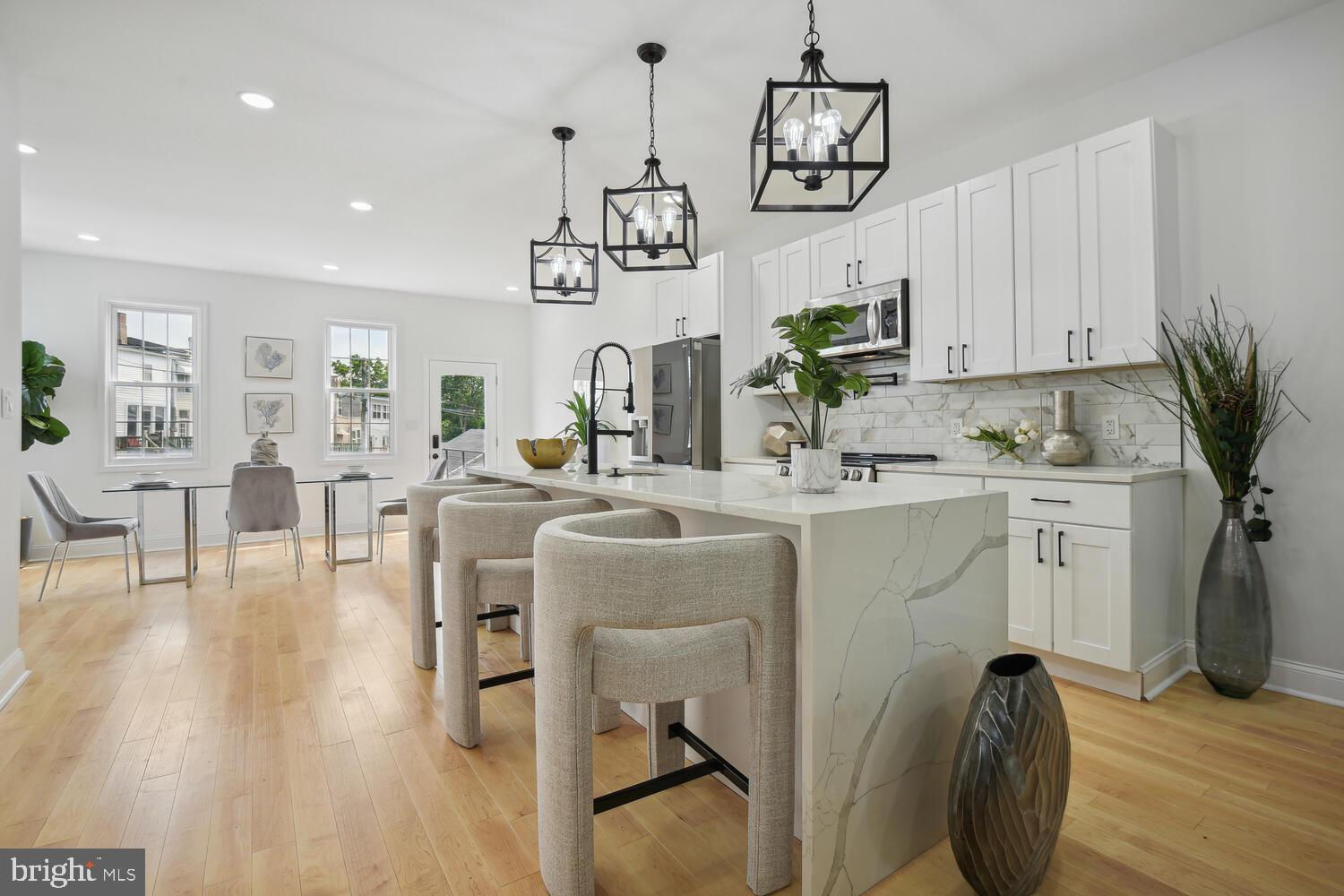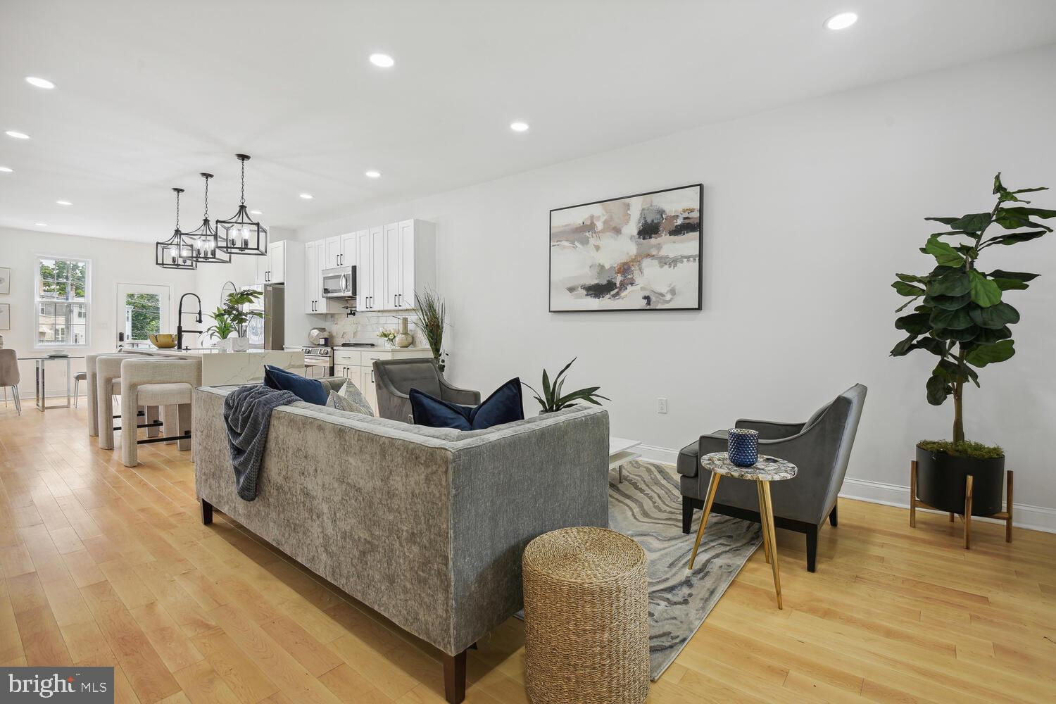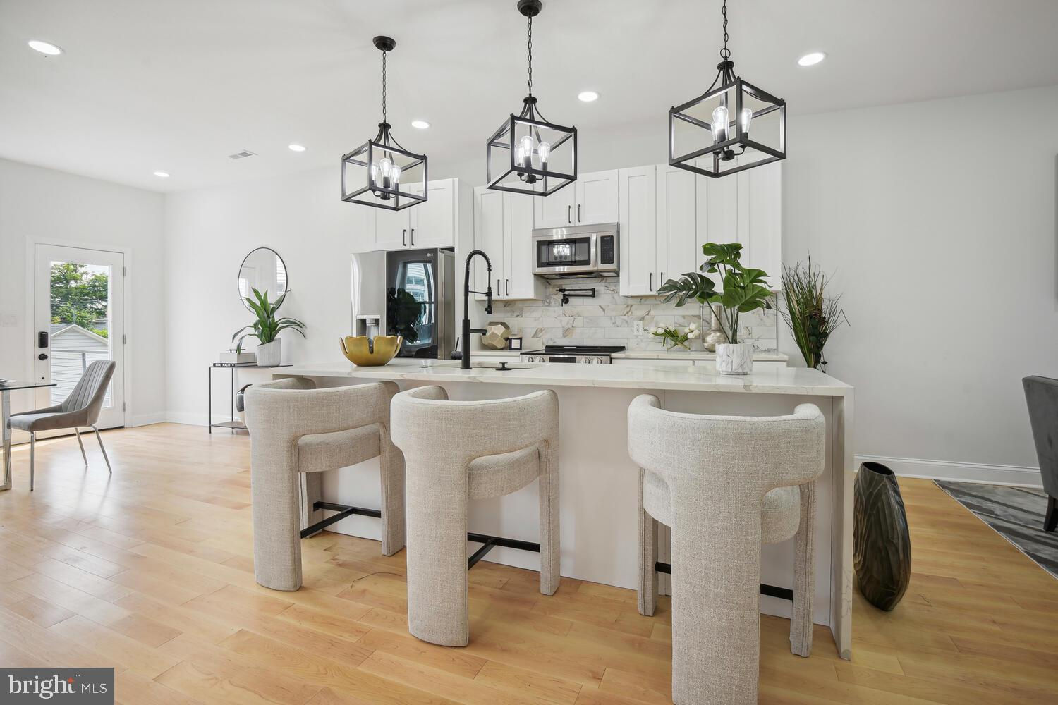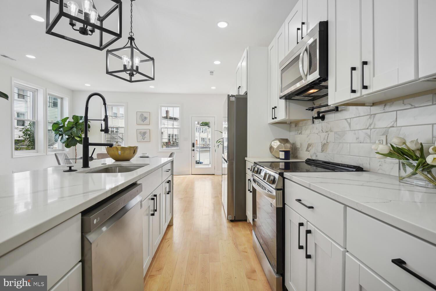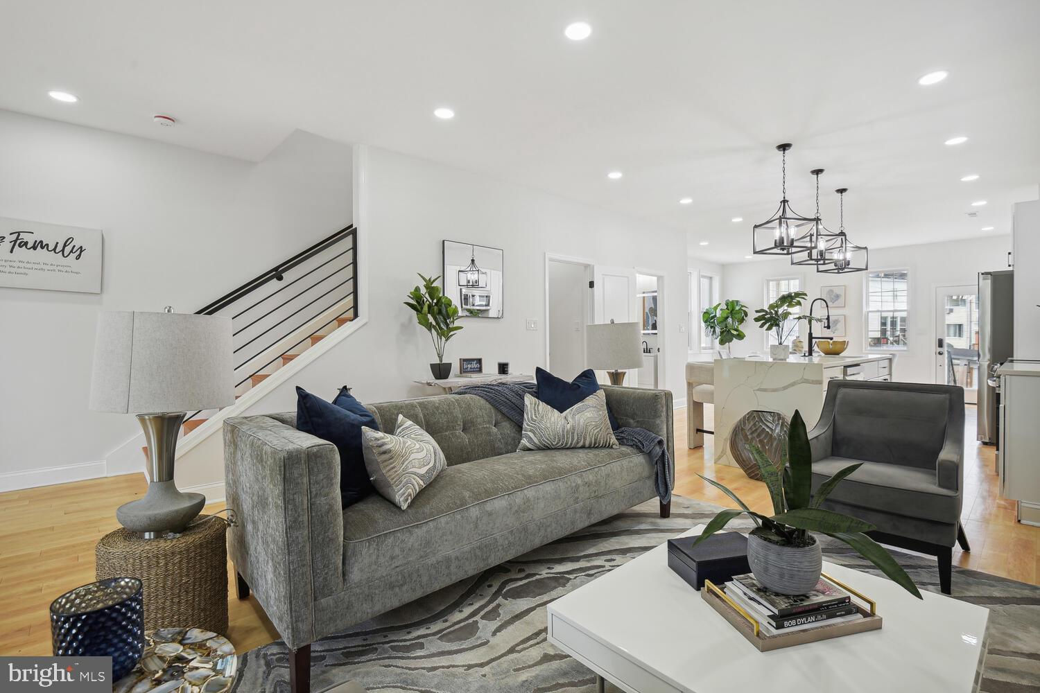 A custom-renovated home in the prestigious neighborhood of Petworth. With four bedrooms, three full bathrooms, and one-half bathroom, this modern-designed residence spans over 2,400+ square feet of luxurious living space. As you enter, you will be enthralled by the attention to detail and craftsmanship. The primary floor features an open-concept living room with bamboo hardwood floors, custom metal railings, soaring 10” ceilings, a powder room, and a collection of exquisite finishes. The living/kitchen/dining room areas provide an array of natural light and striking design. As you transcend from the living room, prepare to be captivated by its gourmet eat-in kitchen, a culinary sanctuary designed to delight even the most discriminating chef. Featuring an 8’ center island embellished with waterfall quartz countertops, high-end stainless-steel appliances, pot filler, and ample storage. From the kitchen/dining area is access to a 20x16 enclosed deck for privacy and entertaining. The second floor is home to three bedrooms, two full spa-like bathrooms, and a full-size washer/washer laundry room. The spacious en-suite primary bedroom offers a walkout balcony. The two remaining bedrooms share the common area bath with custom marble and ceramic finishes. The lower level features a family/recreation room, 4th bedroom or office, full spa-like bathroom, laundry room, and fully functional kitchen including stove, dishwasher, microwave, and fitted full-size refrigerator. Could easily serve as an income-producing unit. This home offers a perfect blend of tranquility and convenience. Easy access to parks, coffee shops, Petworth-Metro Station, and a host of restaurants and bars. Don't miss this opportunity to own one of Petworth’s most unique custom-built homes.