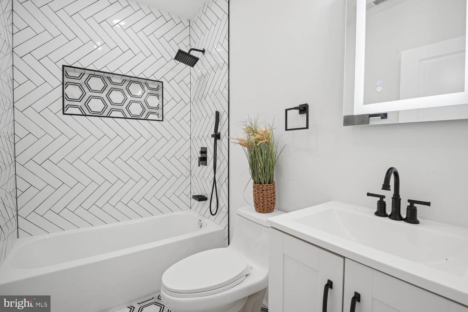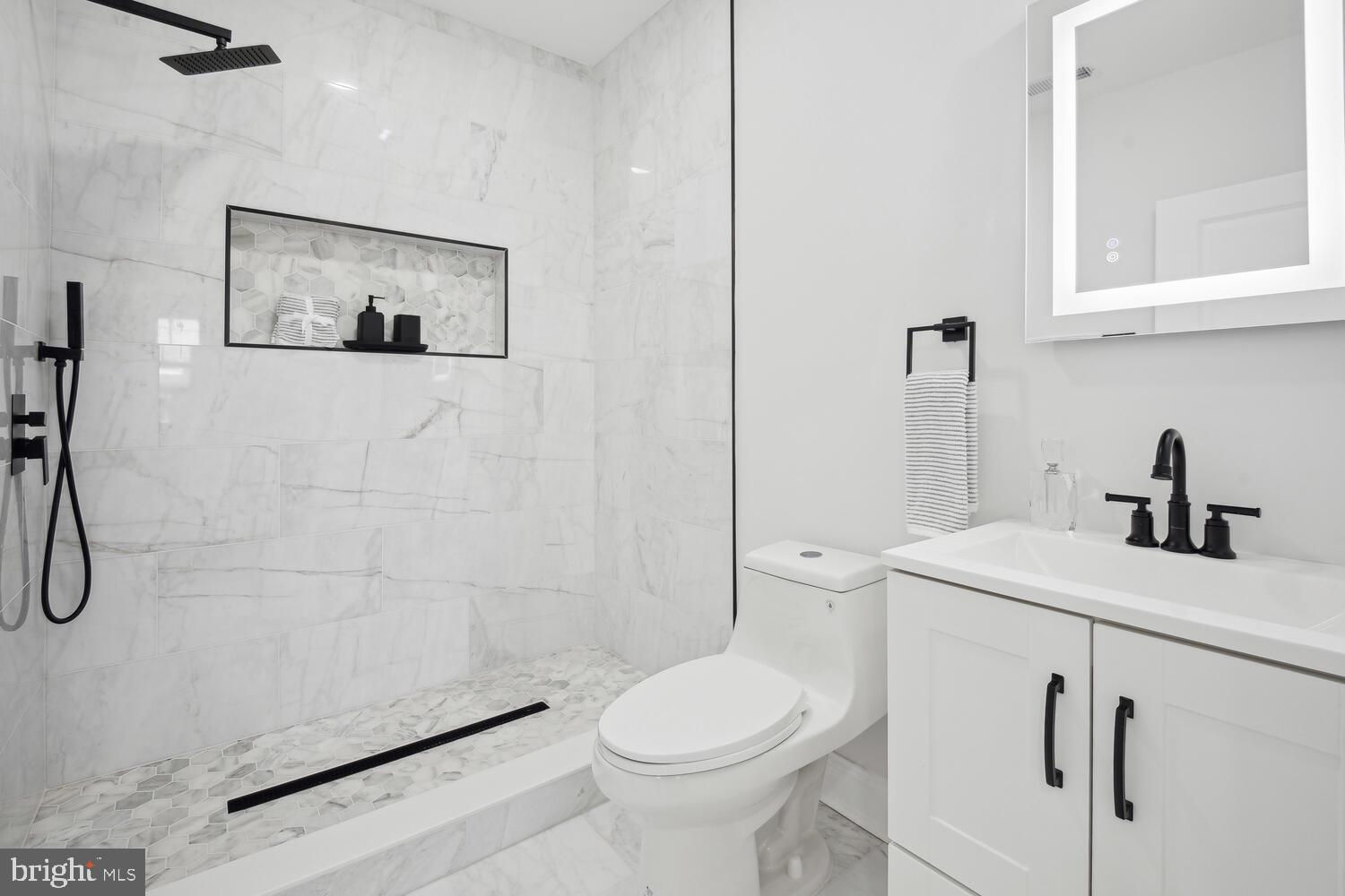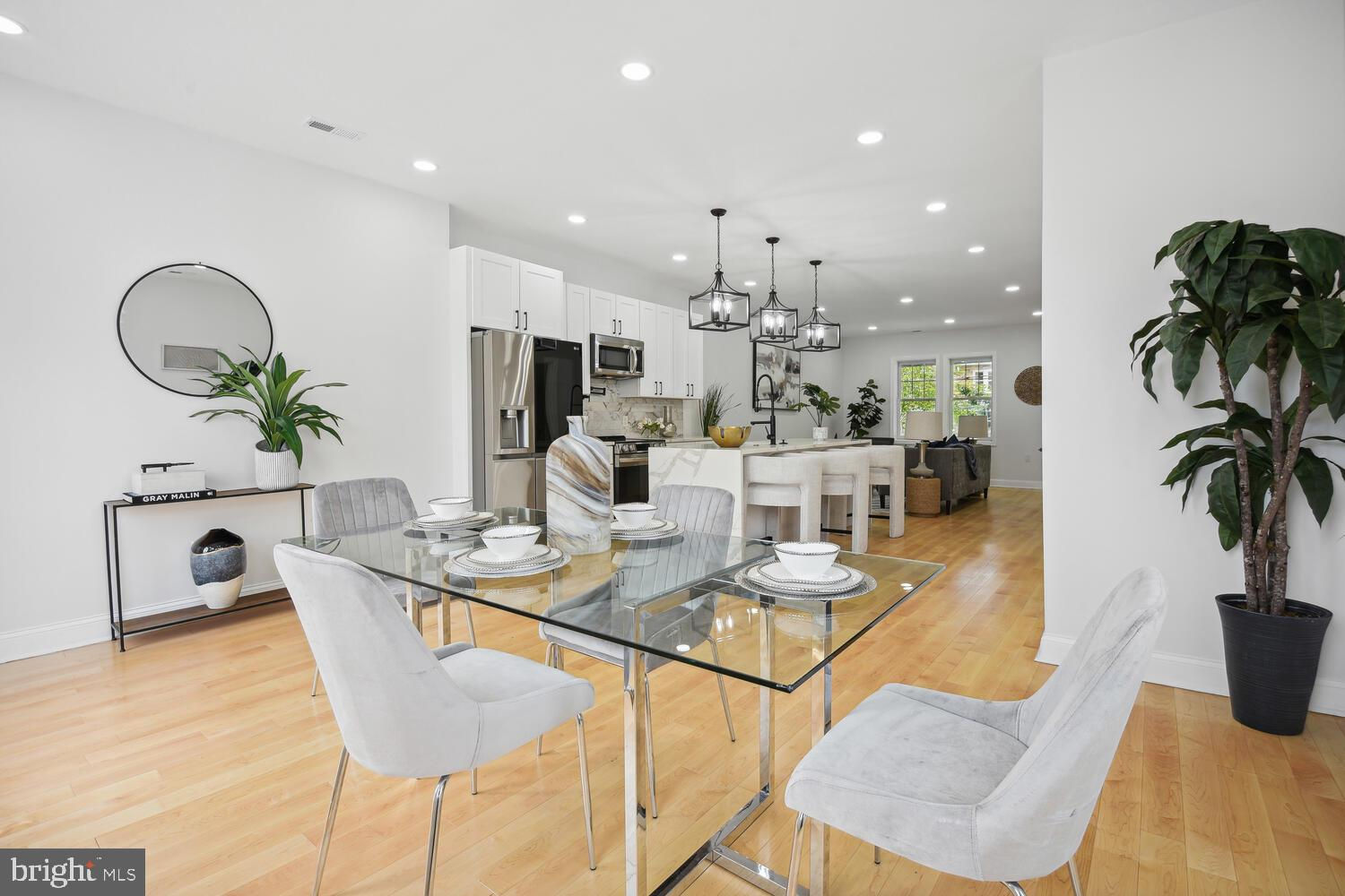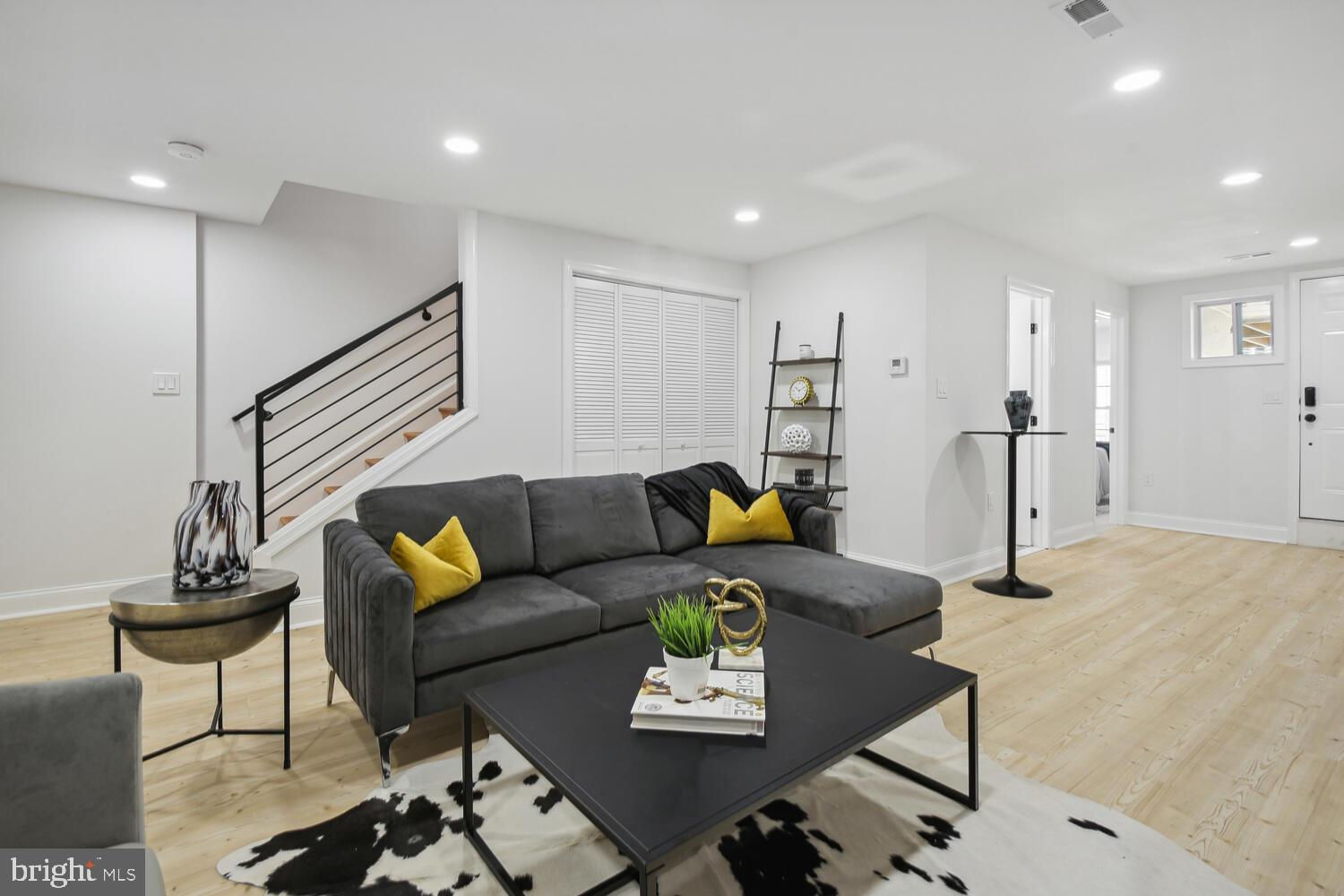 A custom-renovated home in the prestigious neighborhood of Petworth. With four bedrooms, three full bathrooms, and one-half bathroom, this modern-designed residence spans over 2,400+ square feet of luxurious living space. As you enter, you will be enthralled by the attention to detail and craftsmanship. The primary floor features an open-concept living room with bamboo hardwood floors, custom metal railings, soaring 10” ceilings, a powder room, and a collection of exquisite finishes. The living/kitchen/dining room areas provide an array of natural light and striking design. As you transcend from the living room, prepare to be captivated by its gourmet eat-in kitchen, a culinary sanctuary designed to delight even the most discriminating chef. Featuring an 8’ center island embellished with waterfall quartz countertops, high-end stainless-steel appliances, pot filler, and ample storage. From the kitchen/dining area is access to a 20x16 enclosed deck for privacy and entertaining. The second floor is home to three bedrooms, two full spa-like bathrooms, and a full-size washer/washer laundry room. The spacious en-suite primary bedroom offers a walkout balcony. The two remaining bedrooms share the common area bath with custom marble and ceramic finishes. The lower level features a family/recreation room, 4th bedroom or office, full spa-like bathroom, laundry room, and fully functional kitchen including stove, dishwasher, microwave, and fitted full-size refrigerator. Could easily serve as an income-producing unit. This home offers a perfect blend of tranquility and convenience. Easy access to parks, coffee shops, Petworth-Metro Station, and a host of restaurants and bars. Don't miss this opportunity to own one of Petworth’s most unique custom-built homes.