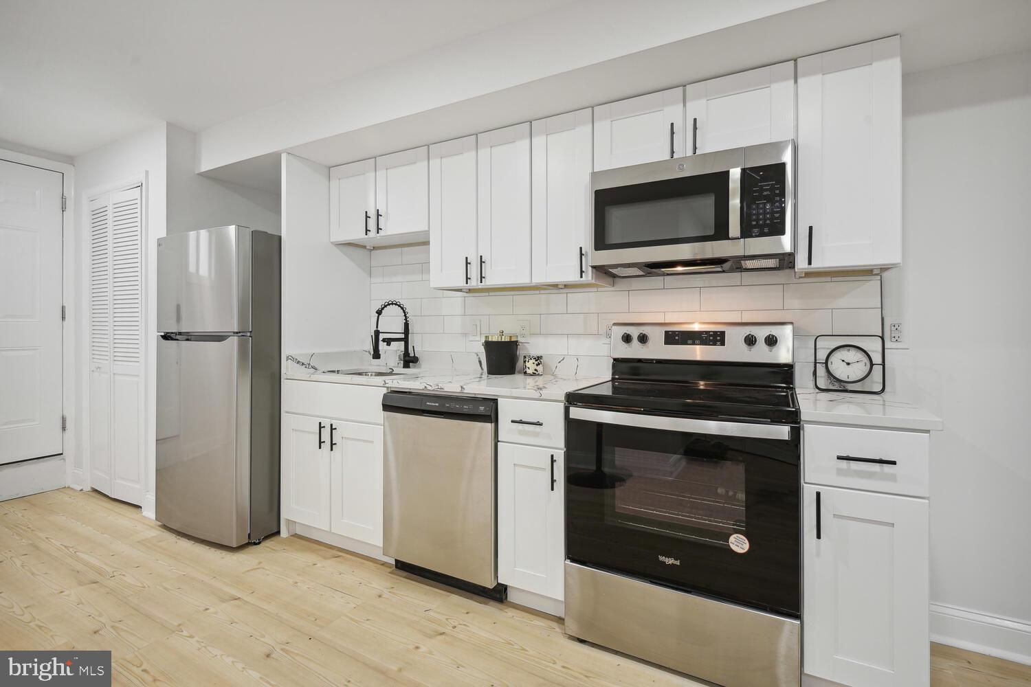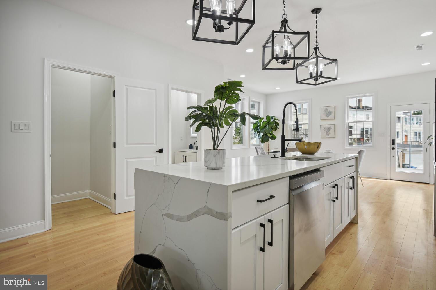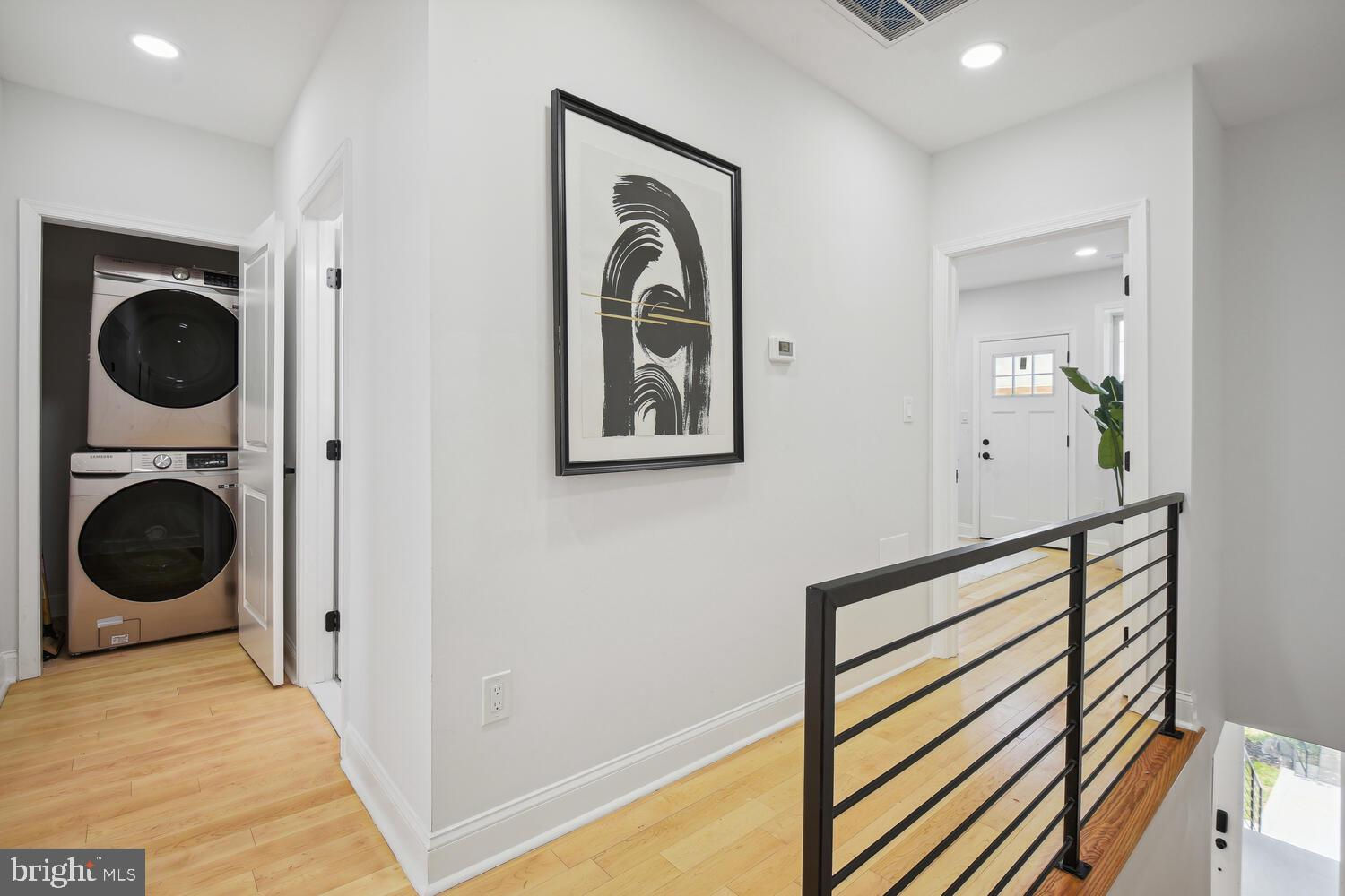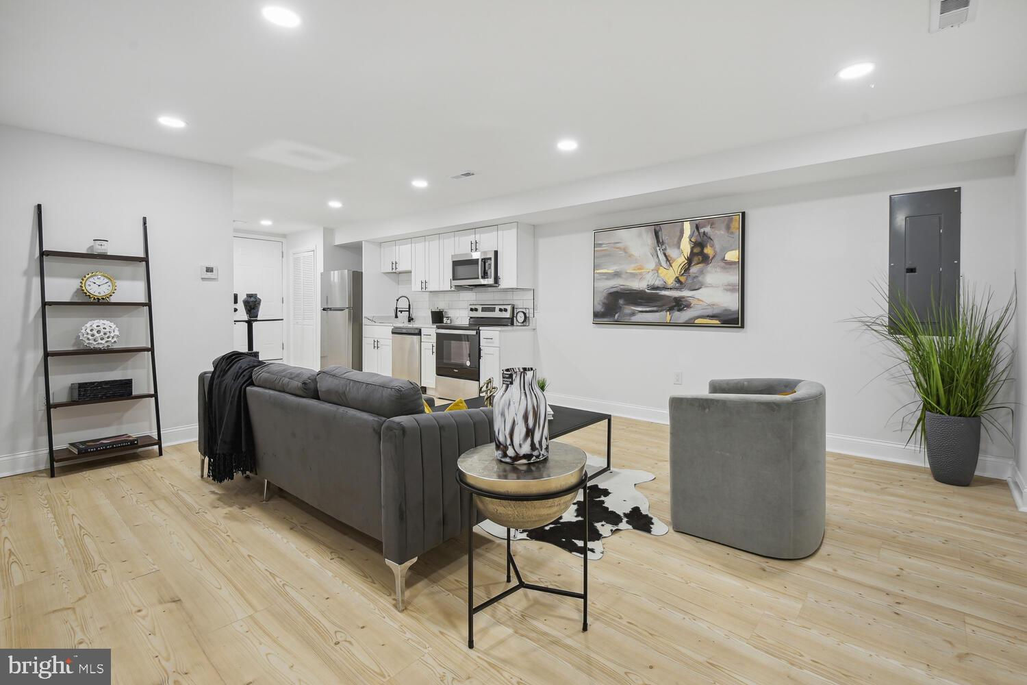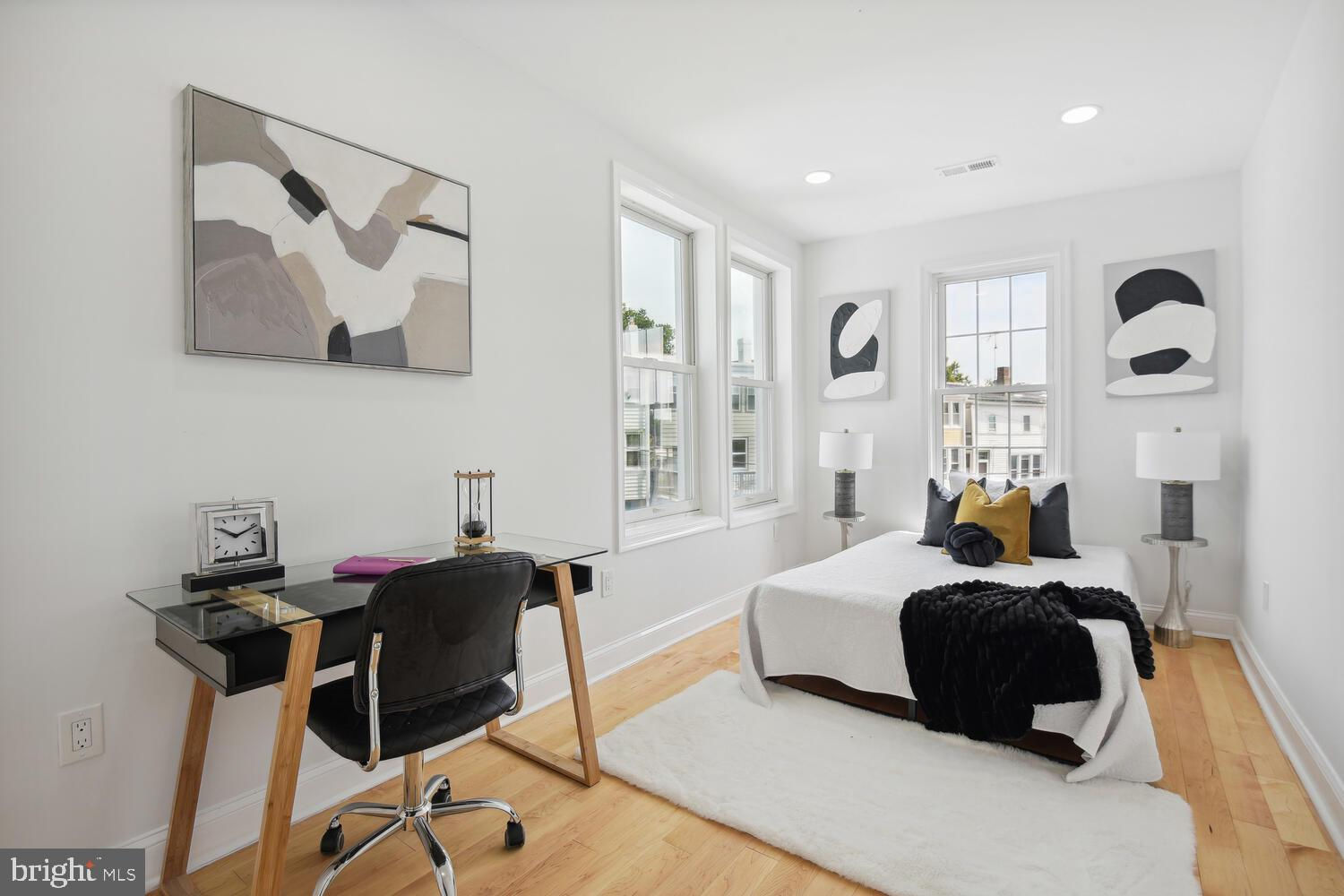 A custom-renovated home in the prestigious neighborhood of Petworth. With four bedrooms, three full bathrooms, and one-half bathroom, this modern-designed residence spans over 2,400+ square feet of luxurious living space. As you enter, you will be enthralled by the attention to detail and craftsmanship. The primary floor features an open-concept living room with bamboo hardwood floors, custom metal railings, soaring 10” ceilings, a powder room, and a collection of exquisite finishes. The living/kitchen/dining room areas provide an array of natural light and striking design. As you transcend from the living room, prepare to be captivated by its gourmet eat-in kitchen, a culinary sanctuary designed to delight even the most discriminating chef. Featuring an 8’ center island embellished with waterfall quartz countertops, high-end stainless-steel appliances, pot filler, and ample storage. From the kitchen/dining area is access to a 20x16 enclosed deck for privacy and entertaining. The second floor is home to three bedrooms, two full spa-like bathrooms, and a full-size washer/washer laundry room. The spacious en-suite primary bedroom offers a walkout balcony. The two remaining bedrooms share the common area bath with custom marble and ceramic finishes. The lower level features a family/recreation room, 4th bedroom or office, full spa-like bathroom, laundry room, and fully functional kitchen including stove, dishwasher, microwave, and fitted full-size refrigerator. Could easily serve as an income-producing unit. This home offers a perfect blend of tranquility and convenience. Easy access to parks, coffee shops, Petworth-Metro Station, and a host of restaurants and bars. Don't miss this opportunity to own one of Petworth’s most unique custom-built homes.