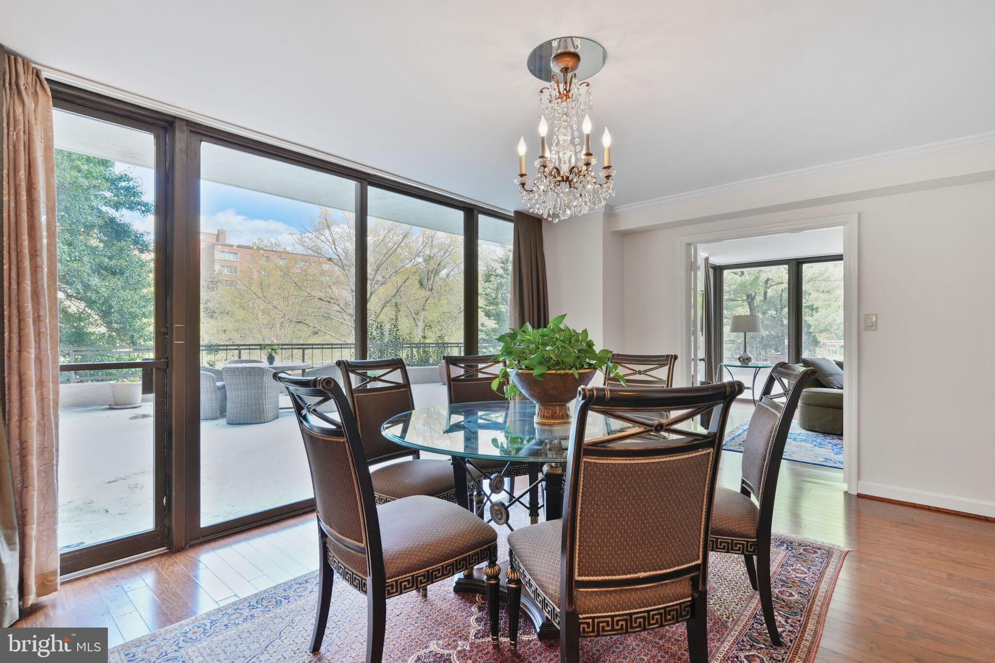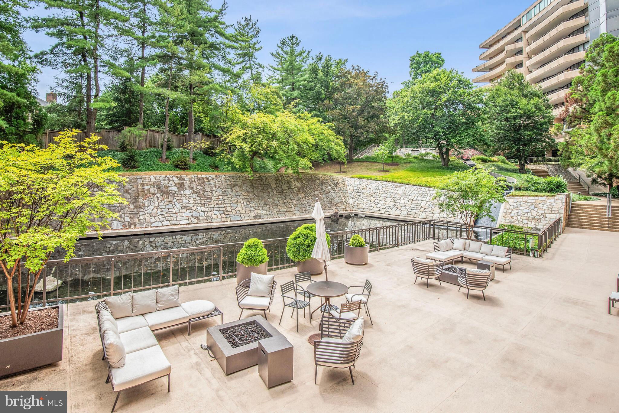 Welcome to the prestigious Foxhall Condominium in Wesley Heights! We are delighted to present to you an impressively elegant 3 BR, 3.5 bath corner unit that features a wrap around terrace, 3 balconies, 2 parking spaces and storage unit!! This duplex unit with hardwood floors, has a total of 2,717 SQ/FT on 2 levels with circular staircase, feels like a comfortable single family home with a large private terrace. The floor plan is perfect for indoor and outdoor entertaining and relaxation. The main level features a gracious marble foyer with circular staircase that leads to multiple living spaces where you can enjoy open views through floor to ceiling windows inviting abundant natural light into every room. Elegant formal living room with a decorative fireplace and built in bookcase opens to the terrace, a lovely family/ TV room with wet bar opens to the terrace and a formal dining room that also opens to the terrace. The kitchen is brand new with white cabinets, Quartz counter tops, stainless appliances, pantry, washer and dryer. The powder room is conveniently located off the foyer. The main level has multiple closets for additional storage. The upper level features 3 bedrooms with 3 full bathrooms and a huge linen closet. A primary suite with a dressing area, walk in closet, all marble bathroom, a spacious bedroom with wall closets open to a balcony. The 2nd and 3rd bedrooms have private balconies and full bathrooms. The Foxhall condominium, is nestled on seven acres of lush and landscaped grounds in the desirable Wesley Heights neighborhood of Washington DC epitomizes luxury living. This pet-friendly residence offers unparalleled convenience with a gatekeeper, front doorman, 24 hour front desk reception, and a dedicated onsite management and maintenance teams. The residents enjoy exceptional amenities including an indoor swimming pool, sauna, a tennis court, a well-equipped gym, and professionally landscaped grounds with serene water features. The monthly fee includes all utilities, internet & cable, ensuring a worry-free living experience. Ideally located with quick access to Georgetown and downtown, residents enjoy effortless access to premier shopping, dining, banks, gourmet coffee shops, and the scenic Glover Archbold hiking trails. Experience unparalleled elegance and comfort in this exceptional Foxhall Condominium unit!