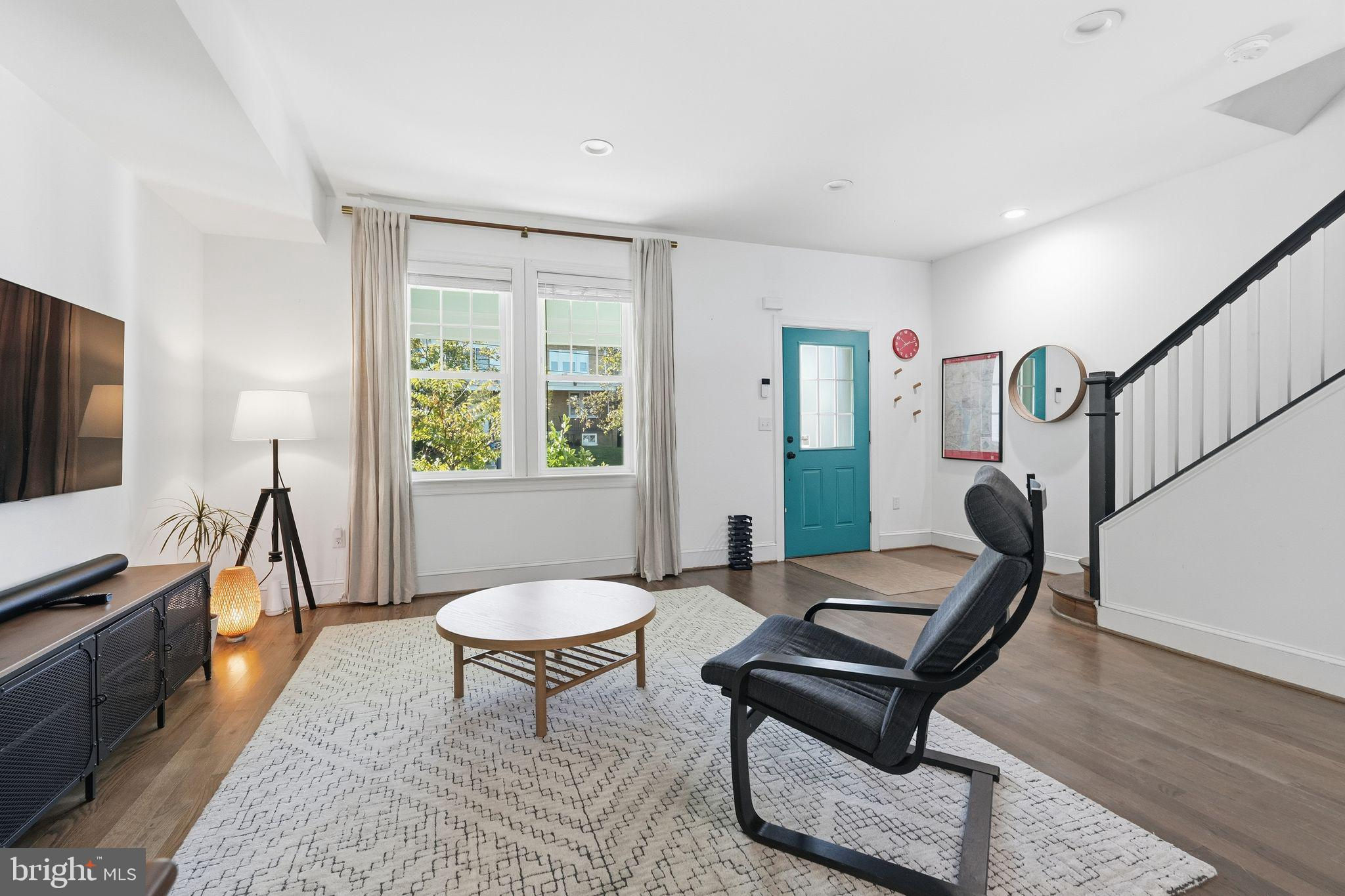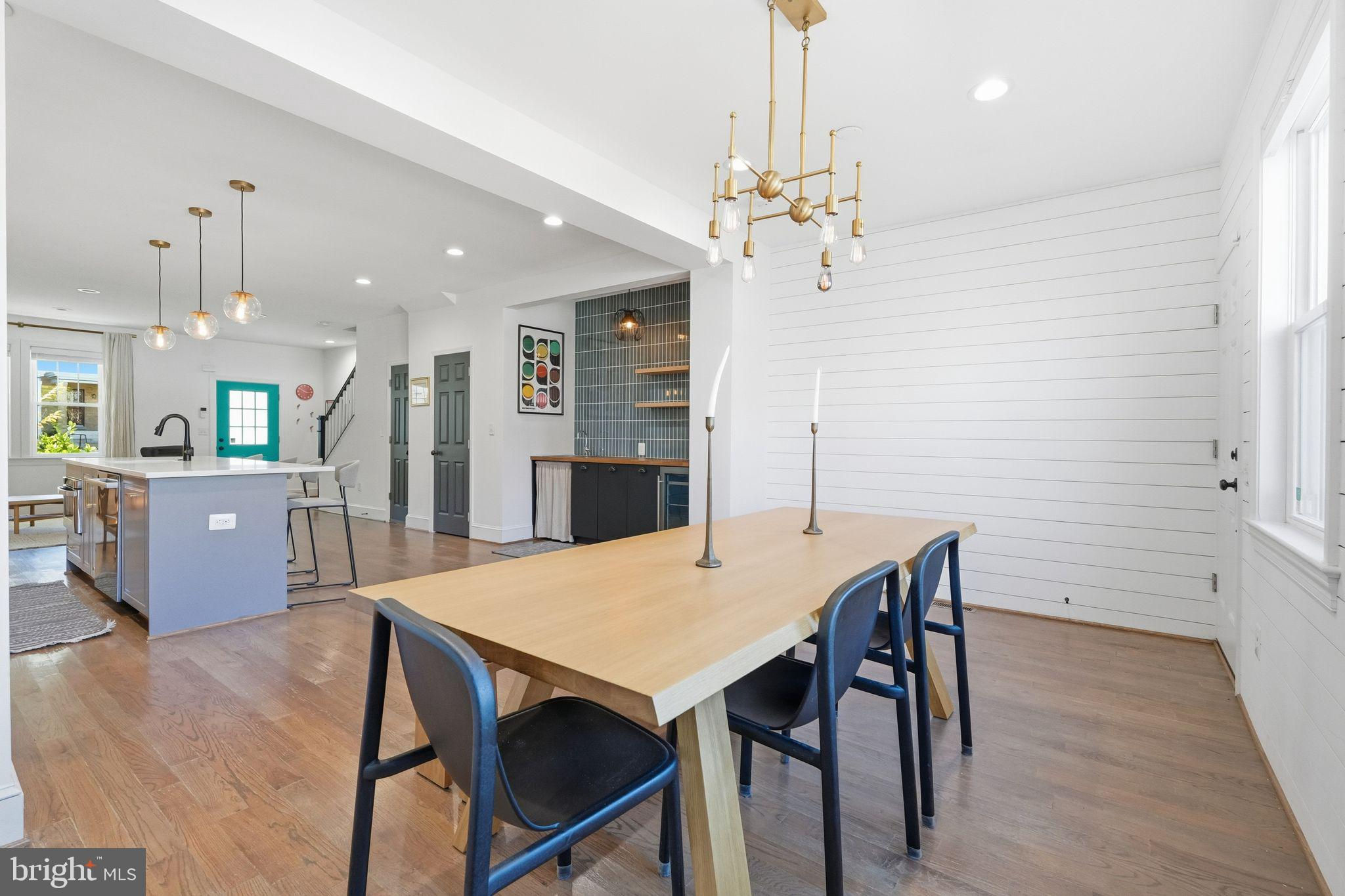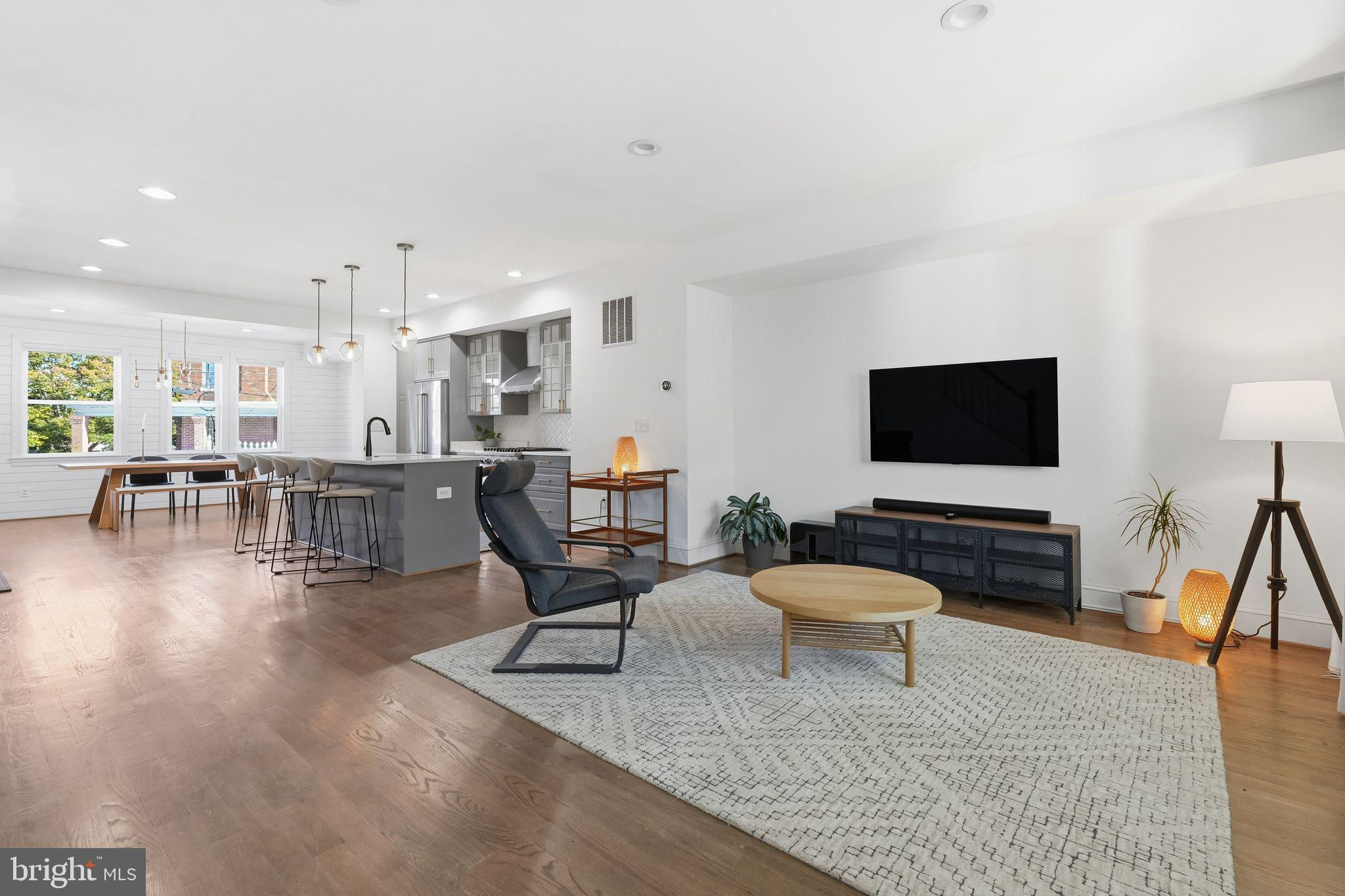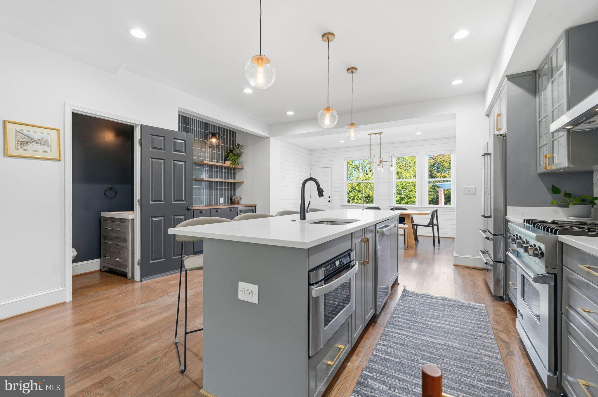 Don't miss the interactive 3D tour (Click on the movie camera icon)! Dare to compare: Larger than many nearby homes! This sun-drenched porch-front home welcomes you with an elevated front yard and impressive interior width—nearly 19 feet wide and 41 feet of open living space. The main level offers a seamless flow, centered around a chef’s kitchen with Bertazzoni refrigerator, Viking range, oversized island with drawer microwave, and an additional wall of custom cabinetry featuring a wet bar and wine fridge. A powder room and rear dining area overlooking the private patio complete this level. Upstairs, the primary suite boasts a vaulted ceiling with exposed beam, dual closets, and a sleek en-suite bath with walk-in shower. Two additional bedrooms—one with a wall of windows and the other with a skylight—plus a second skylit bath and laundry/storage space offer both comfort and convenience. The fully finished lower level expands the living options with a second kitchen, butcher block island, office nook, and a wide-open family room (plenty of space to add a 4th or even a 5th bedroom) that opens to a covered patio. With a garage plus two tandem parking spaces and direct access from Kansas Ave., parking and practicality are at your doorstep. A rare blend of modern design, generous proportions, and versatile living space—this home truly has it all.