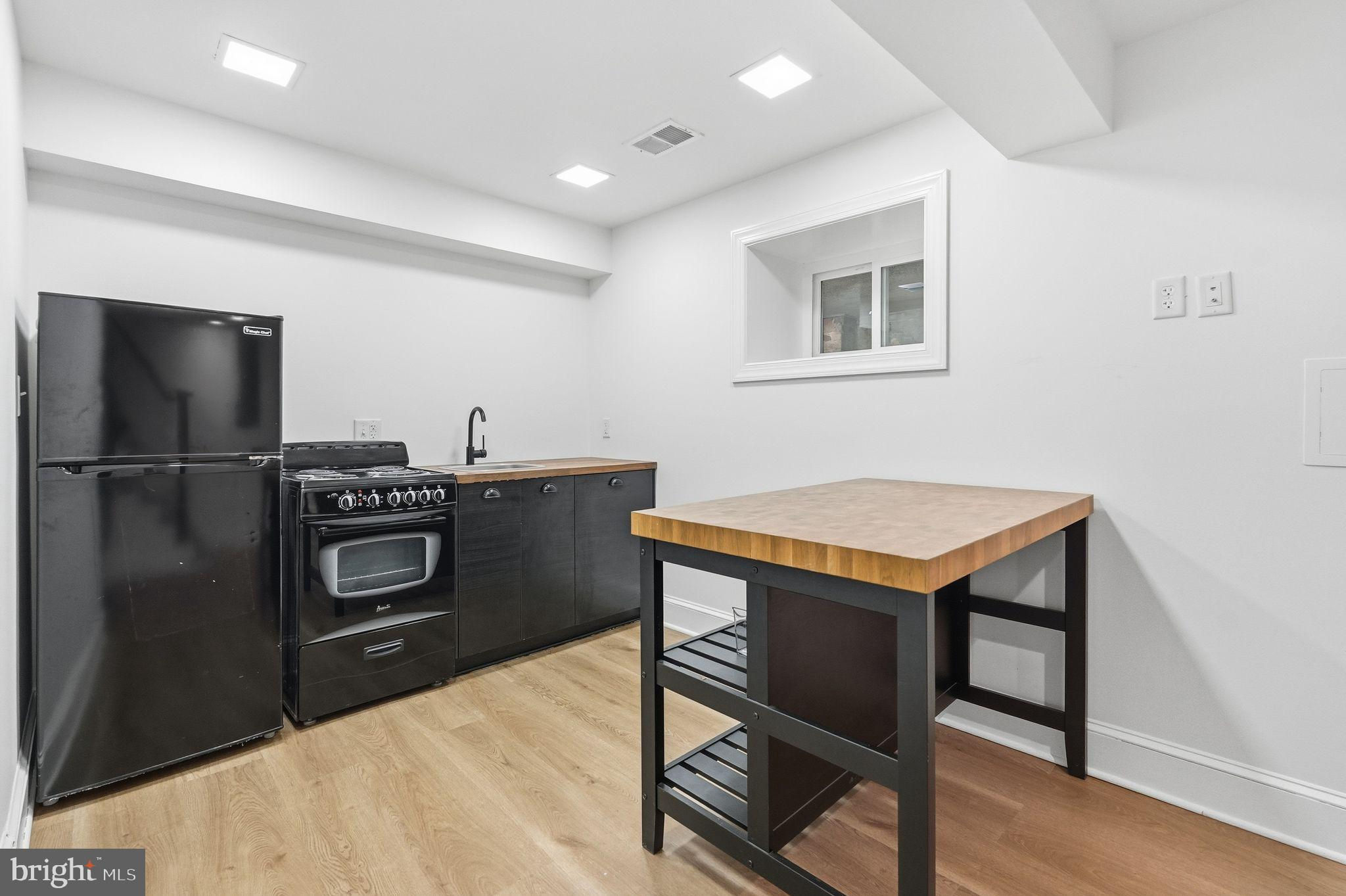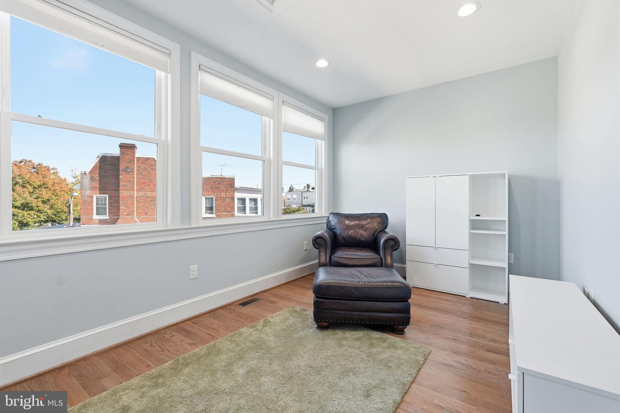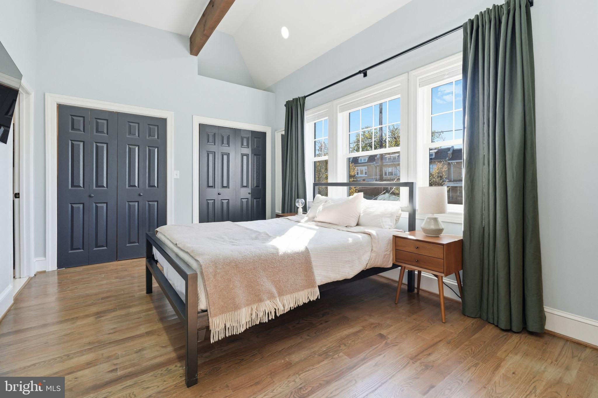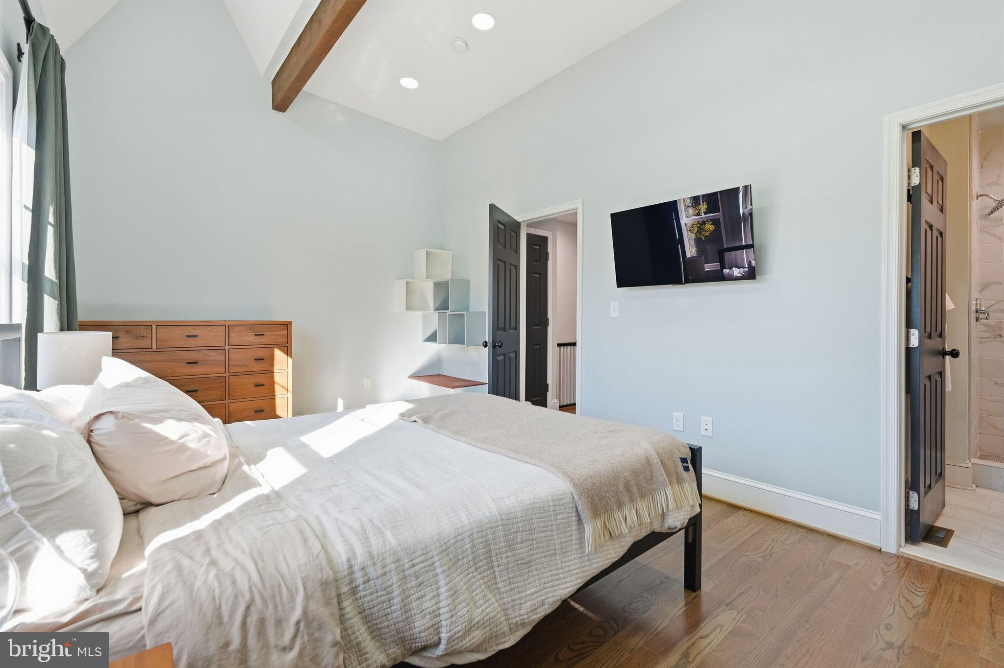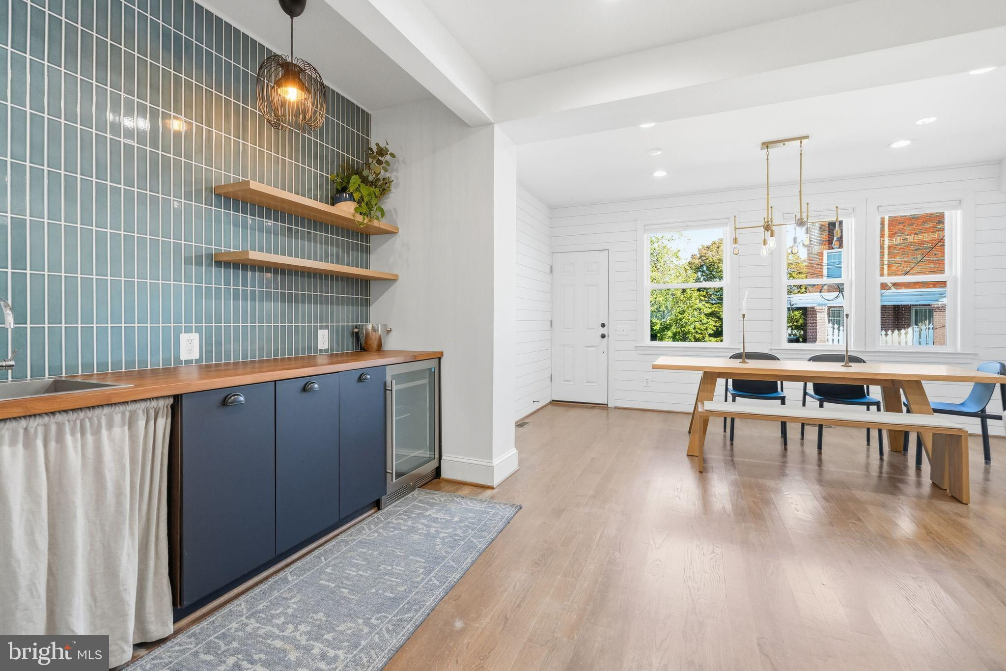 Don't miss the interactive 3D tour (Click on the movie camera icon)! Dare to compare: Larger than many nearby homes! This sun-drenched porch-front home welcomes you with an elevated front yard and impressive interior width—nearly 19 feet wide and 41 feet of open living space. The main level offers a seamless flow, centered around a chef’s kitchen with Bertazzoni refrigerator, Viking range, oversized island with drawer microwave, and an additional wall of custom cabinetry featuring a wet bar and wine fridge. A powder room and rear dining area overlooking the private patio complete this level. Upstairs, the primary suite boasts a vaulted ceiling with exposed beam, dual closets, and a sleek en-suite bath with walk-in shower. Two additional bedrooms—one with a wall of windows and the other with a skylight—plus a second skylit bath and laundry/storage space offer both comfort and convenience. The fully finished lower level expands the living options with a second kitchen, butcher block island, office nook, and a wide-open family room (plenty of space to add a 4th or even a 5th bedroom) that opens to a covered patio. With a garage plus two tandem parking spaces and direct access from Kansas Ave., parking and practicality are at your doorstep. A rare blend of modern design, generous proportions, and versatile living space—this home truly has it all.